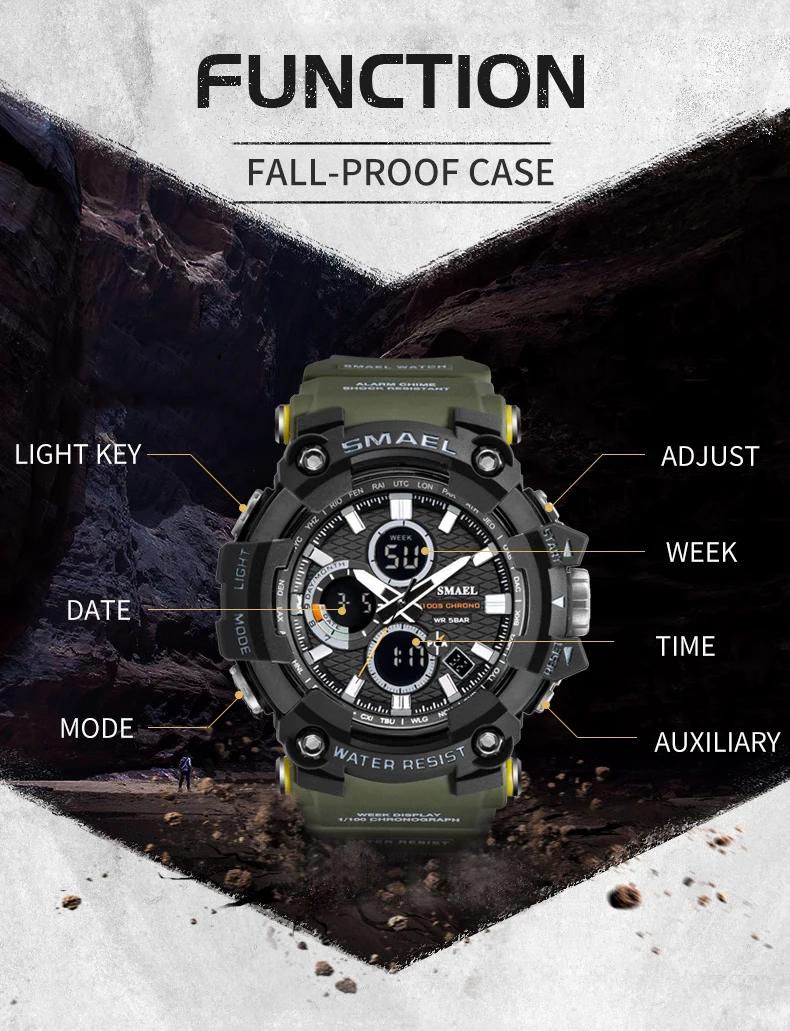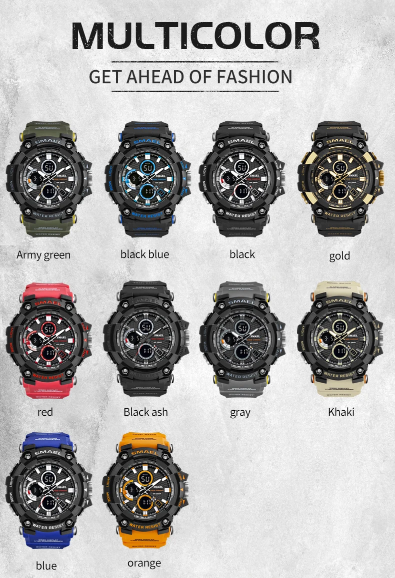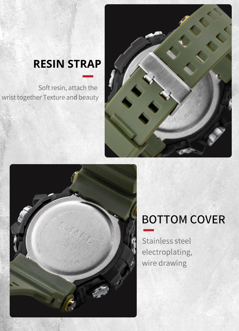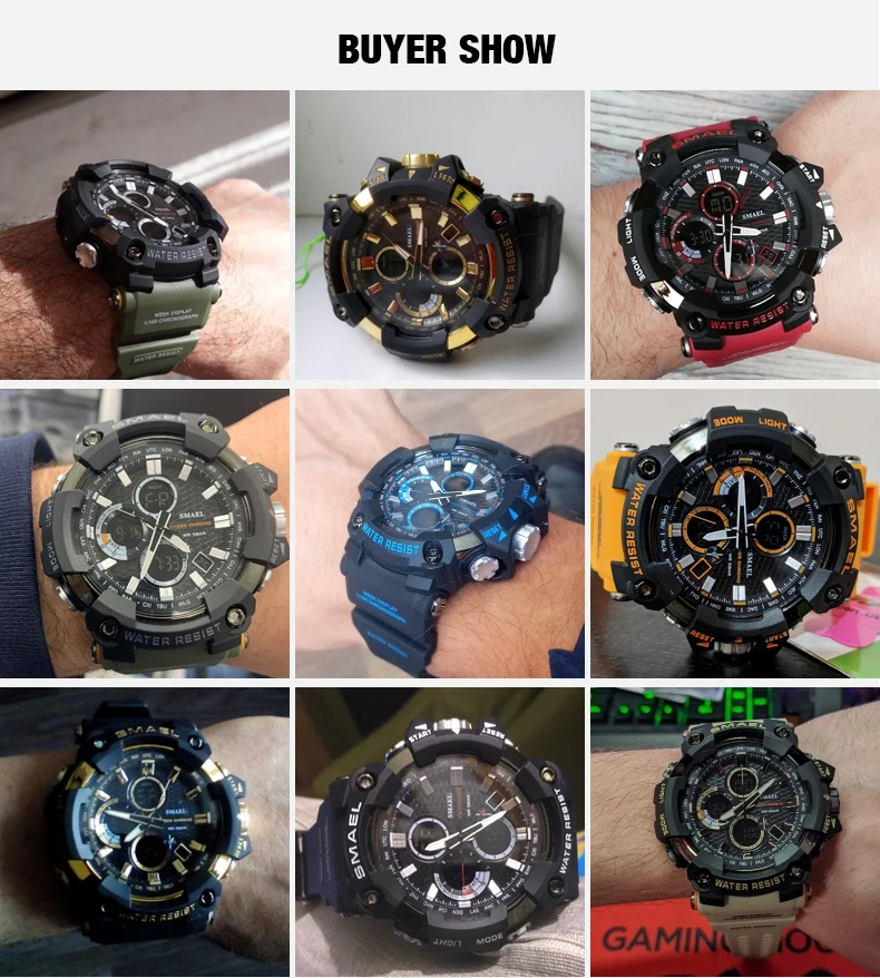 Просто очуменные часы! Это самая крутая посылка из Китая на данный момент, комплектация просто царская! Часы, карточка пластиковая с гарантией под скретч слоем, спортивный держатели на телефон, инструкция, упаковано все добротно, все работает! Функционал как у суперкомпьютера! Тут вам и аналоговые и цифровые часы, таймеры разные, отчёт недель, кругов, ещё чего то, будильник, подсветка! Надо неделю разбираться в полном функционале, не хуже командирских часов. Защита от воды до 5 бар, моя девушка раньше торговля часами, сказала что это только от дождя, продавать см ними нельзя, но в принципе я этого делать и не собирался, а то что влагозащита есть это только плюс. Часы кстати противоударные, но этот момент я не проверял. Кратко резюмируя- я в мм полном восторге! Смотря сильно, внушительно, сделаны добротно, пластиковые части сменяются блестящим лакированными металлом, все индикаторы просматриваются отлично и кстати да! Тон ремешка идеально подошёл к моей любимой майке. Дошло все быстро!