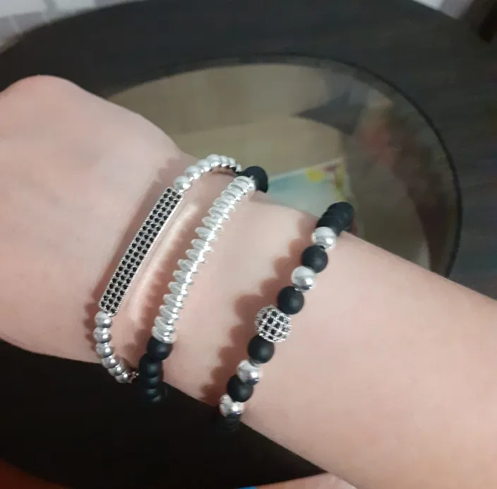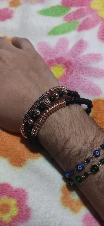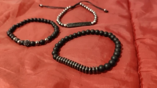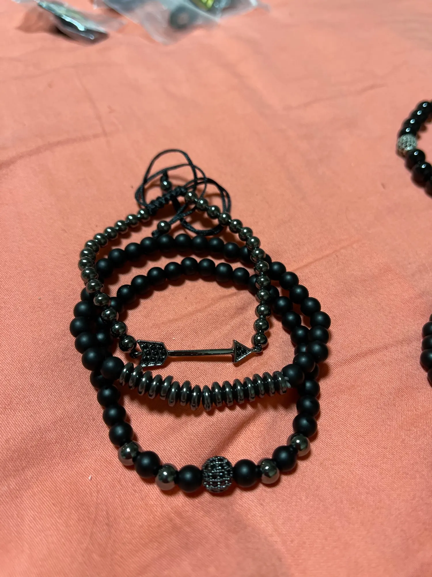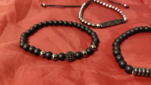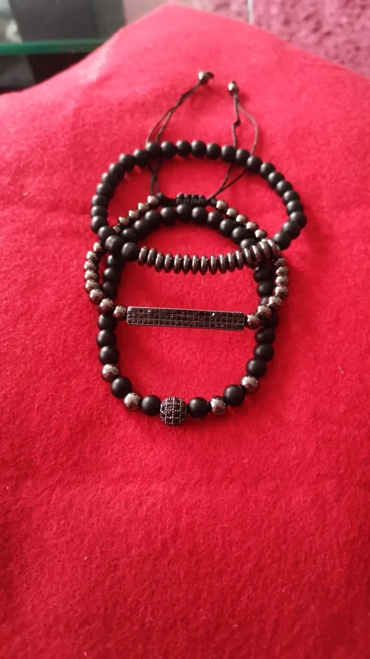 Precious both, I arrive in good condition, only one of the three bracelets is quite wide which slips a bit of the other two out of it is a good product