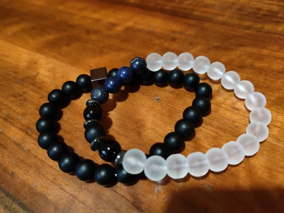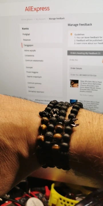 Запаковано нормально. Прийшов через три тижні. Львів. Досить непоганий парний браслет. Вживу виглядає "дешевше" ніж на фото. Чесно. Ну але фільтри - наше все... Розмір малуватий. Кольоровий сидить норм, чорний - підтискає чуть, але не критично. Вцілому норм.