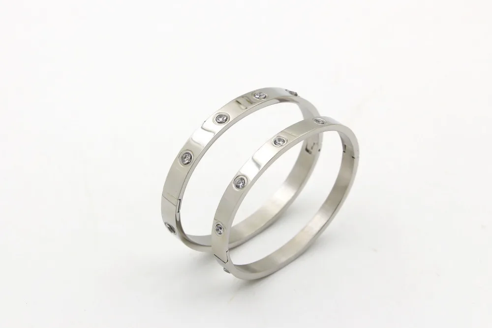 Bracelet recommend to buy. It is executed qualitatively, the rhinestones are planted tightly, the lock is good. The shape is slightly oval, which is convenient to wear. And most importantly, does not cause irritation and allergies, so the alloy of good quality. And I often have redness and itching on jewelry. On the wrist 15,5 came up perfectly! I will order more thin and other color