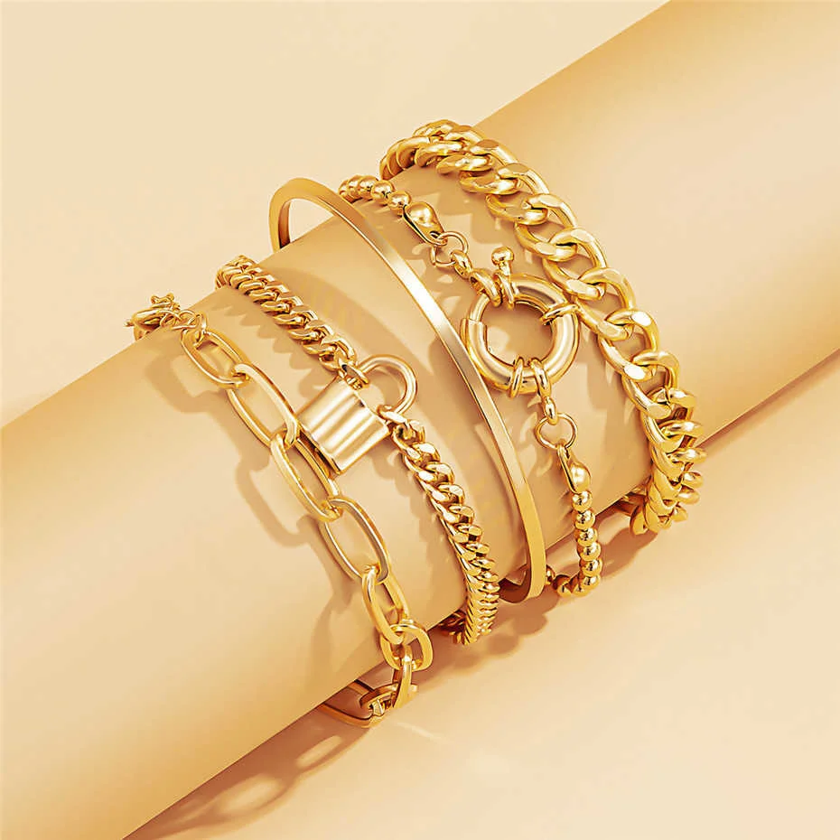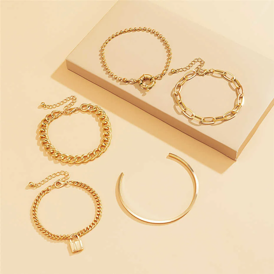Very cool set in which comes immediately 5 bracelets on hand! All bracelets are different: Chains of different weaving and thickness! I chose gold in color, but the store has many different combinations of bracelets in different metal color! On the bracelets there are chains-adapters, so they will fit any size of the hand!