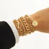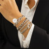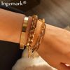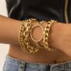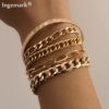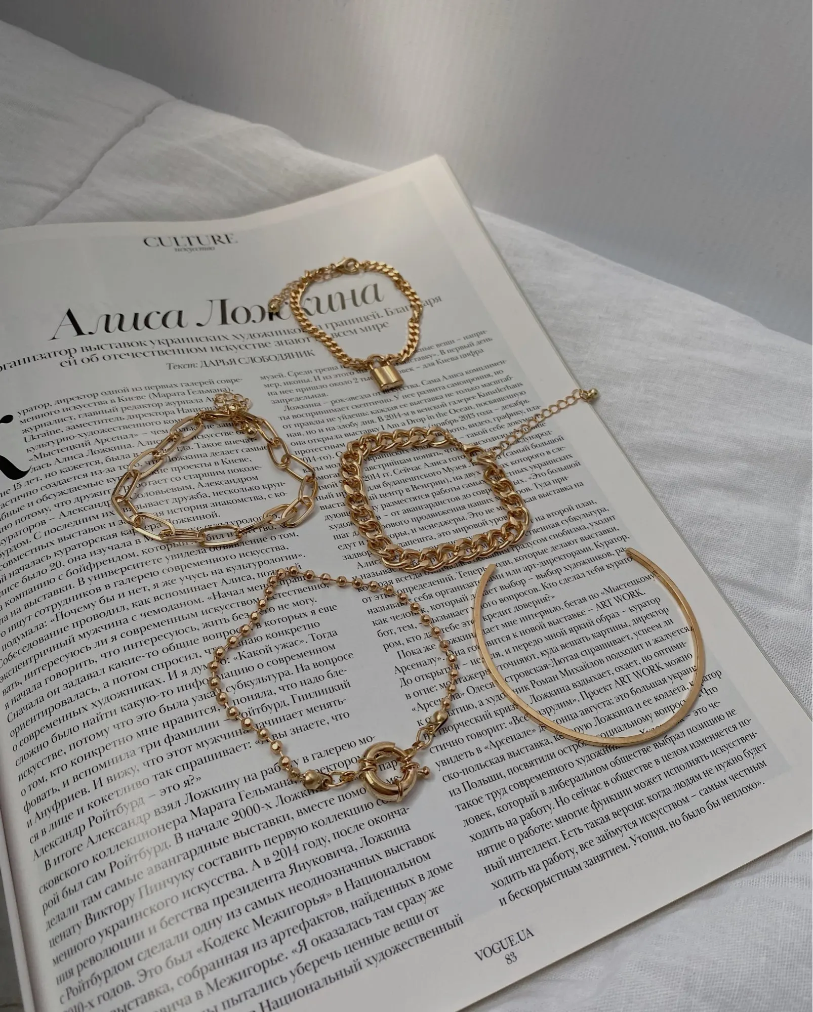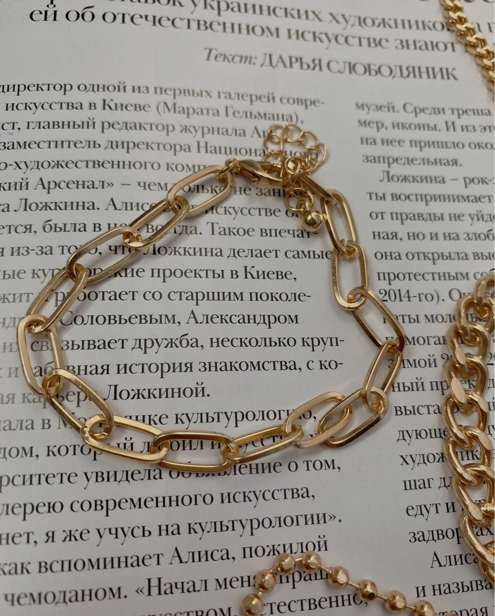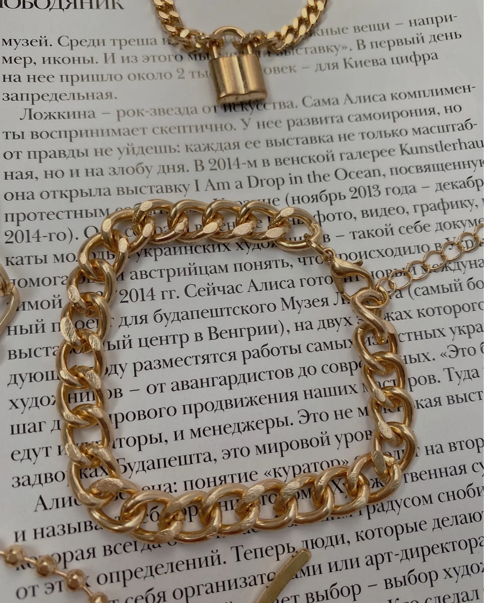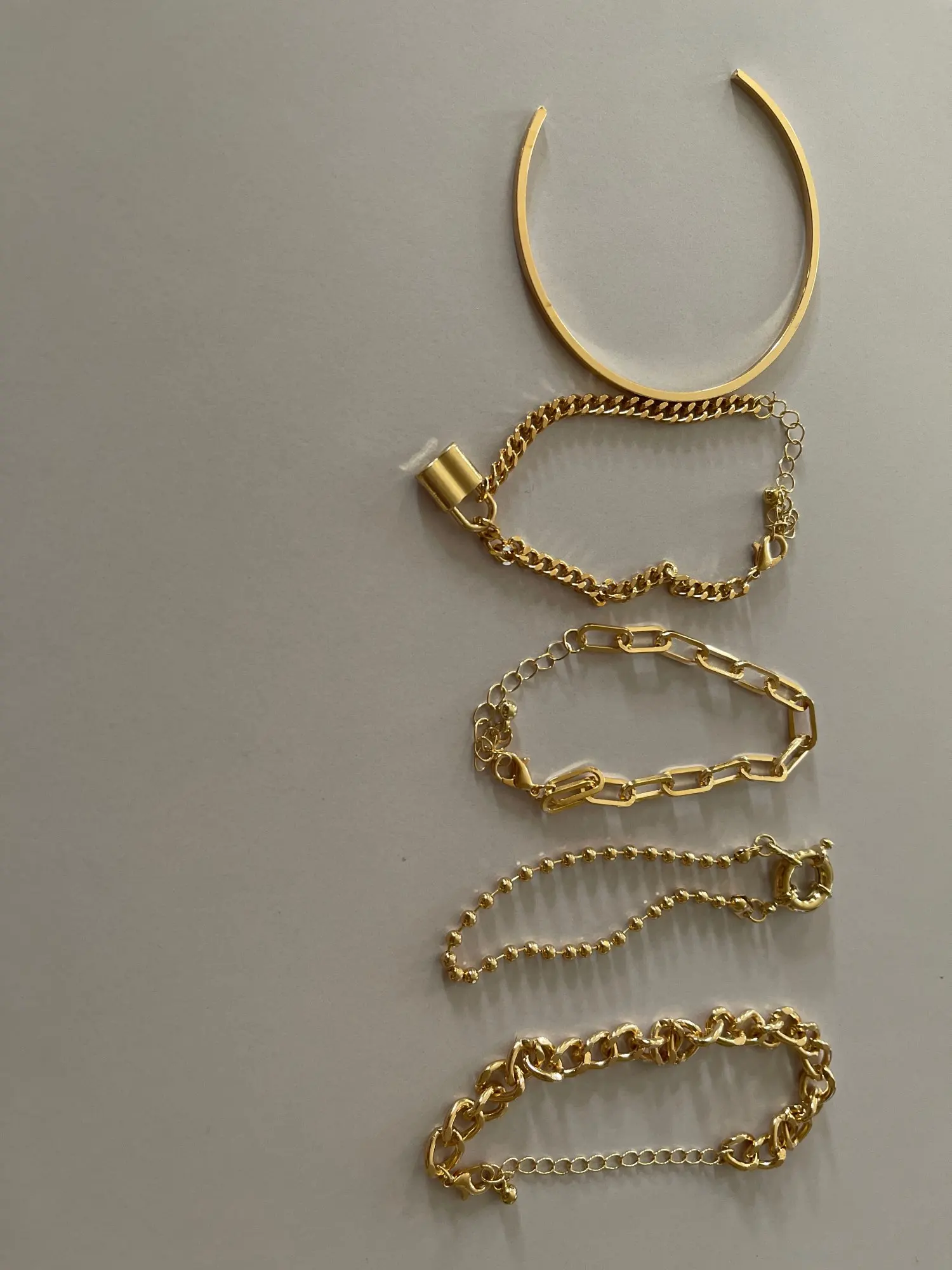 Very cool set in which comes immediately 5 bracelets on hand! All bracelets are different: Chains of different weaving and thickness! I chose gold in color, but the store has many different combinations of bracelets in different metal color! On the bracelets there are chains-adapters, so they will fit any size of the hand!