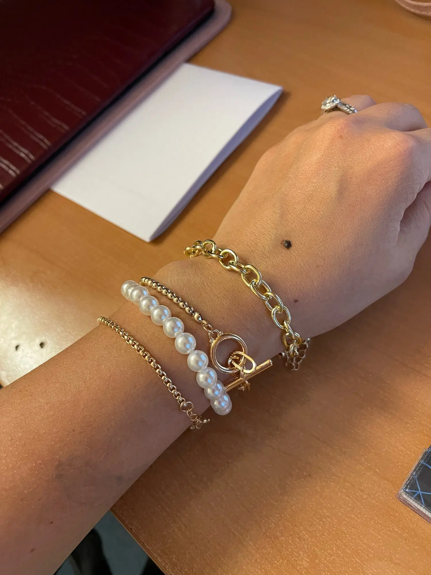 Beautiful multi-layer bracelet. There is an adjustment in length. Looks stylish