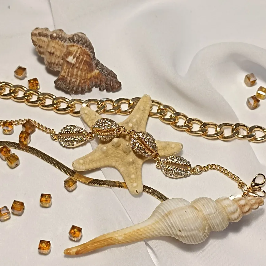 из комплекта только один браслет мне понравился очень.(цепь) остальные 2 тоньше и легче. поэтому сниму одну звёздочку.