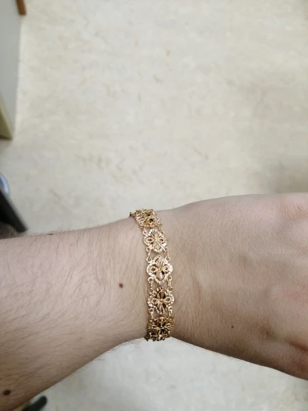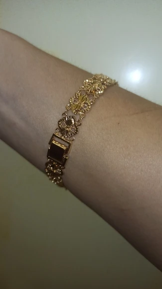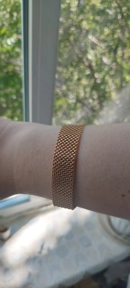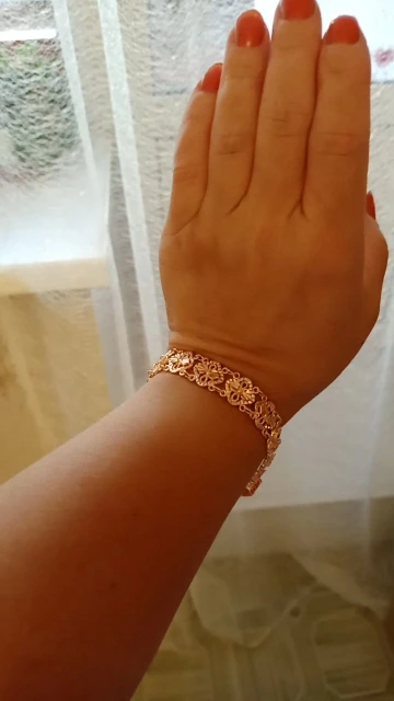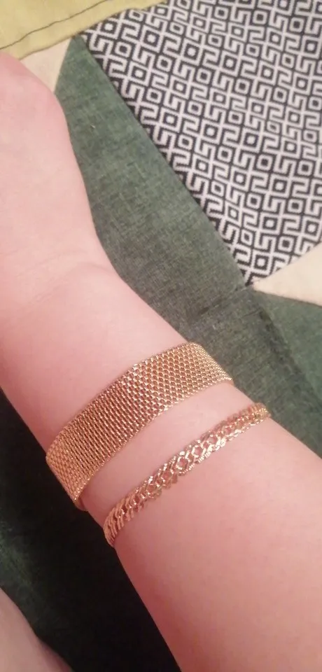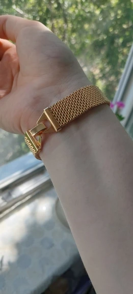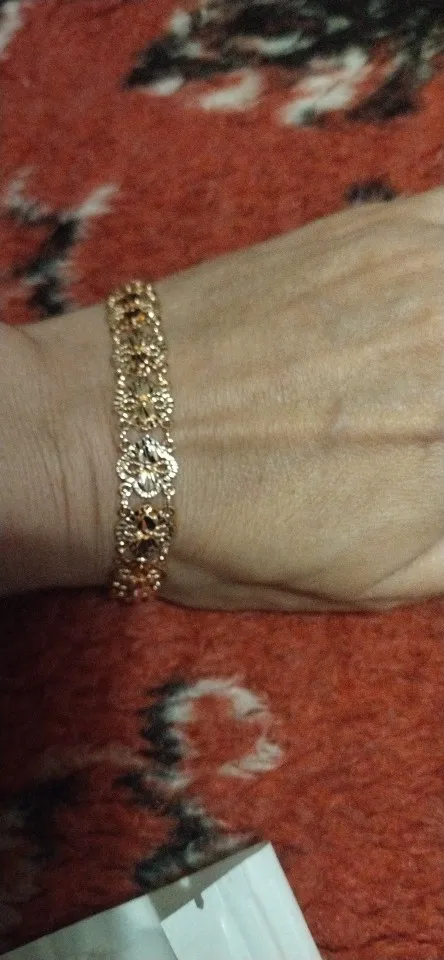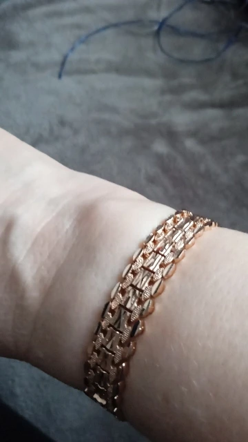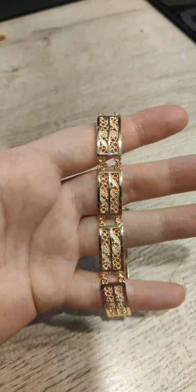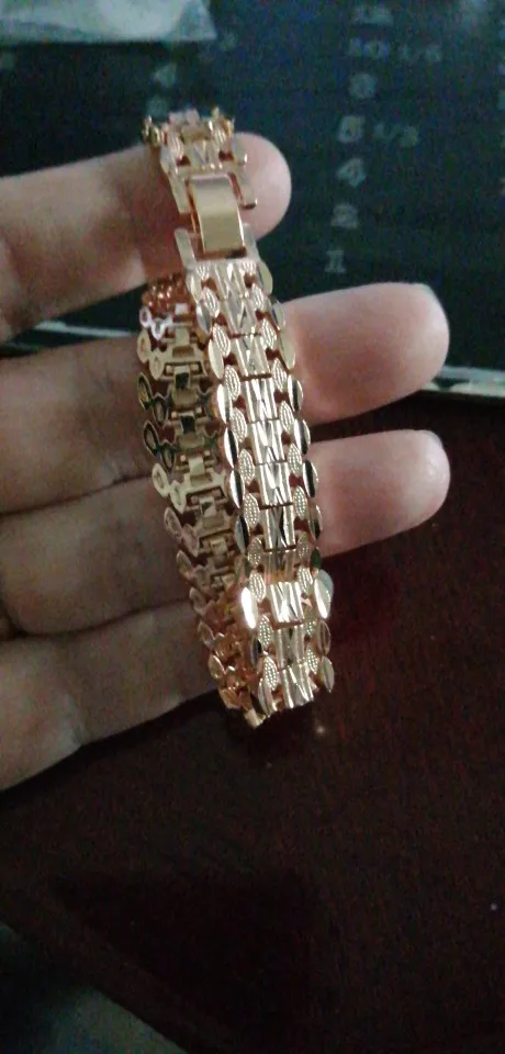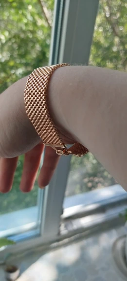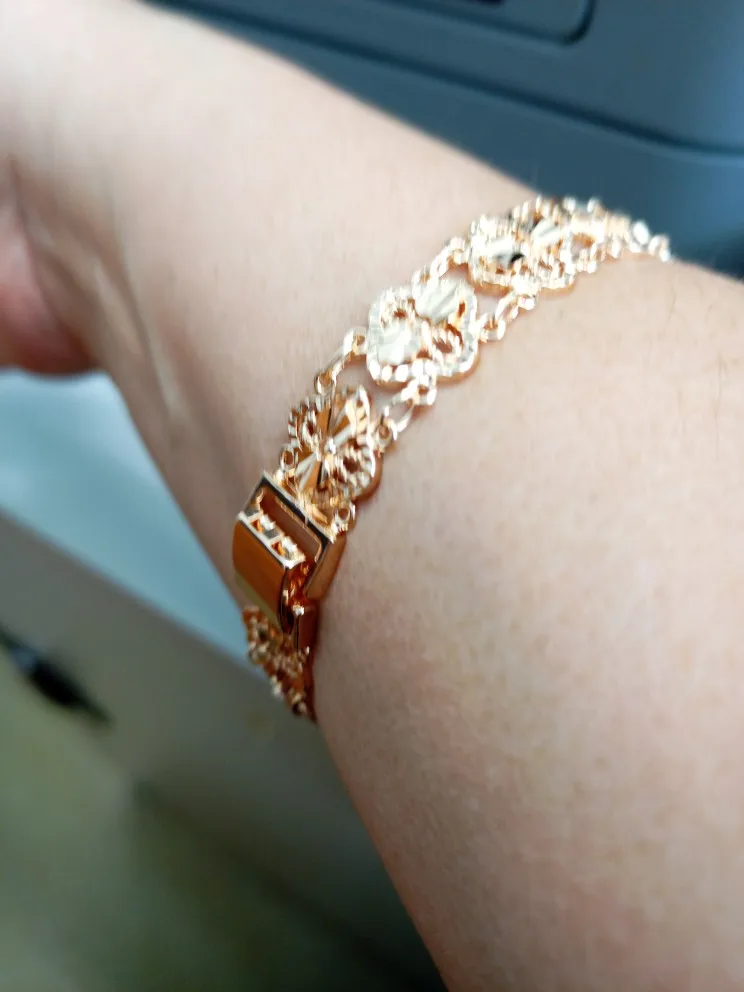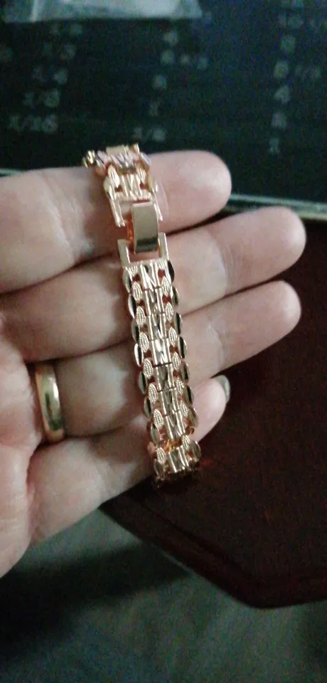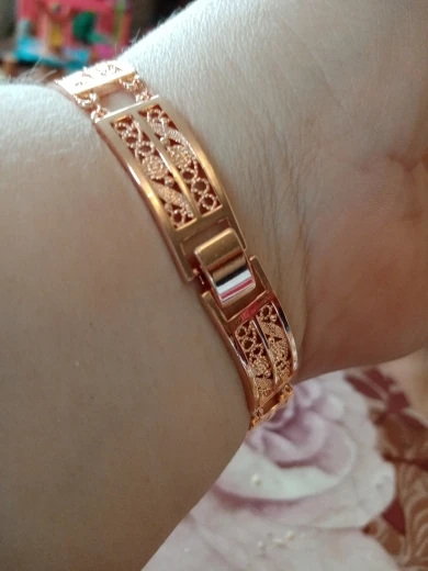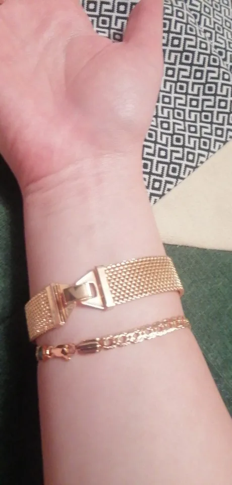 Very beautiful I wear 18 size bracelet, I'm a little big Wat. From gold not to distinguish, I hope for a long time the appearance will remain. But there is a drop of degth: It's very difficult to unzip the bracelet, it's scary to tear, let's see, maybe something will come up, a very hard buckle buckle But very beautiful