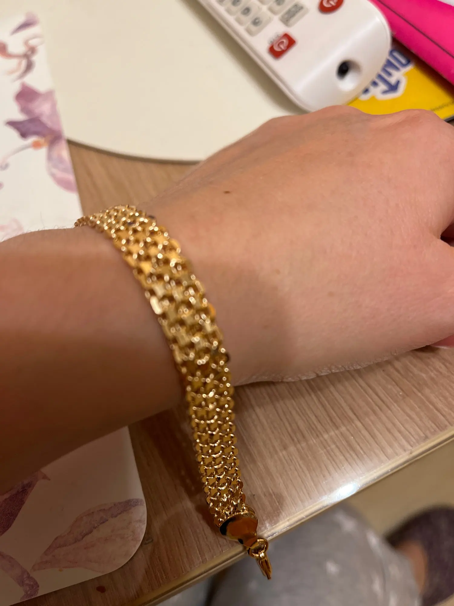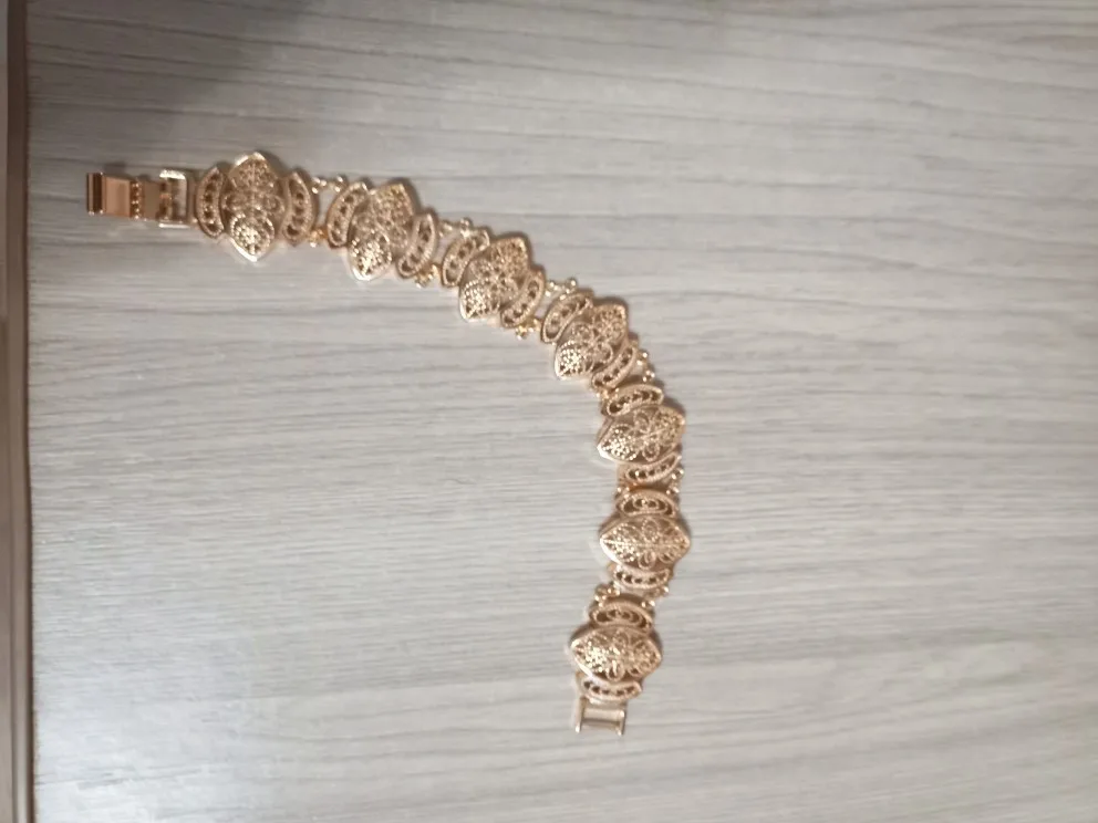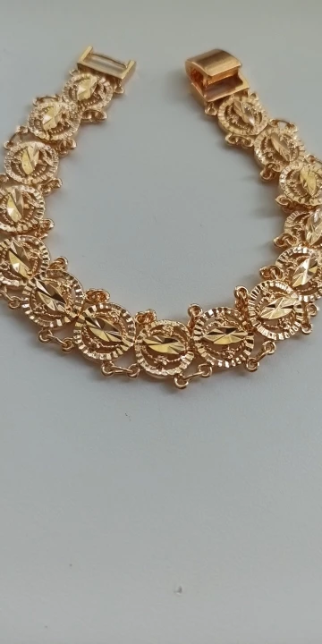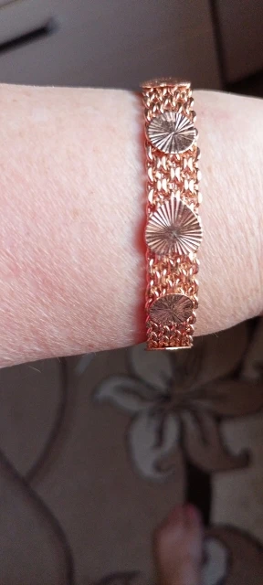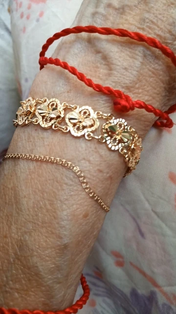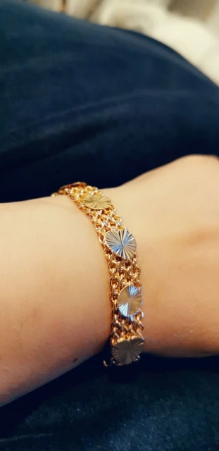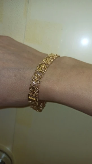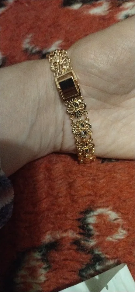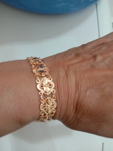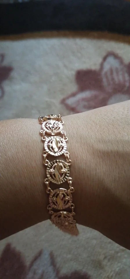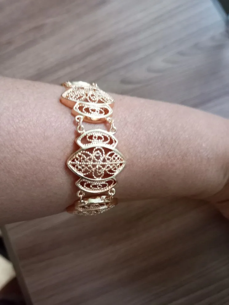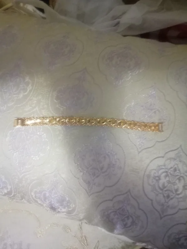 Very beautiful I wear 18 size bracelet, I'm a little big Wat. From gold not to distinguish, I hope for a long time the appearance will remain. But there is a drop of degth: It's very difficult to unzip the bracelet, it's scary to tear, let's see, maybe something will come up, a very hard buckle buckle But very beautiful