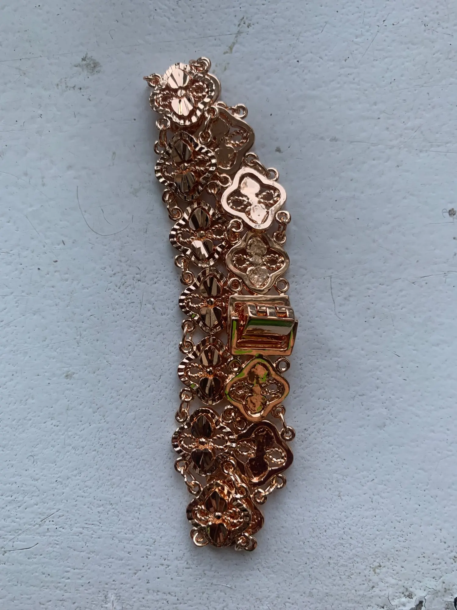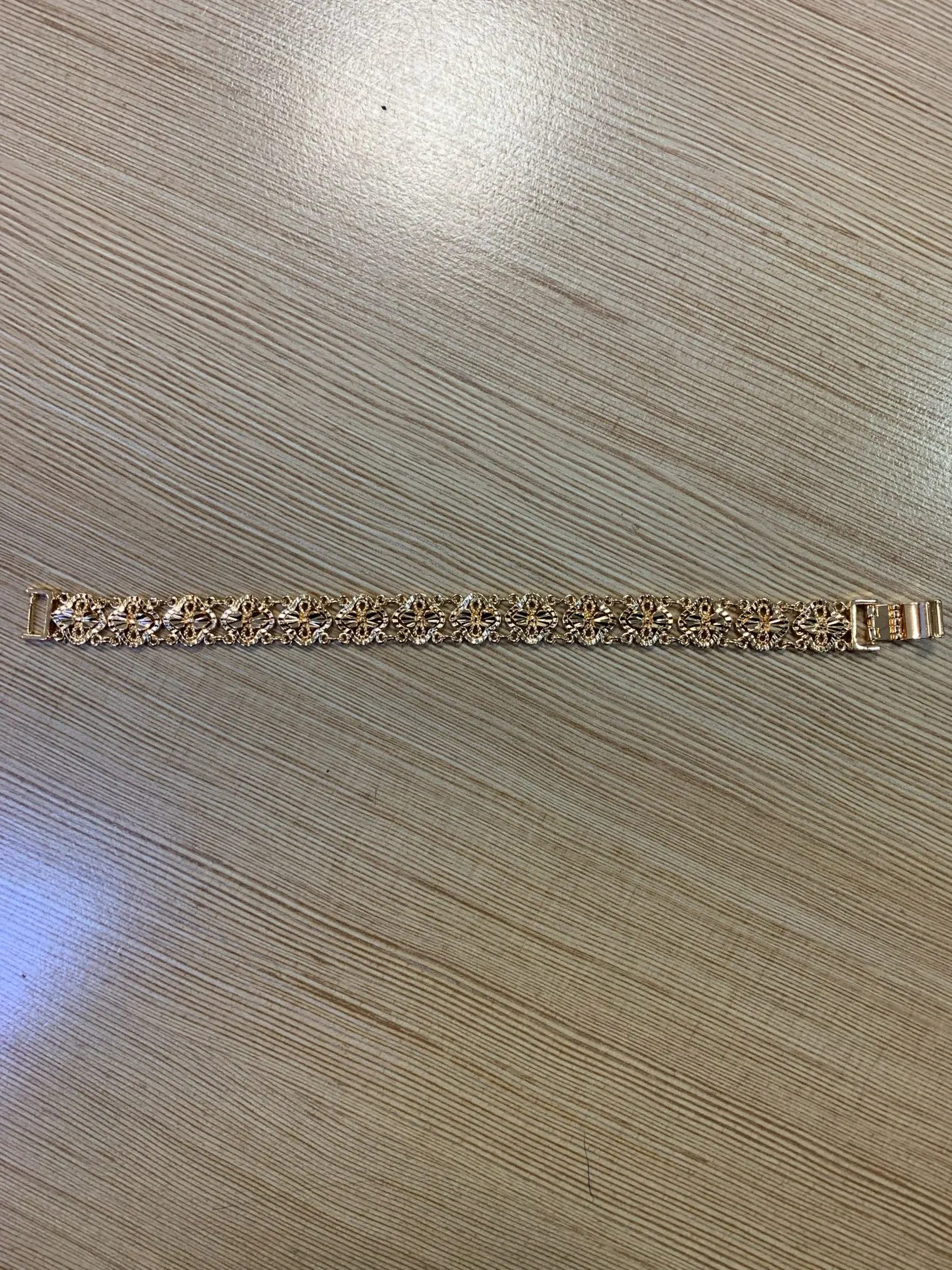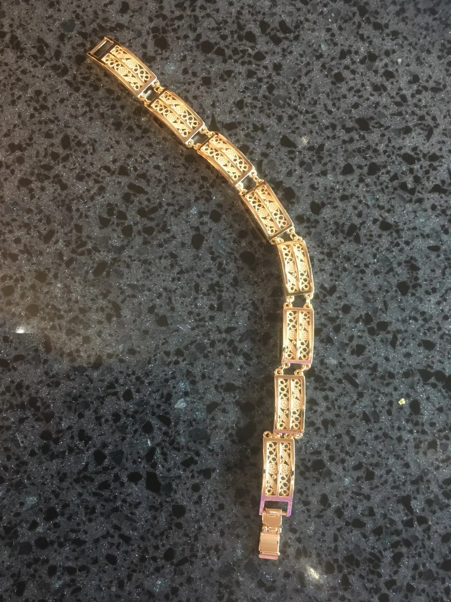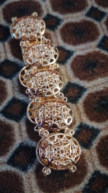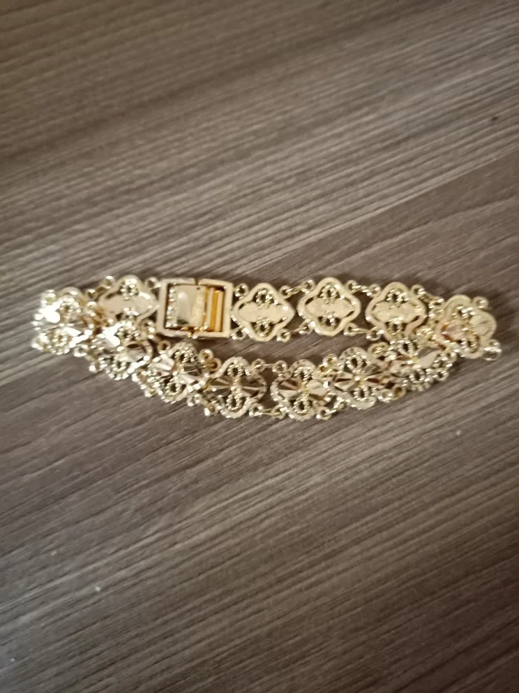 Beautiful bracelet, looks like real gold, will buy another one with different design.