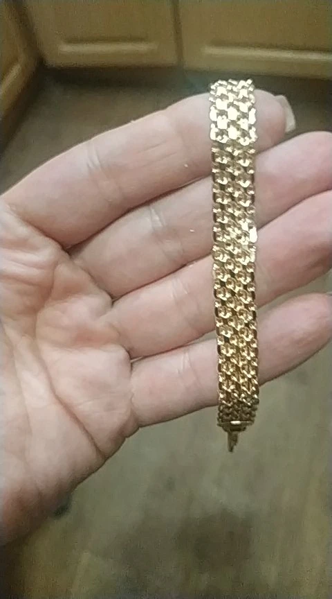 Amazing bracelet, gold color. But full hand. I will try to clean, one link