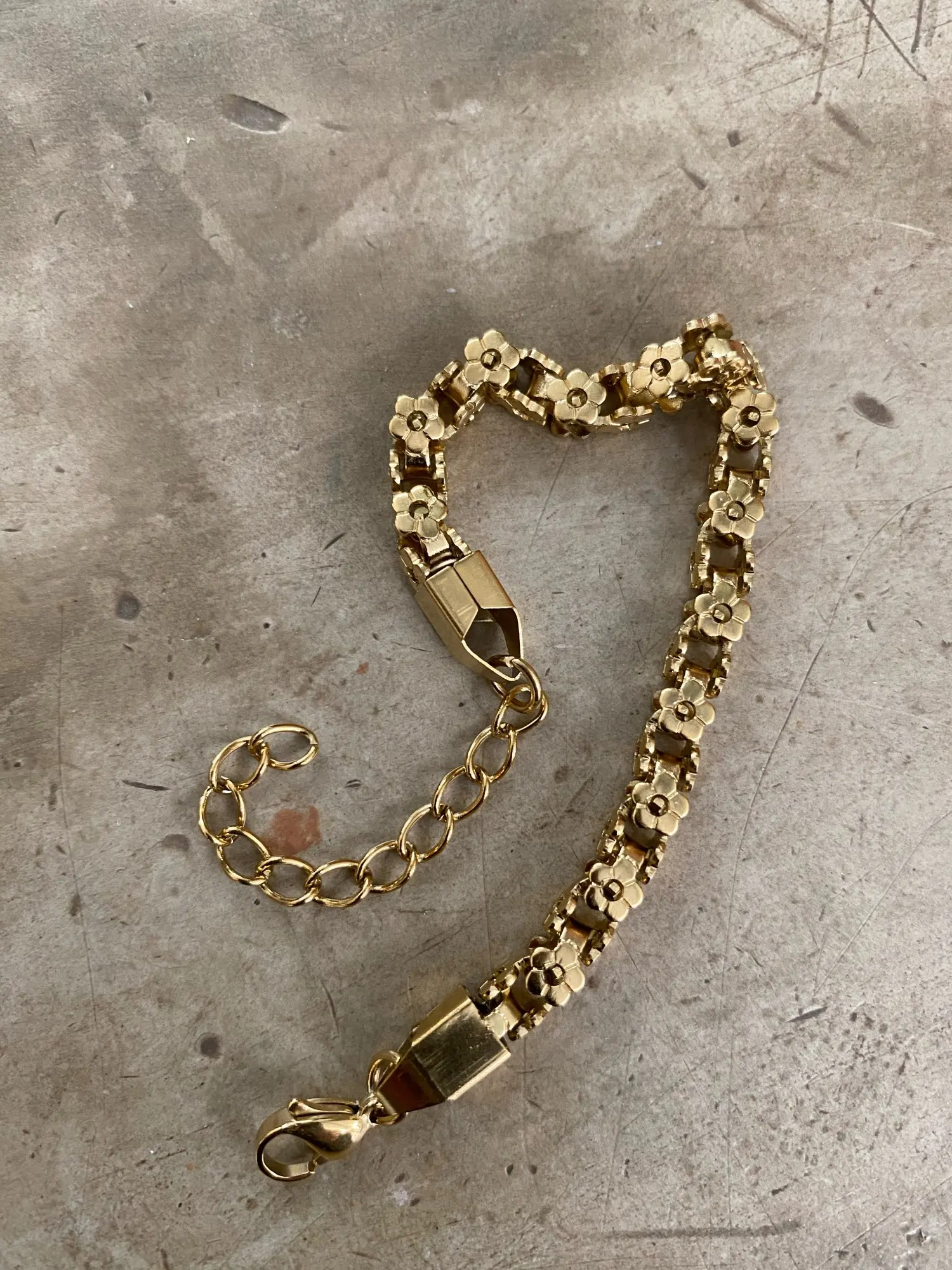 Very cute floral bracelet. a little big for my wrist. nice gold color.