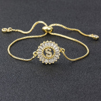 A-Z Initial Letter Copper Pave Setting Cubic Zircon Charm Bracelet
