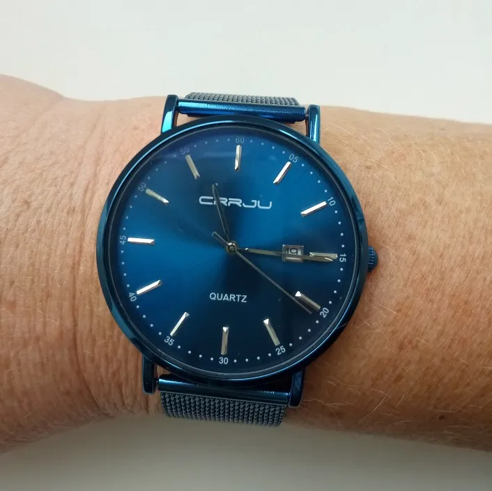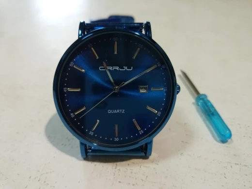 The sphere is larger than I expected, and the strap is also quite long. It comes with a small screwdriver but it's no use adjusting the strap, so I 've opened the clasp with my hand, and then I 've pressed it with some pliers. The time wheel has 3 positions, but the calendar one doesn't work, so I 've put the right day spinning the hands. The watch has arrived in 11 days in Madrid, Spain, well protected by a foam cylinder in an envelope. If you find my opinion useful, give me a "yes" and mark it, thank you very much.