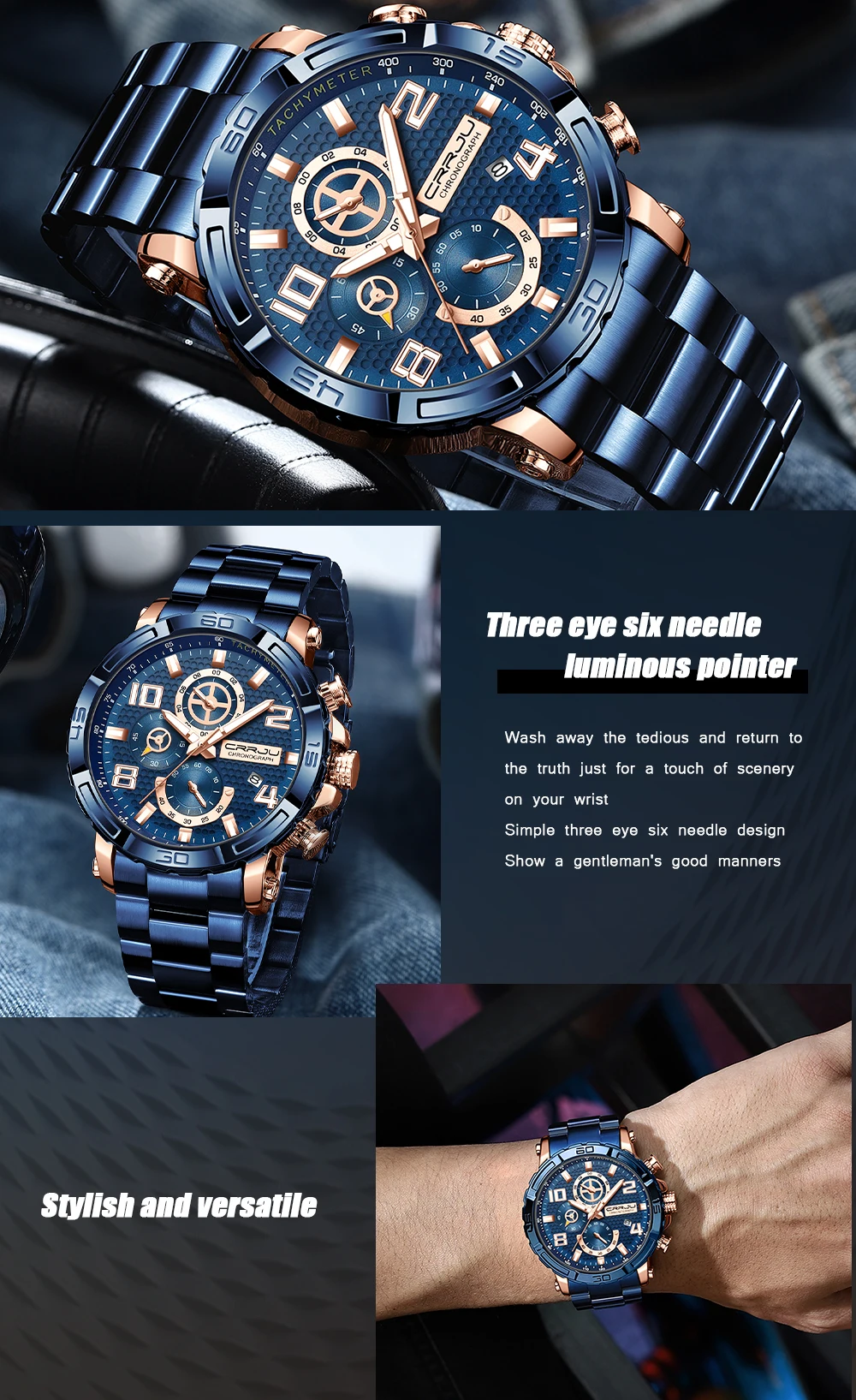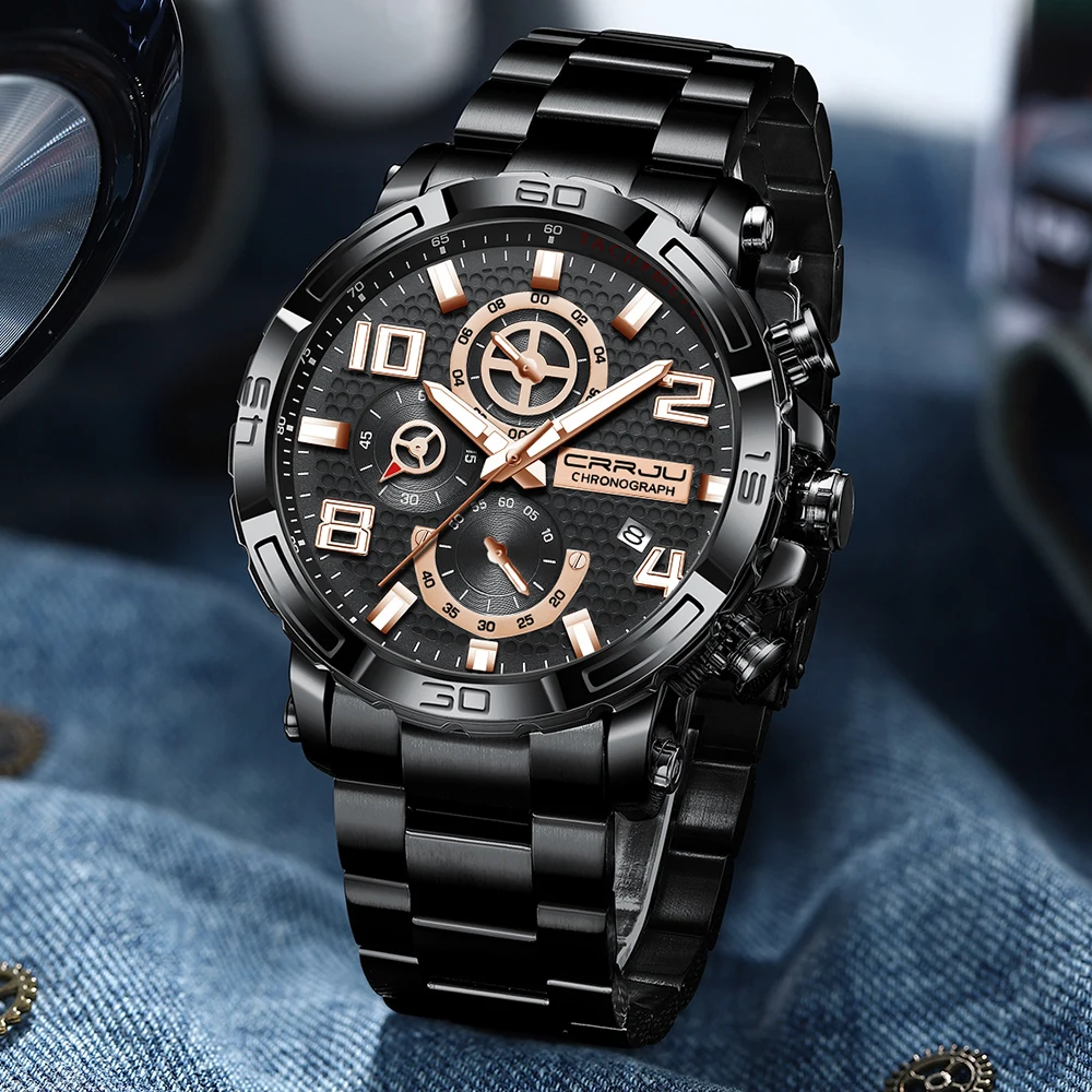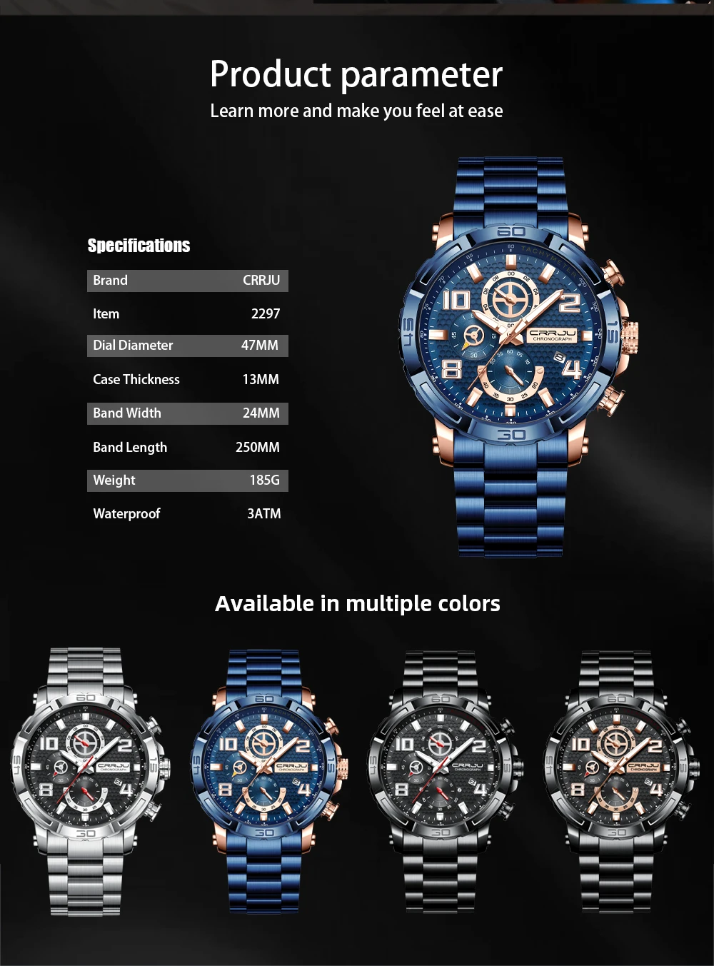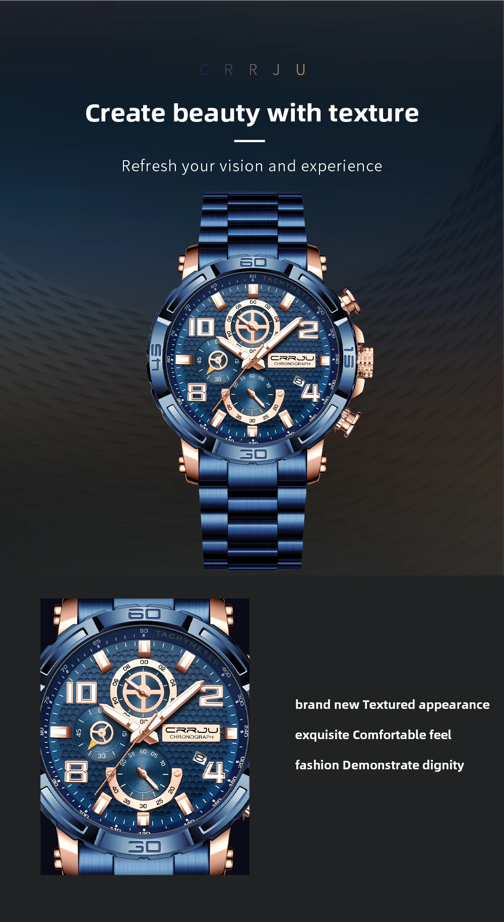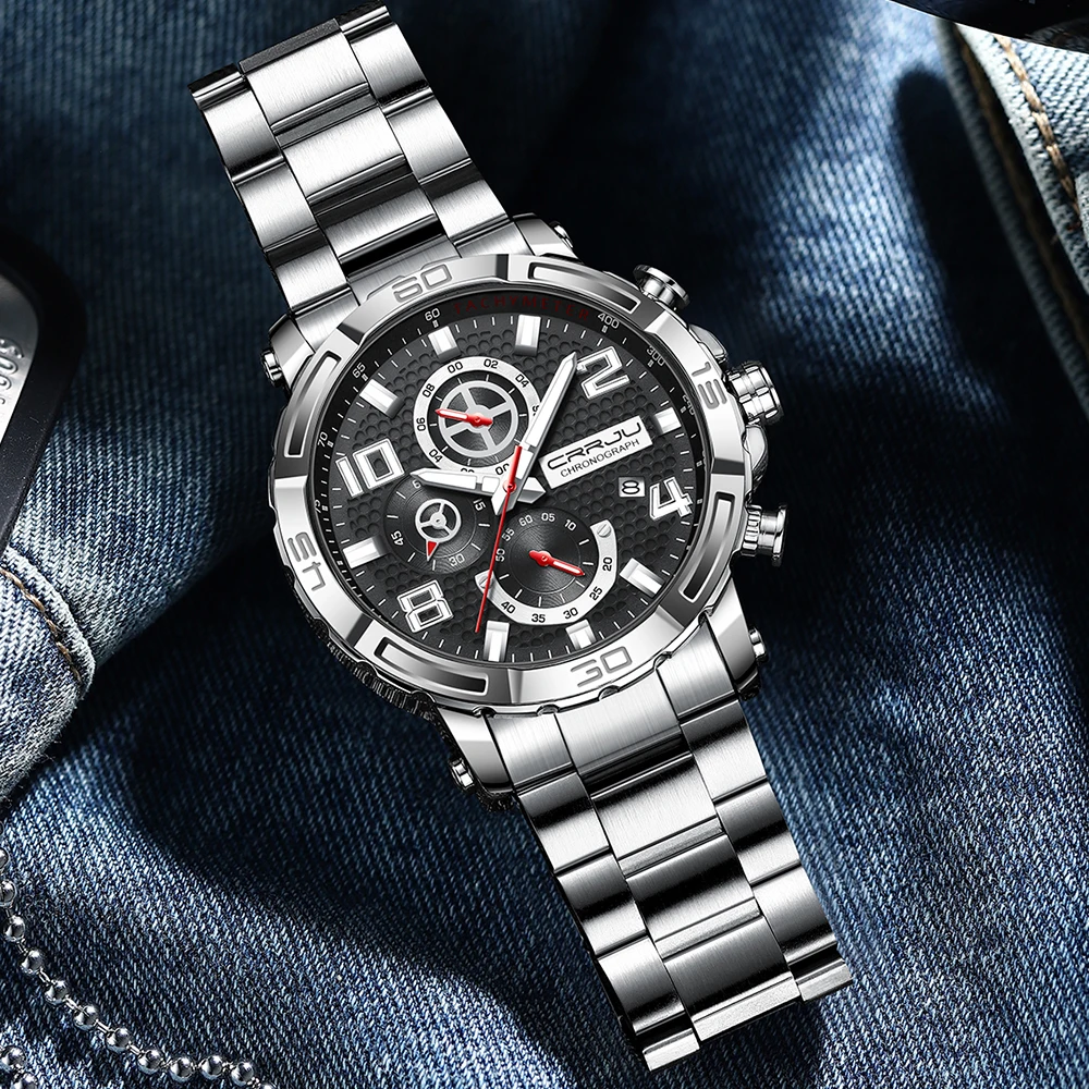 CRRJU Big Dial Stainless Steel Chronograph Watch