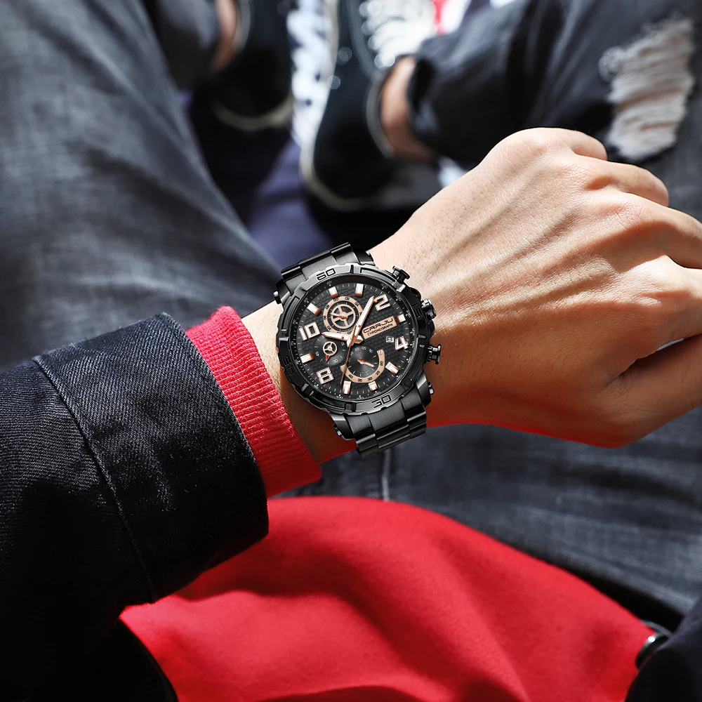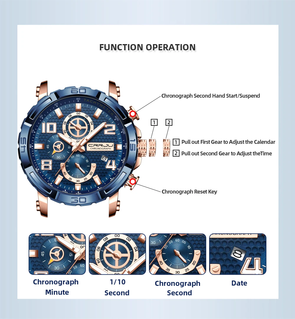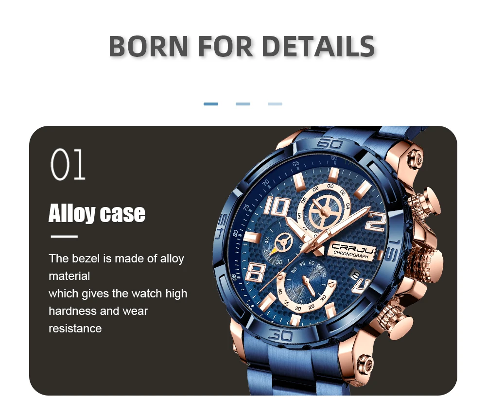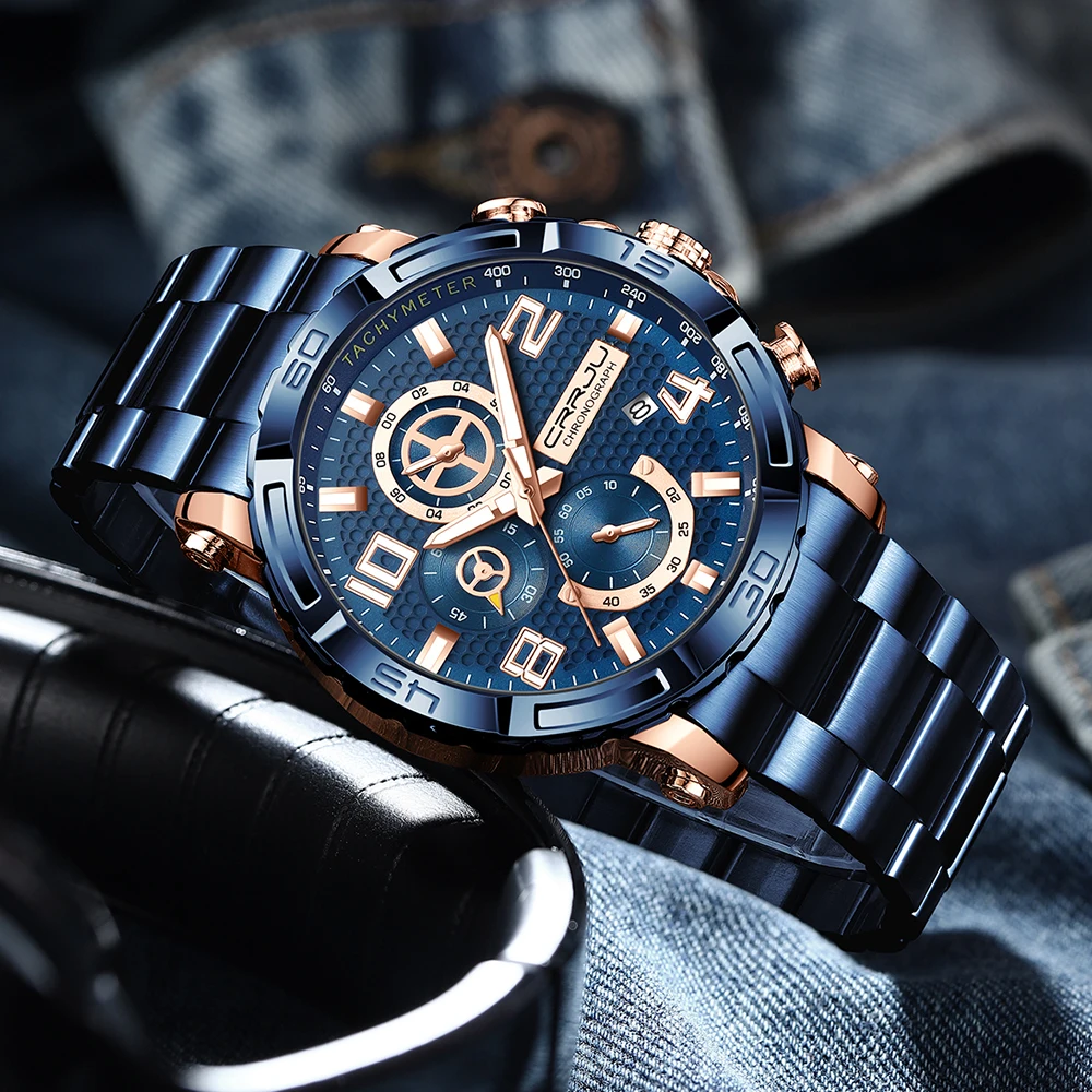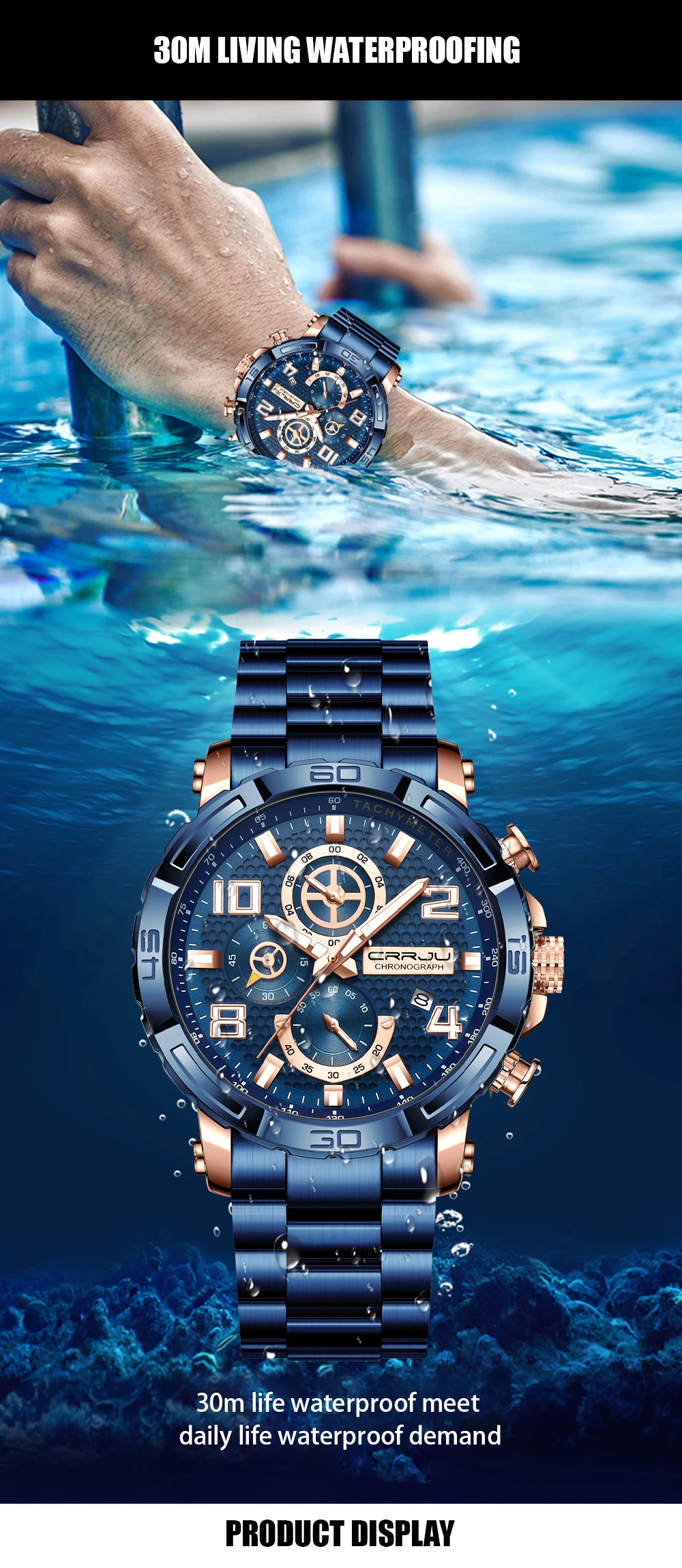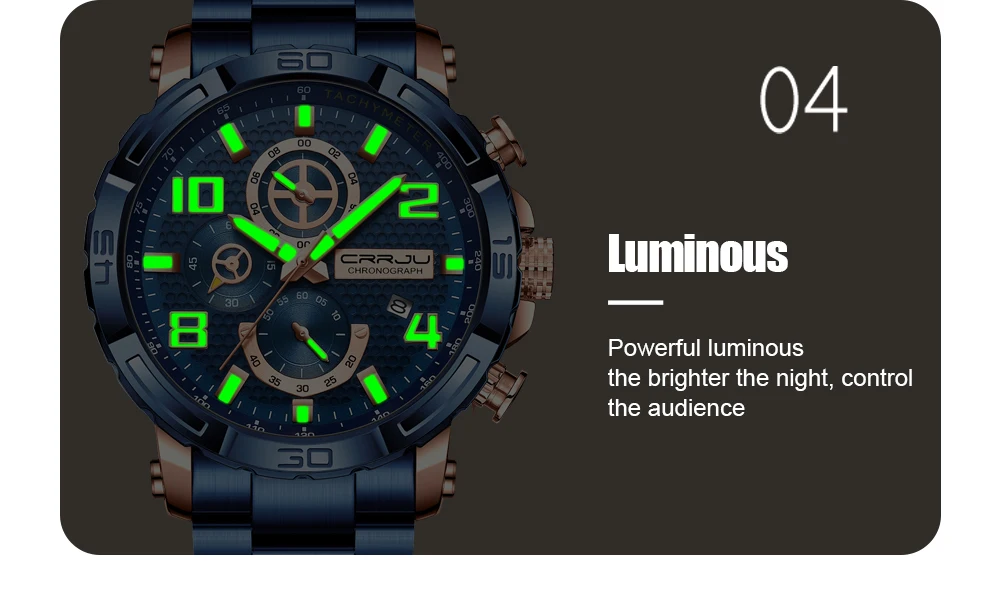 CRRJU Big Dial Stainless Steel Chronograph Watch