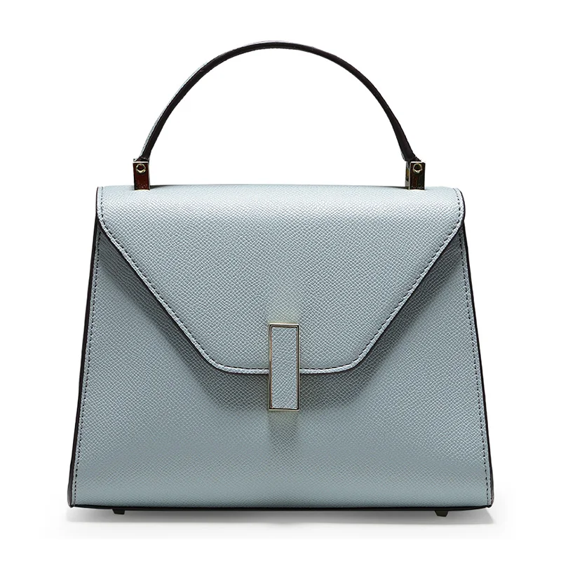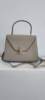 A good looking grey with light gold hardware, great volume and no exposed stitching, for the price alone, it's worth it and high quality.