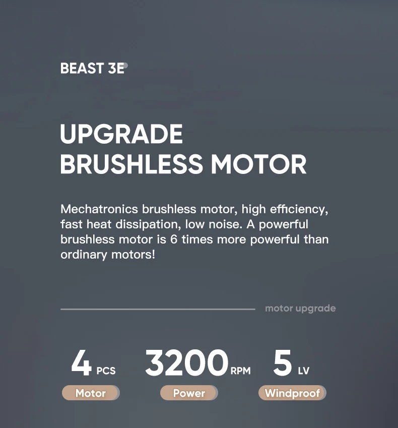 Four Brushless motor 3200 r Power output About Level 5 A strong wind