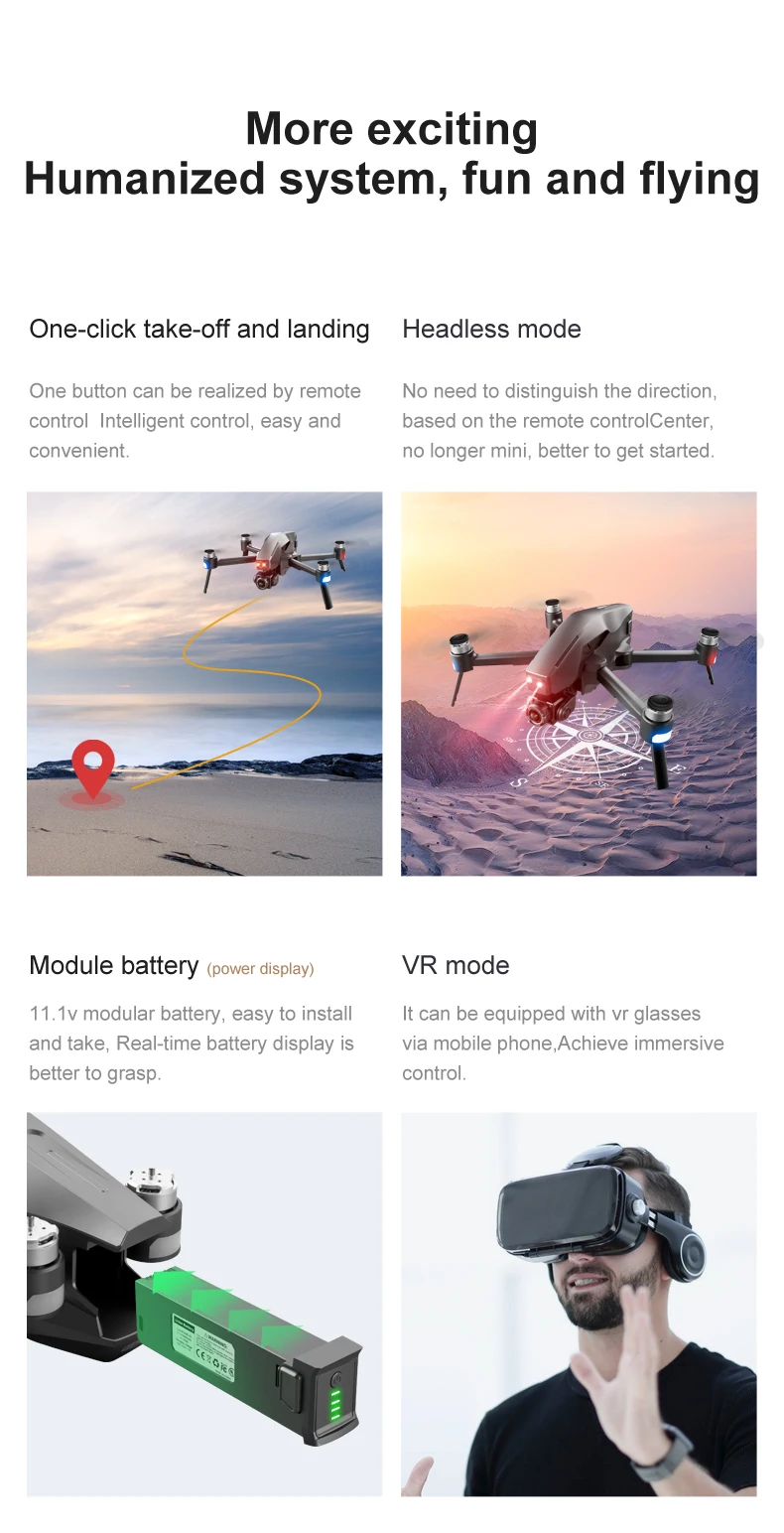 —One-click operation: You can command the aircraft to take off, land and even return from a distance with just a single click.