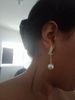 Very neat, gentle, on the side are not bulky. In the kit Additional silicone plugs, but they are not needed, and so holds firmly. The Pearl is white, without shade, bright. Judging by the photos from the buyers, yet each pair is slightly different from the other. To me came more flat, namely part with rhinestones-it is shorter and shorter and the site than in official photos. But for me it's good, so even better) thanks to the store)