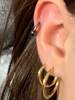 I purchased this with a smaller size to wear in my double lobe piercing. I was very excited to wear the two upon healing my piercing. The two earrings lived up to my expectation and were beautiful together. This look is going to become one of my everyday earring looks.
