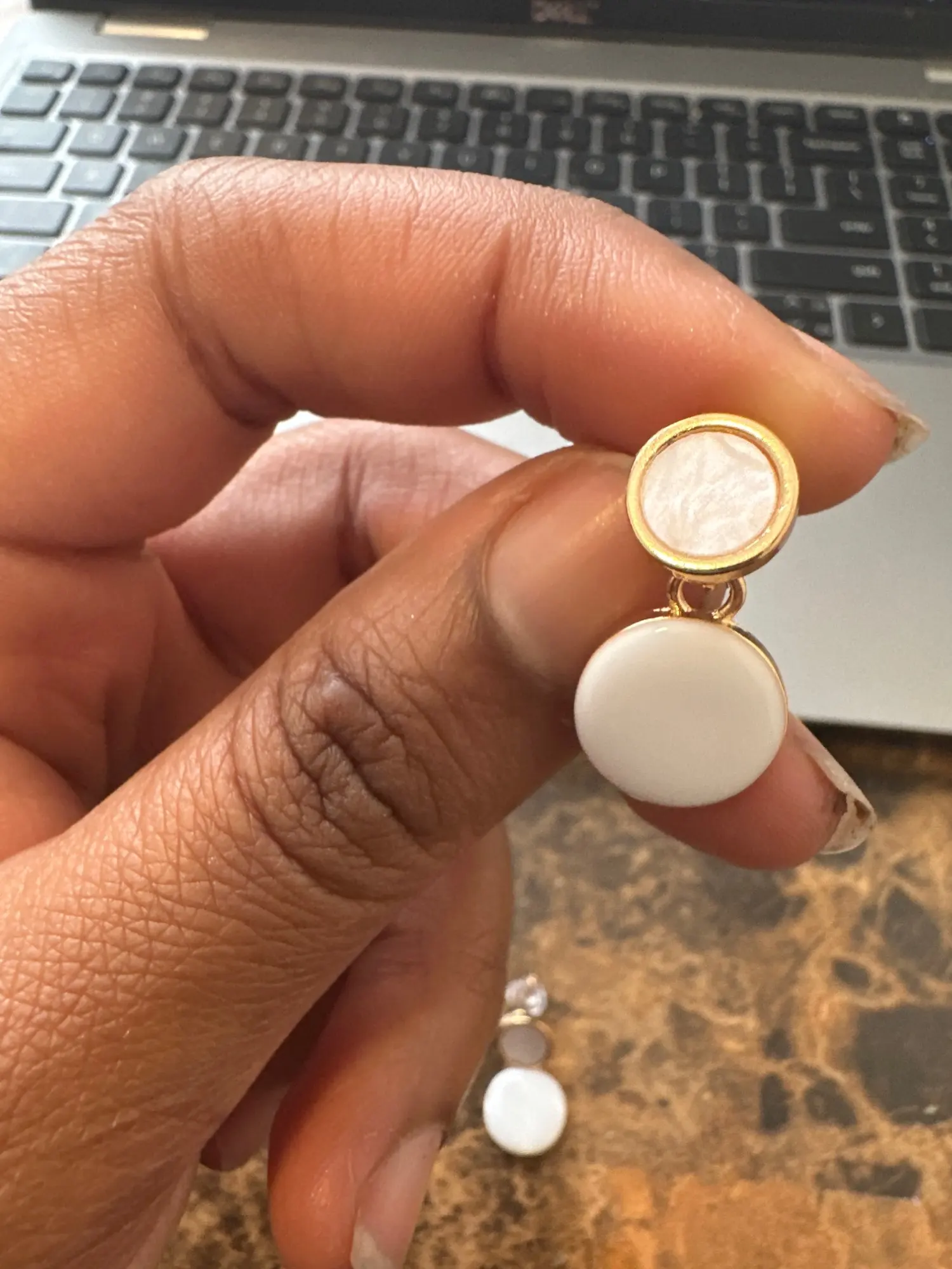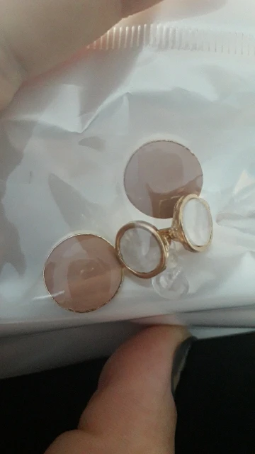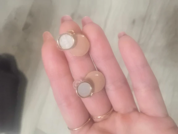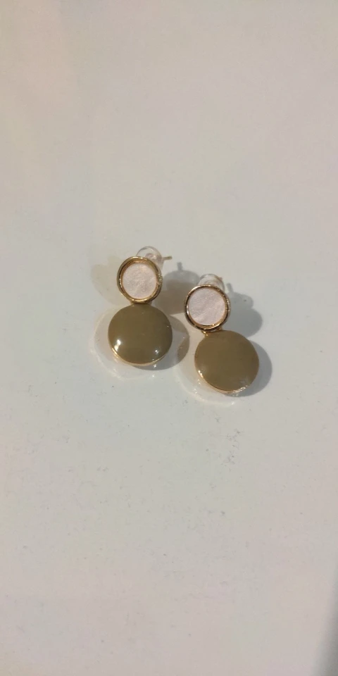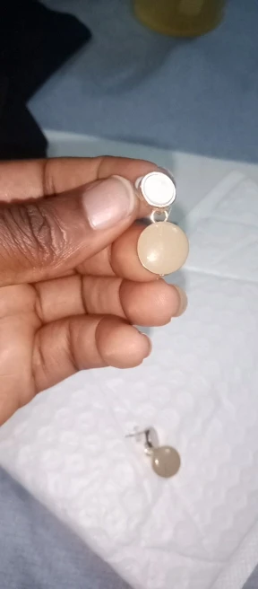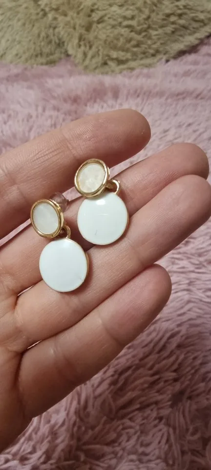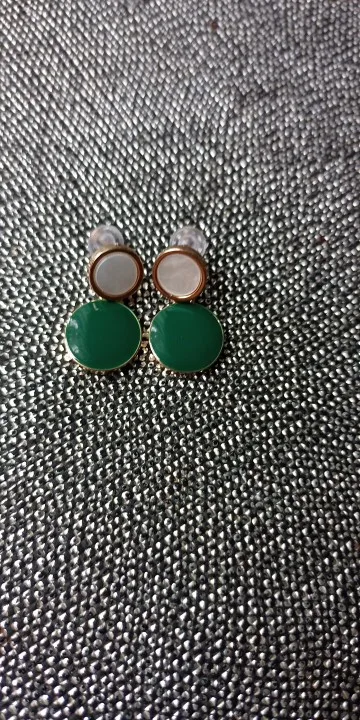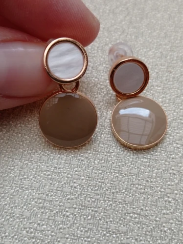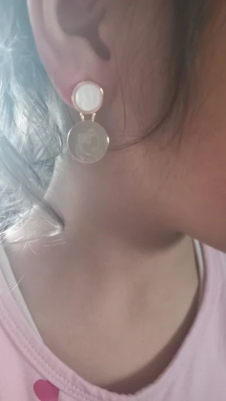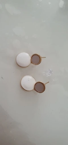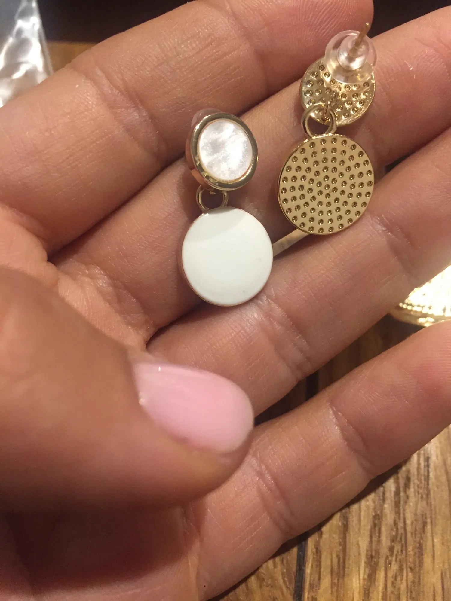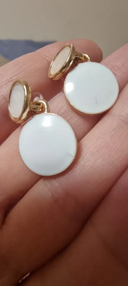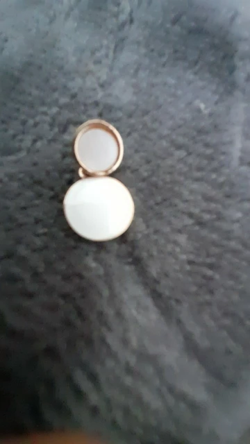 Small earrings, thought to be a little more. Not exactly the same. One earring white circle sunk, the other prominence.