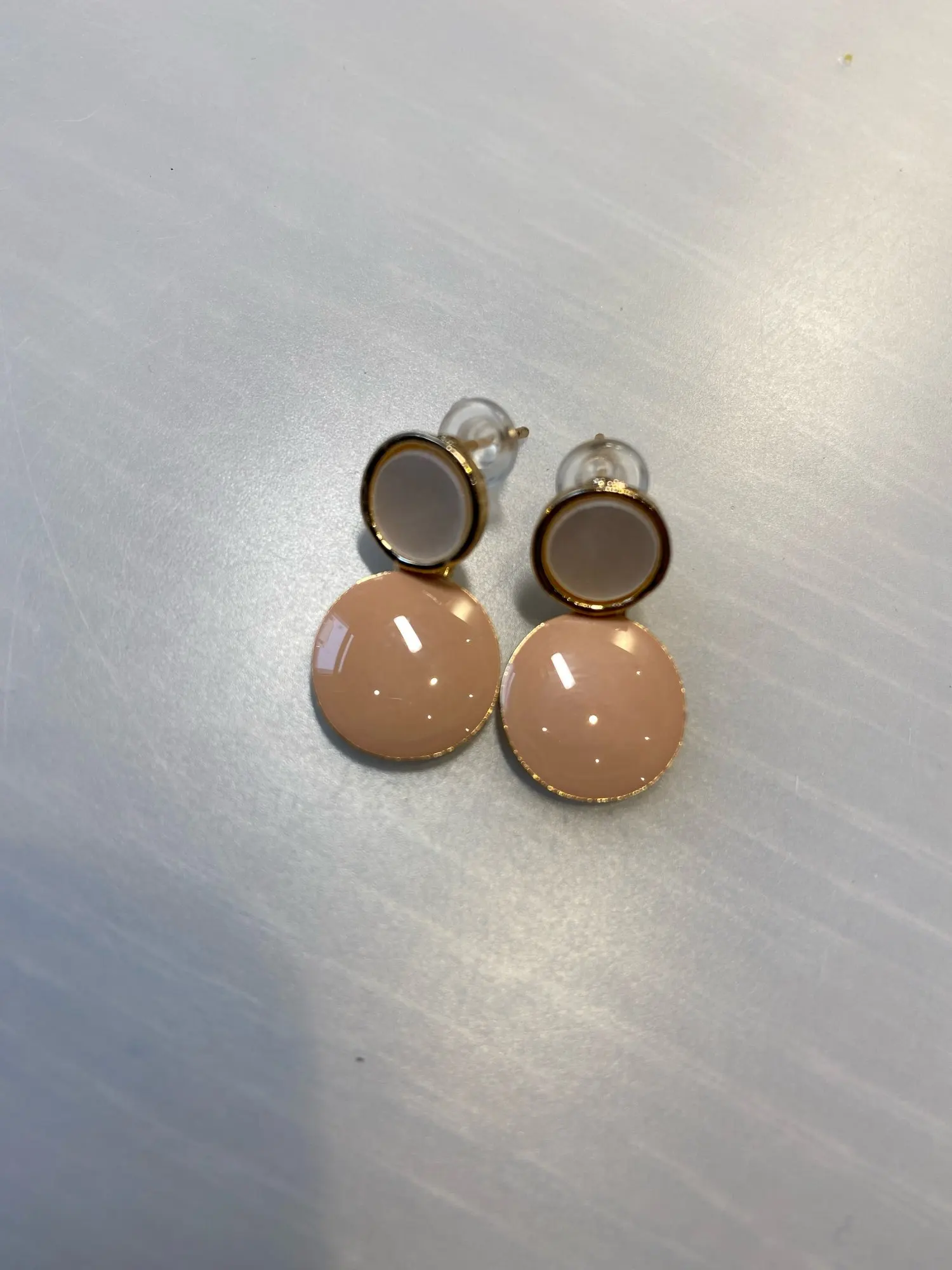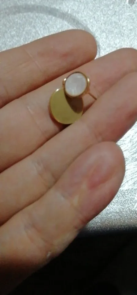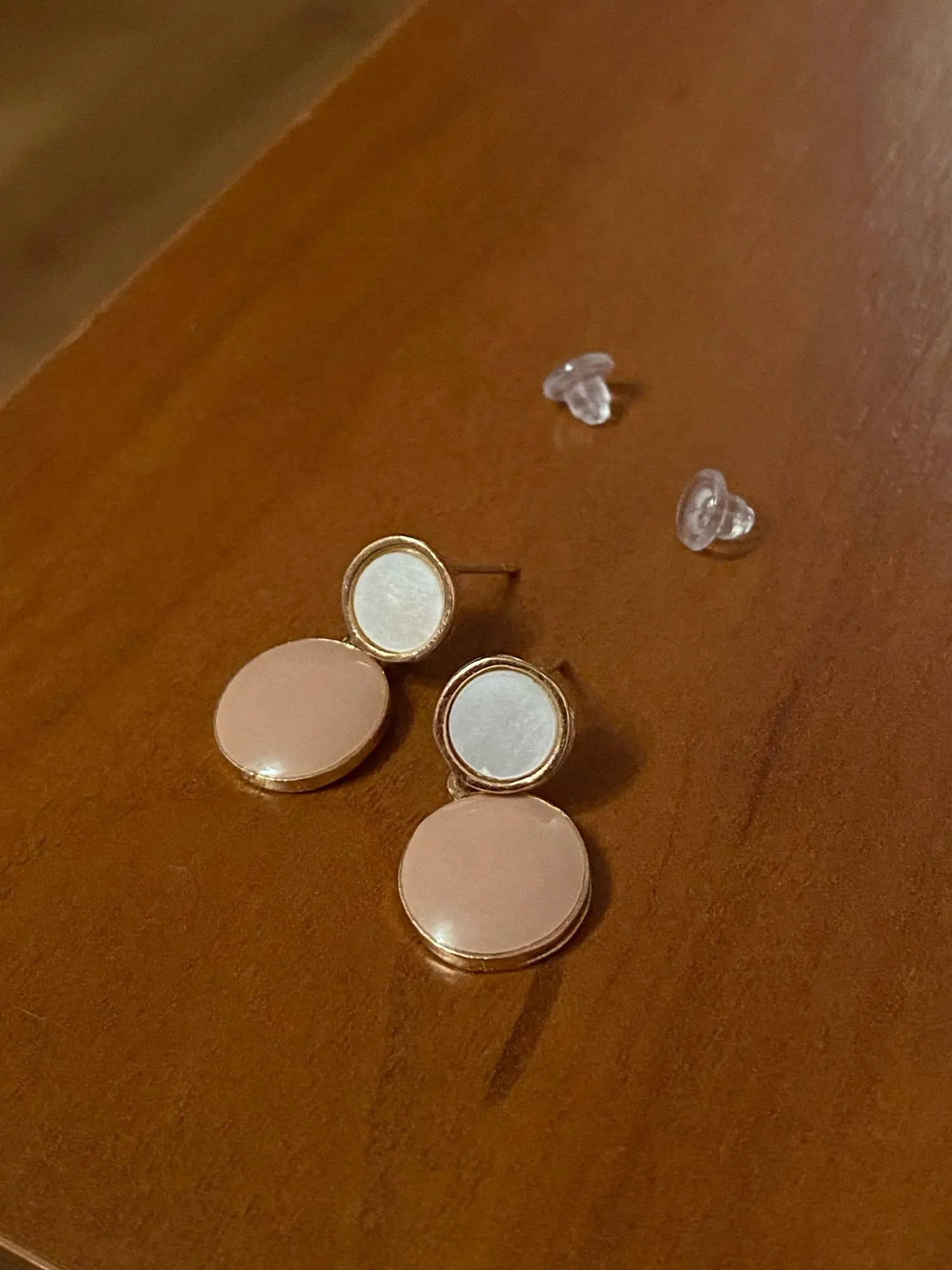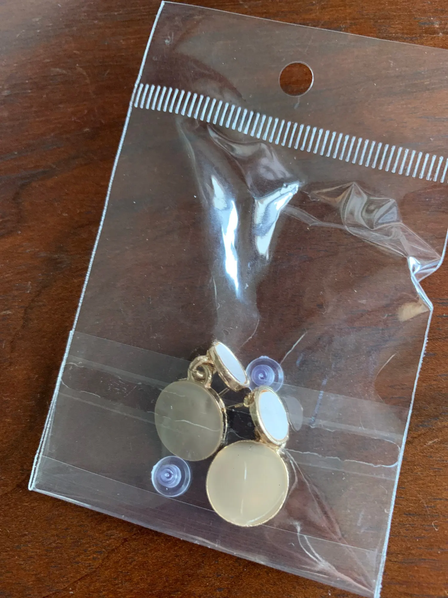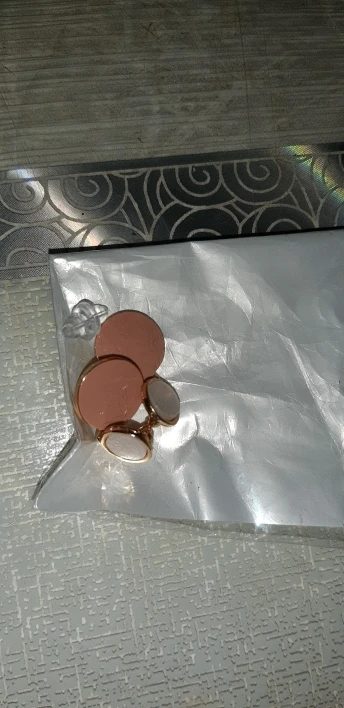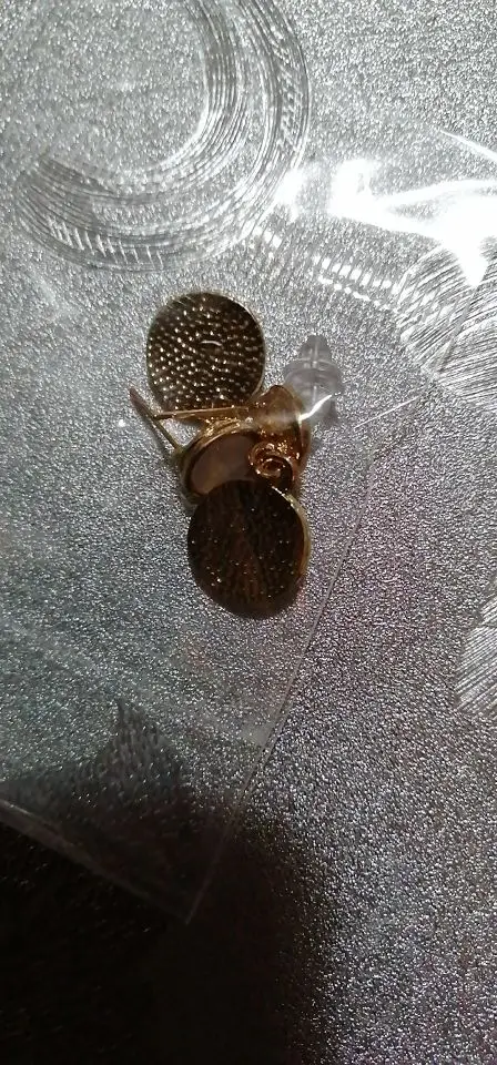 Small earrings, thought to be a little more. Not exactly the same. One earring white circle sunk, the other prominence.