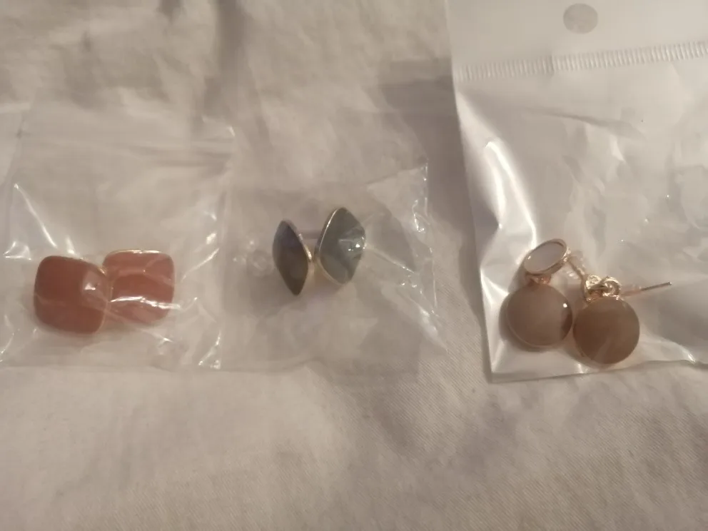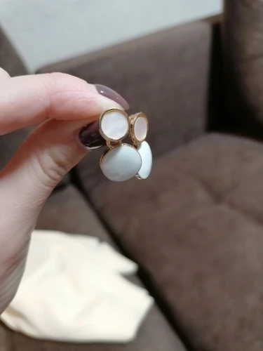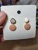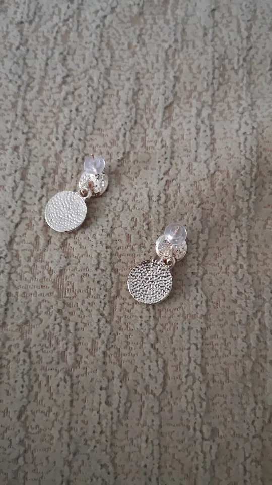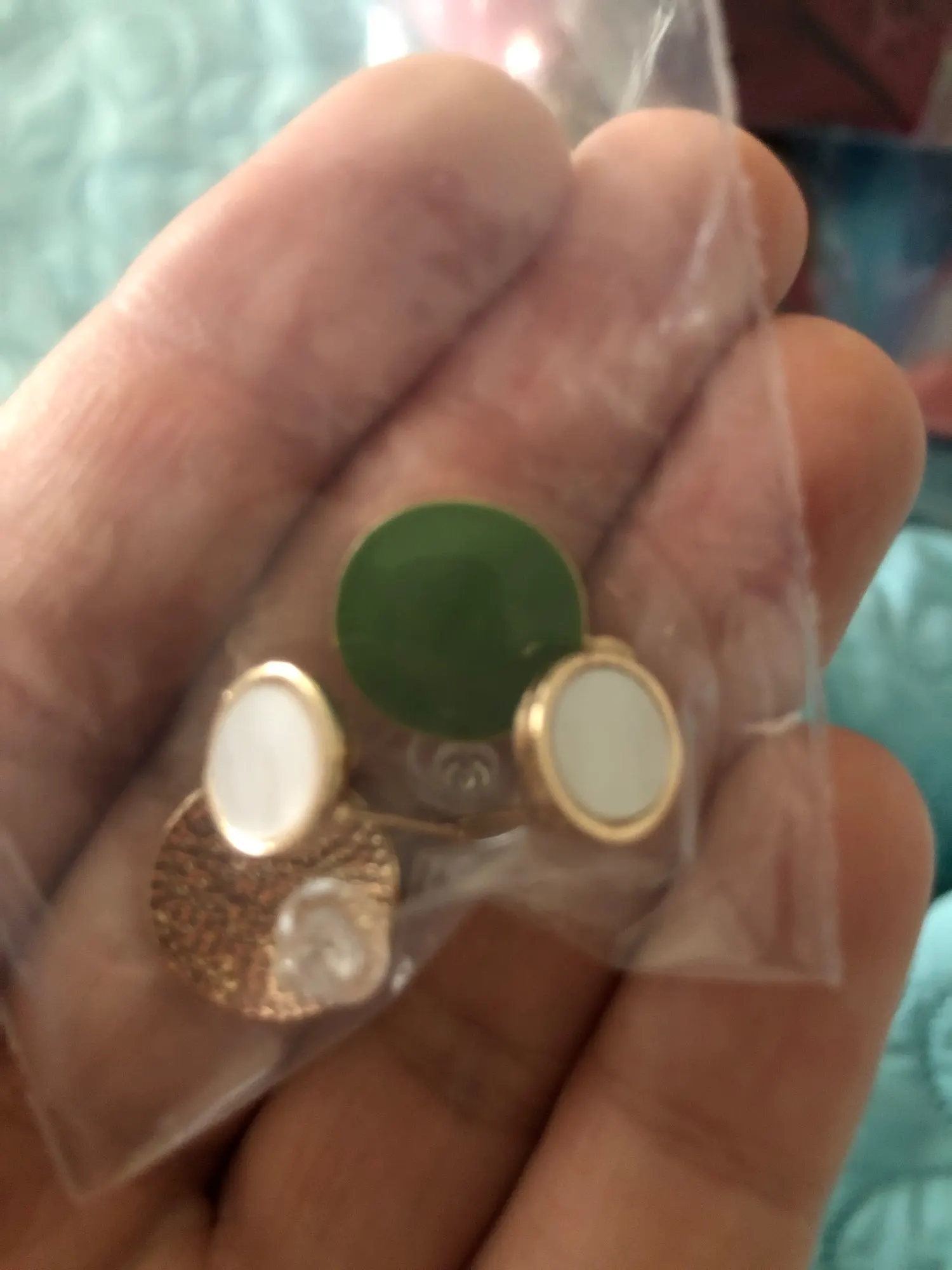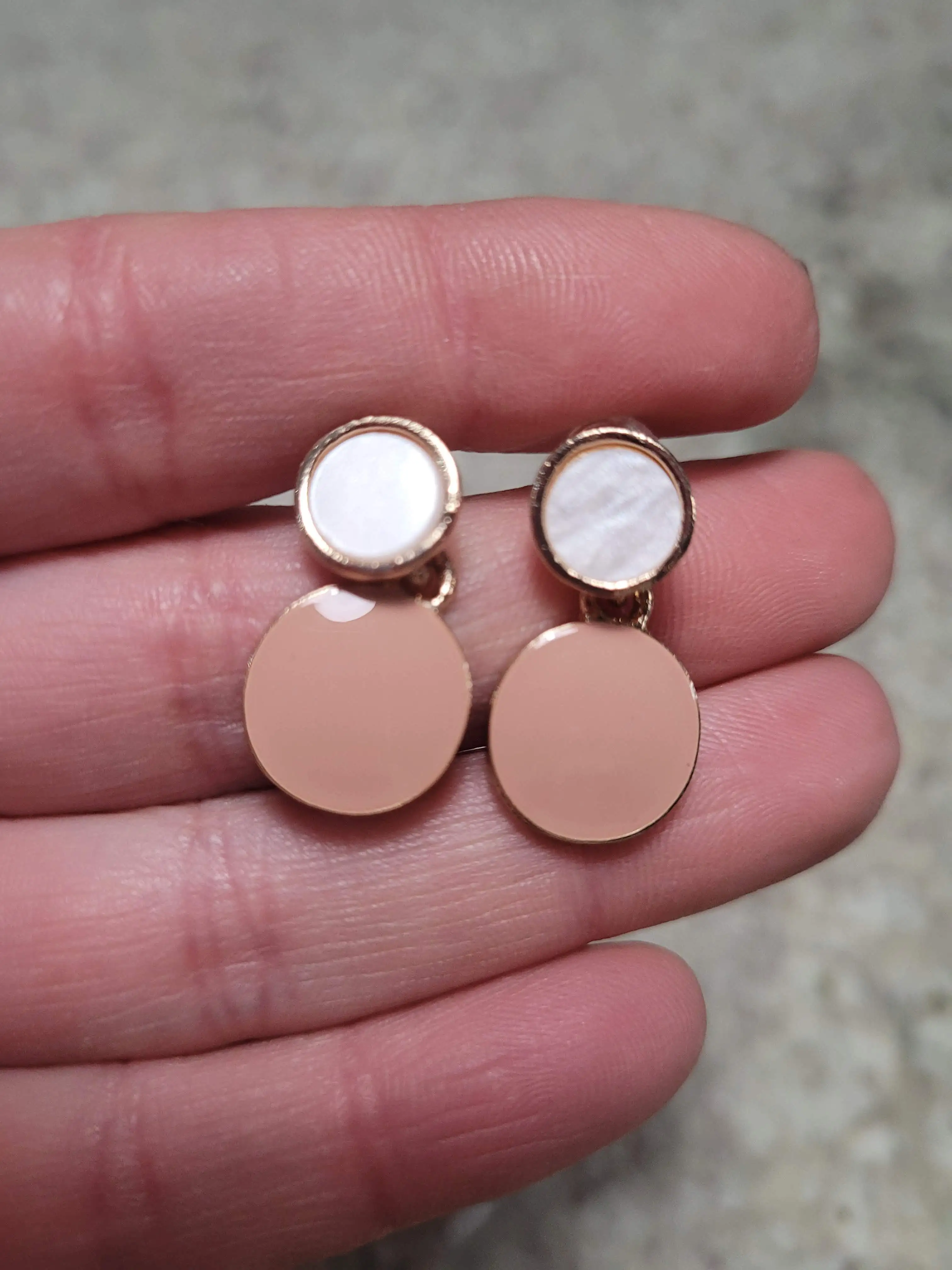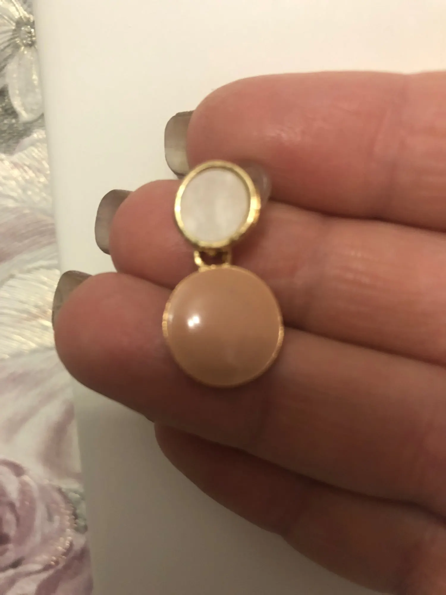 Small earrings, thought to be a little more. Not exactly the same. One earring white circle sunk, the other prominence.