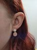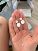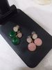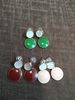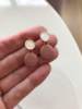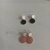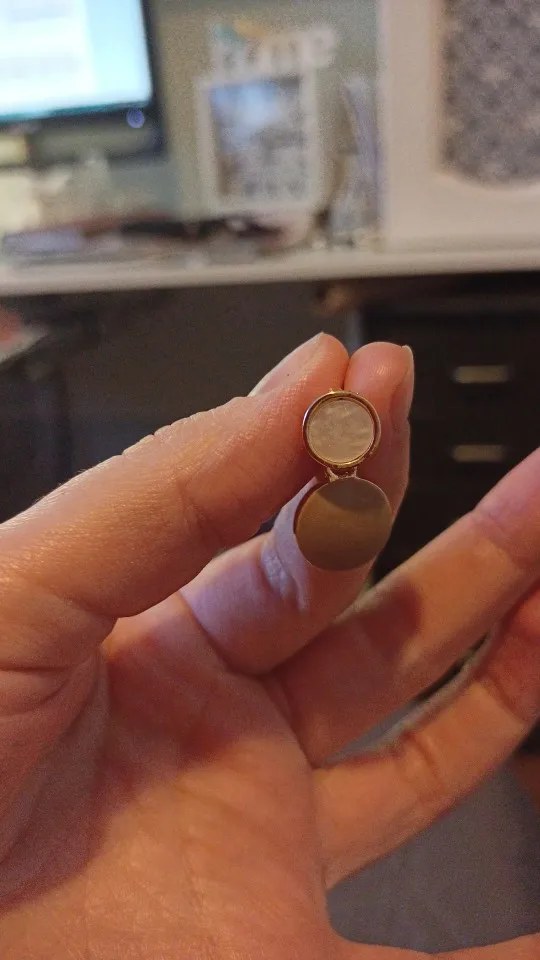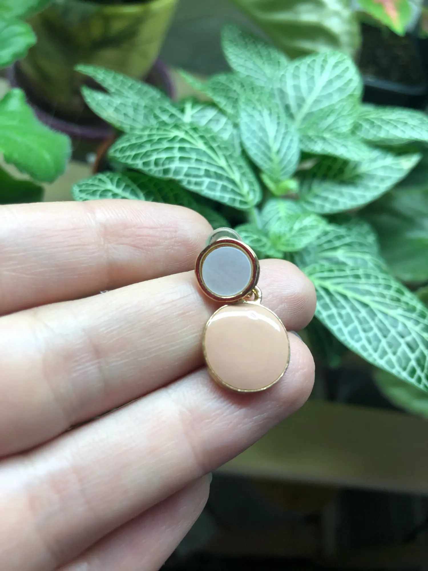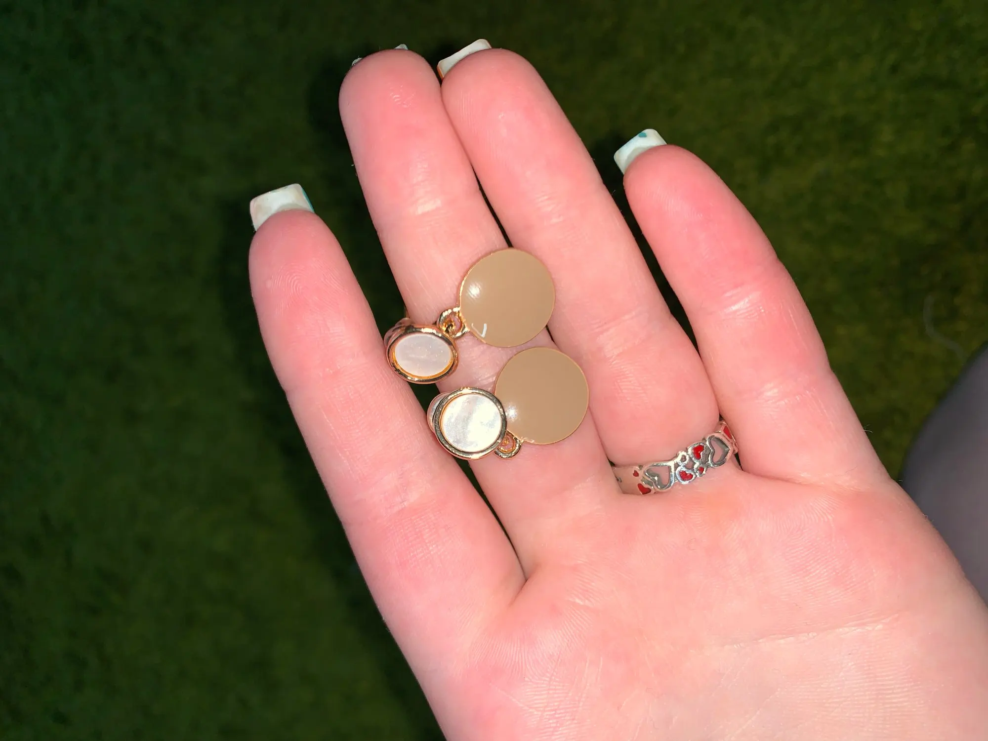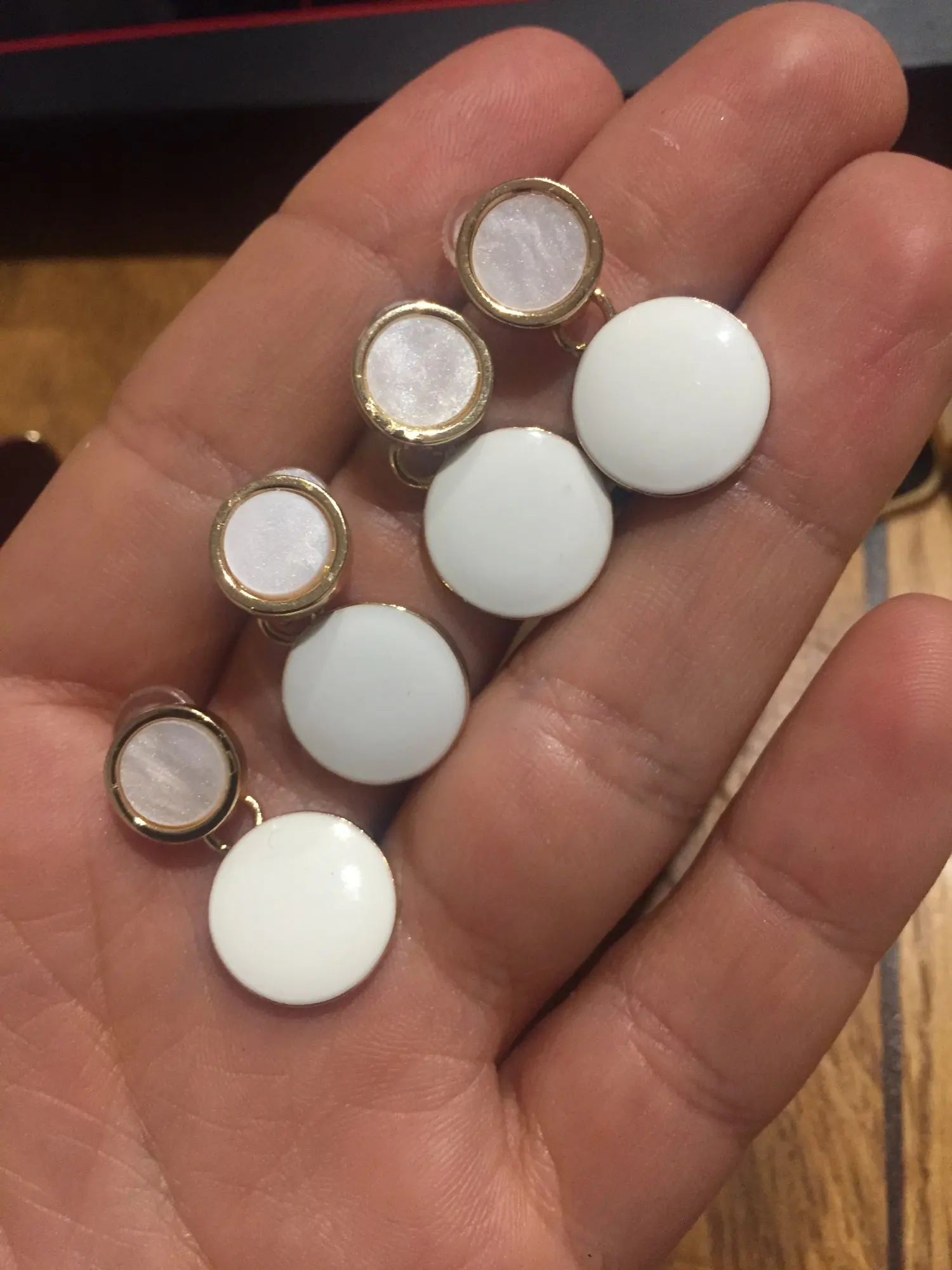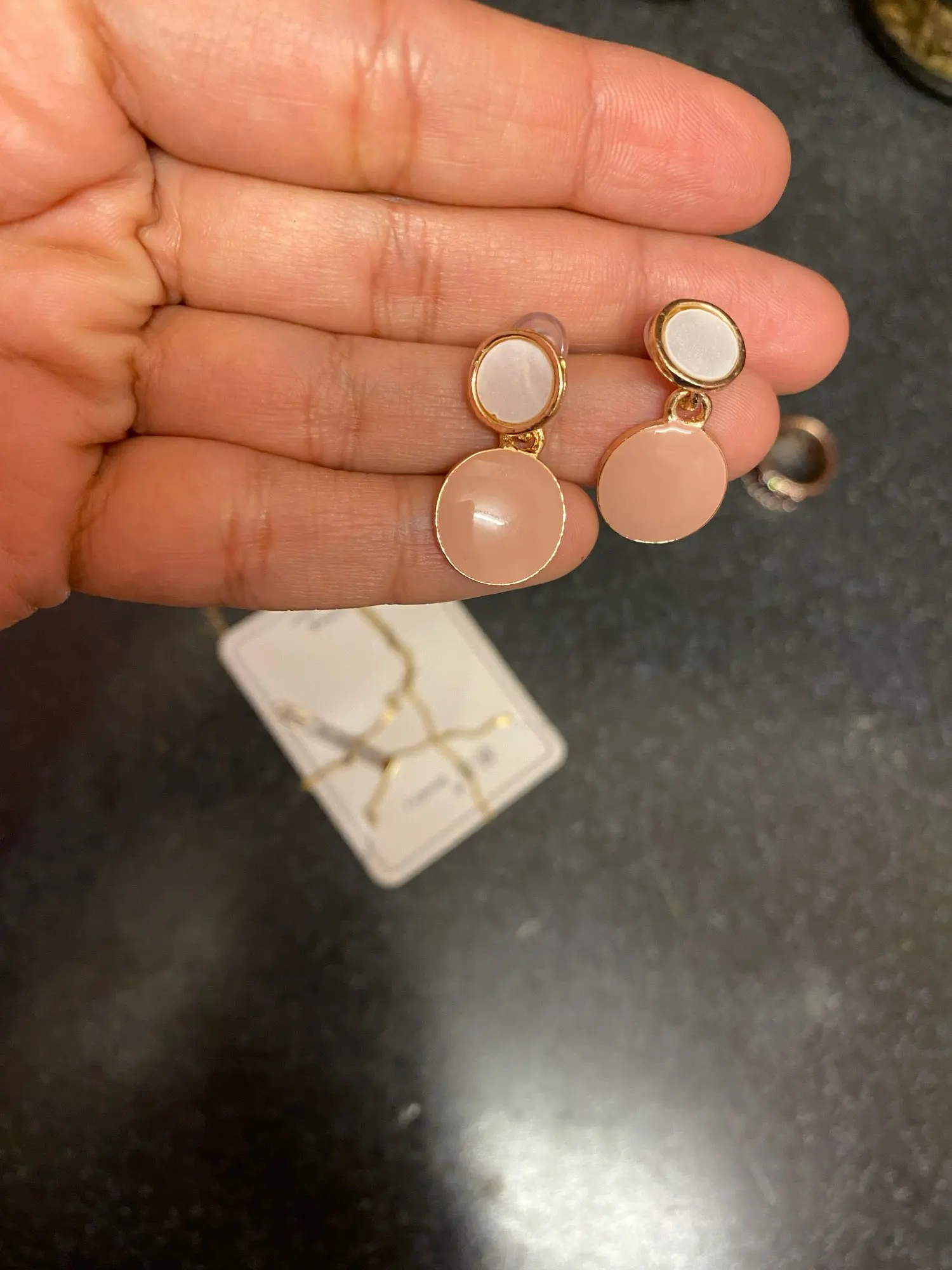 Small earrings, thought to be a little more. Not exactly the same. One earring white circle sunk, the other prominence.