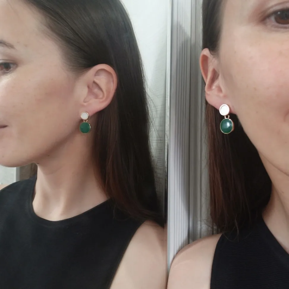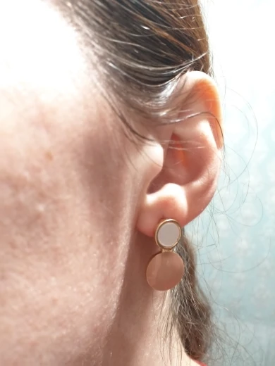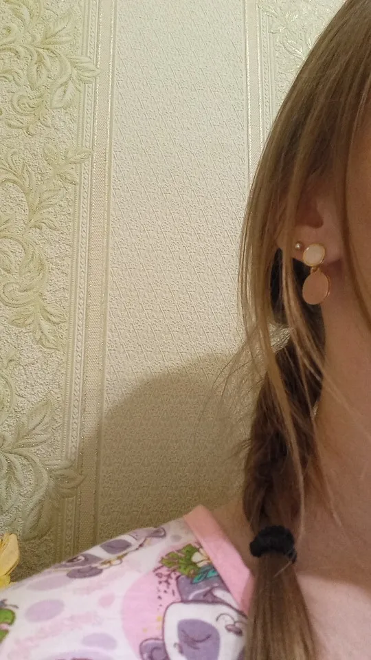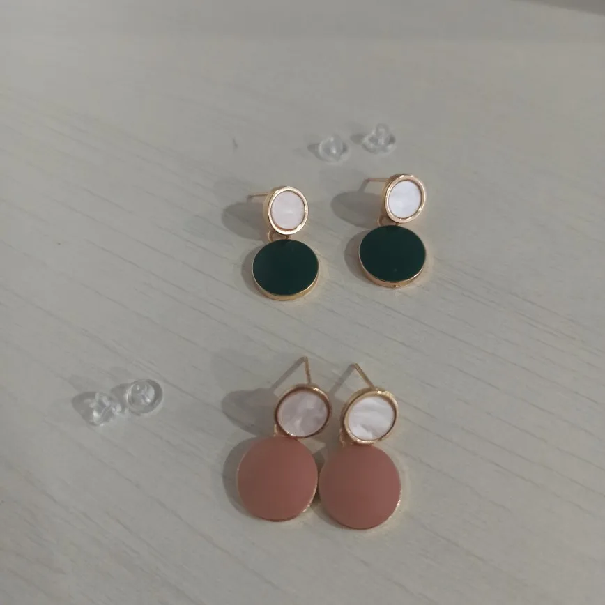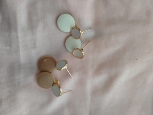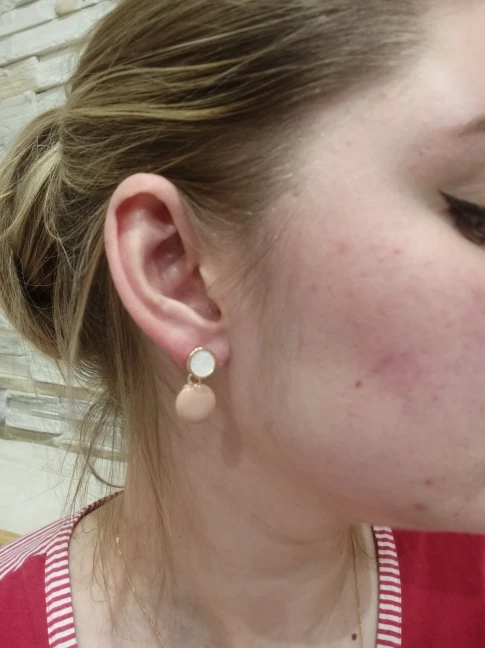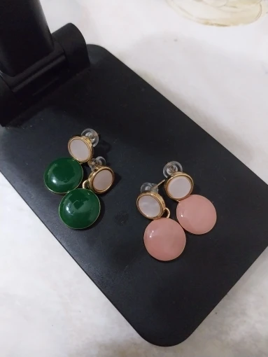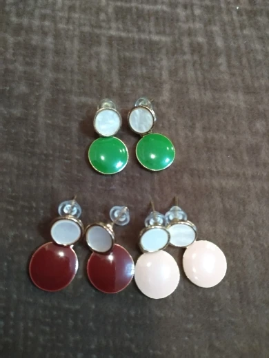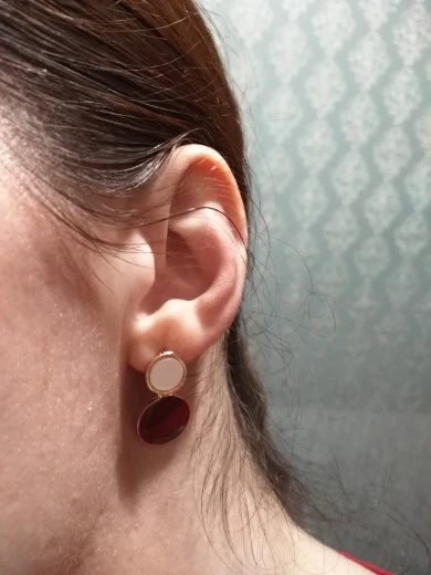 I ordered these earrings in powdery and burgundy colors, because I previously ordered Green and I really liked them (although because of the color mismatch, the first ones were upset). Powder and Bordeaux seem defective, as the Upper Circular is different from the other in one pair. In the rest, normal earrings, comfortable.