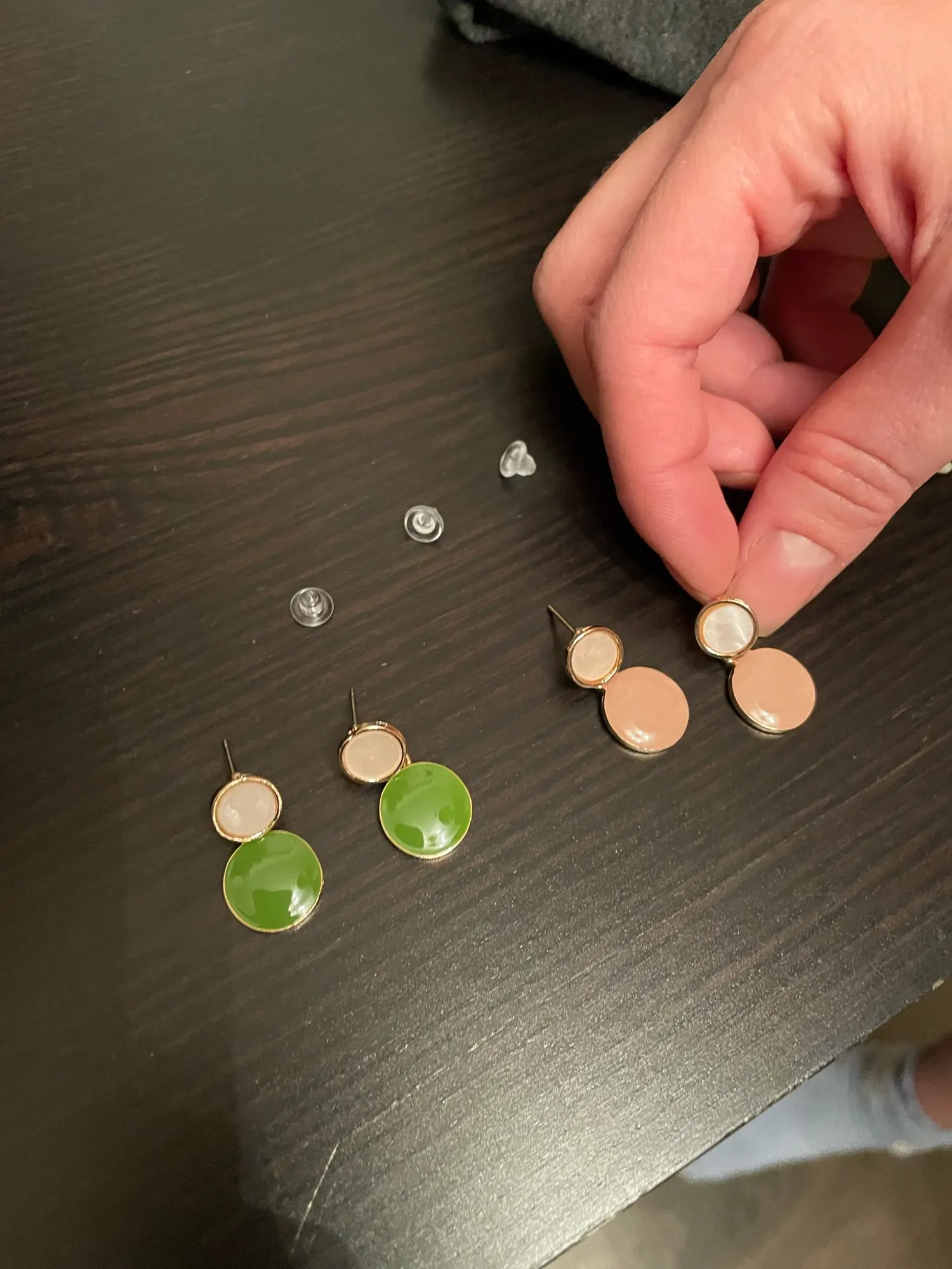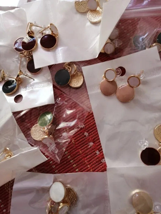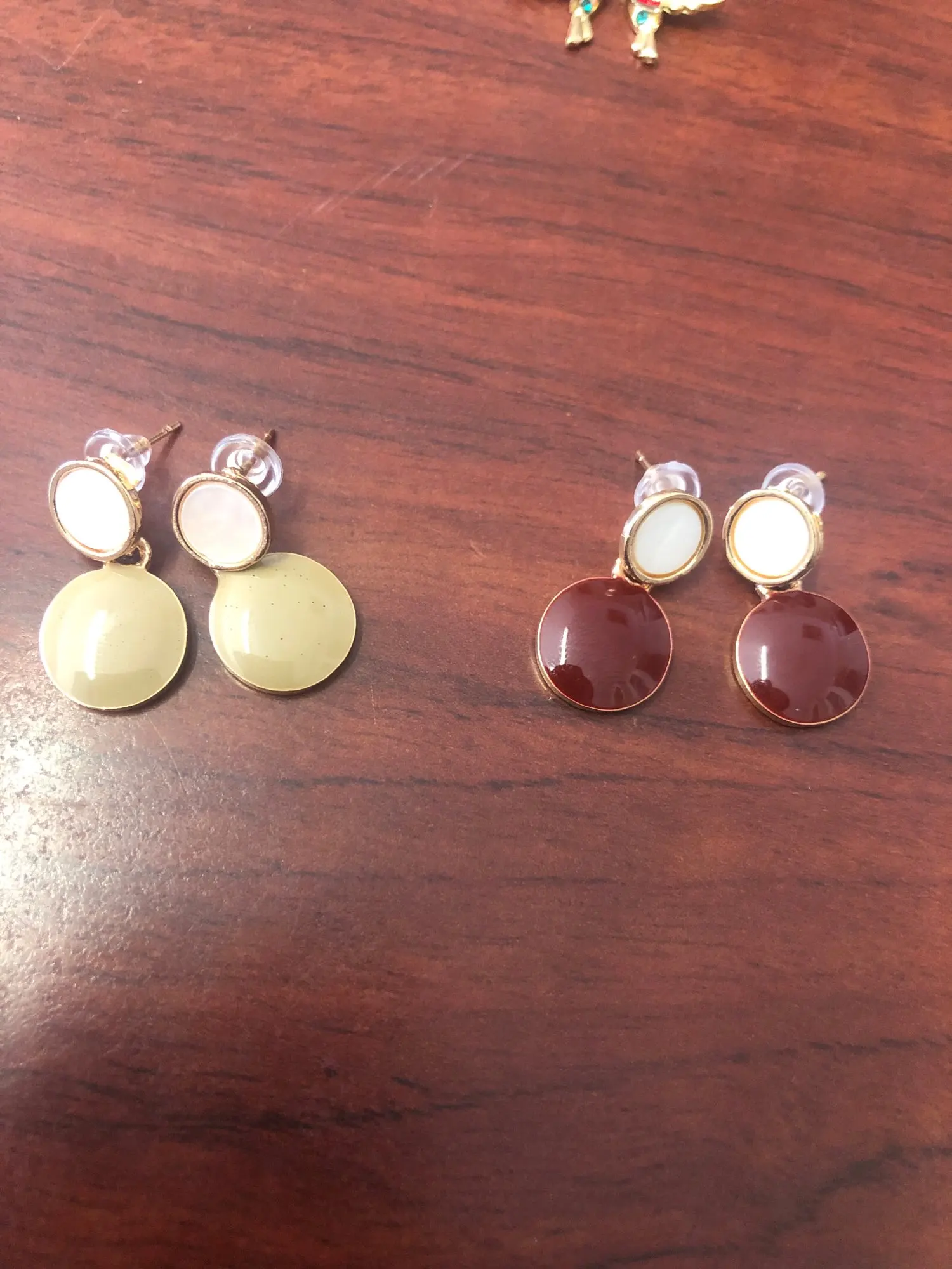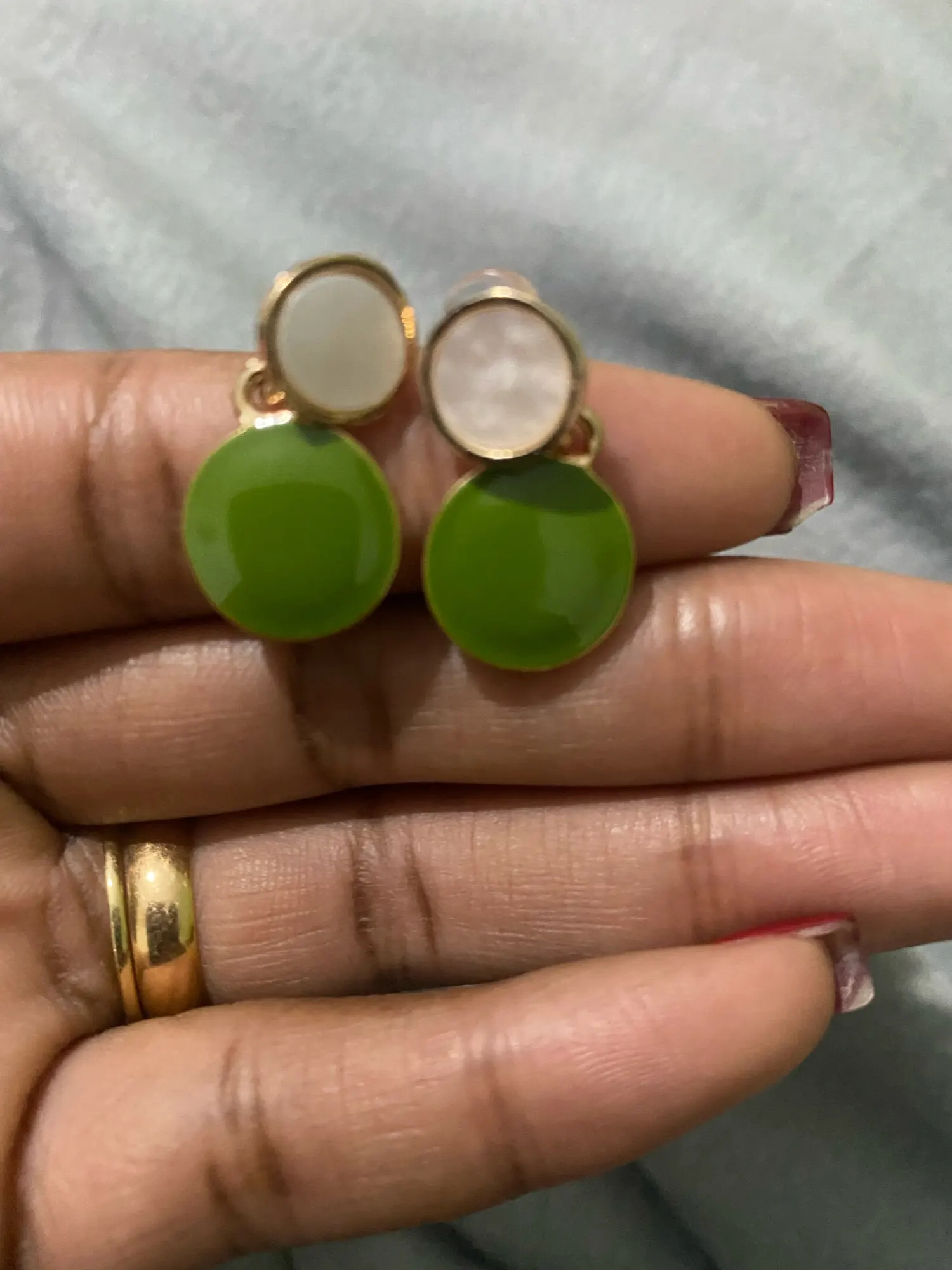 I ordered these earrings in powdery and burgundy colors, because I previously ordered Green and I really liked them (although because of the color mismatch, the first ones were upset). Powder and Bordeaux seem defective, as the Upper Circular is different from the other in one pair. In the rest, normal earrings, comfortable.