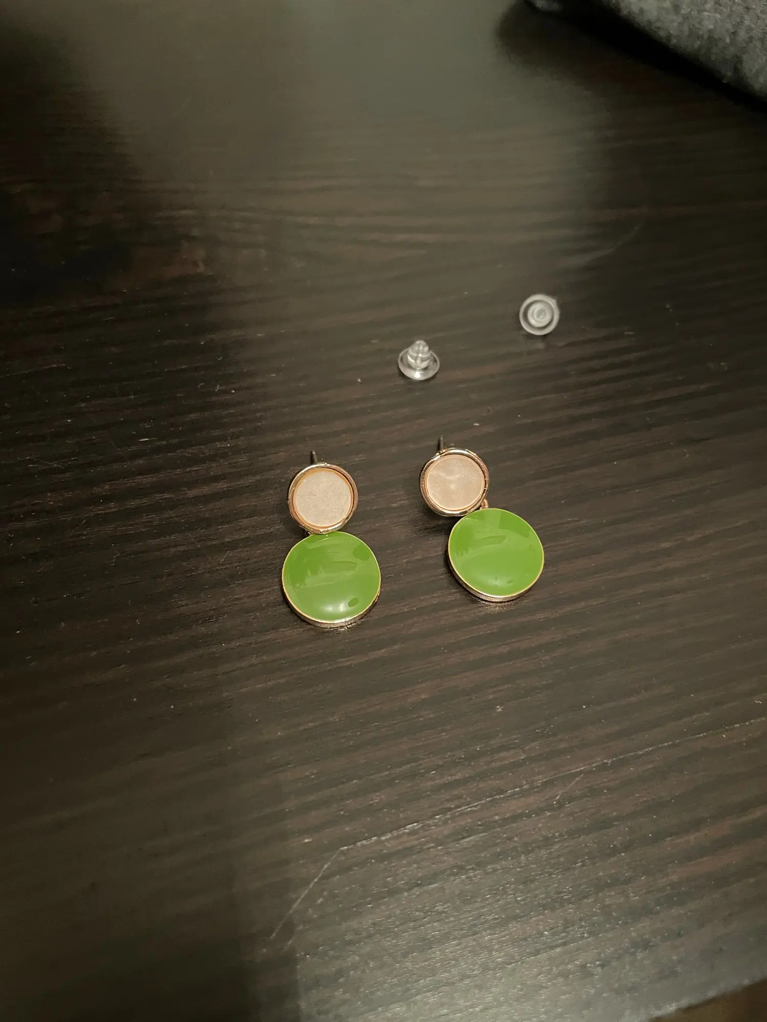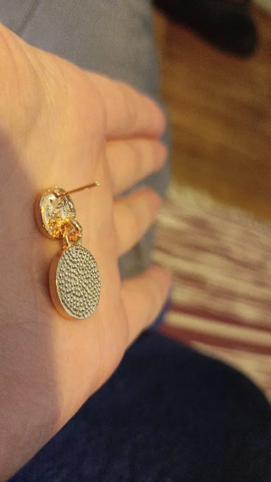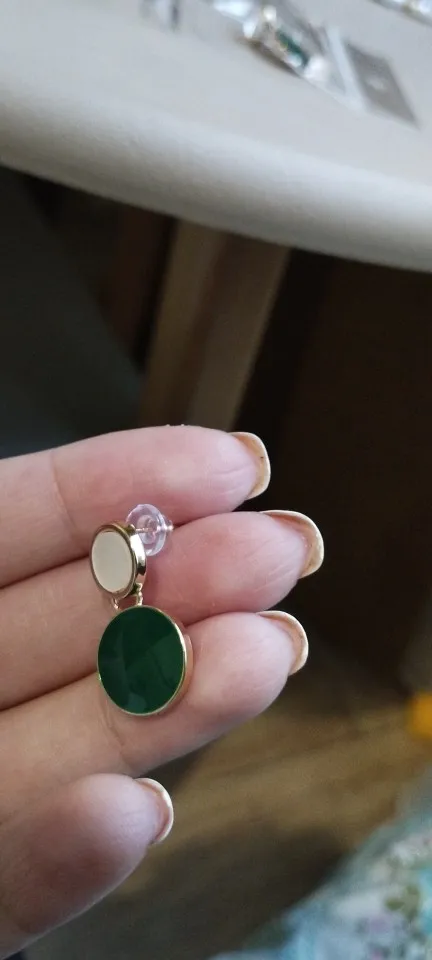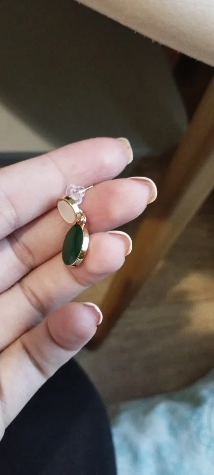 Cool earrings, delivery earlier came, about a week earlier, it's very good, until I tell you if the green traces remain, and so far I will wear