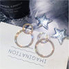 Large and Small Circle Long Zircon Flash Earrings