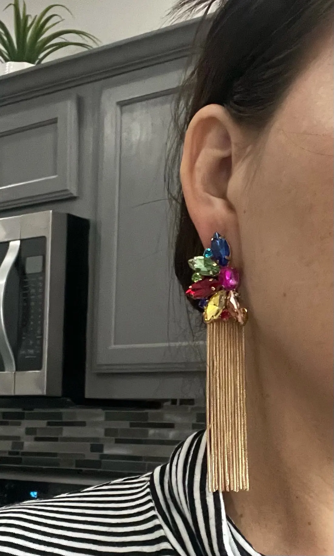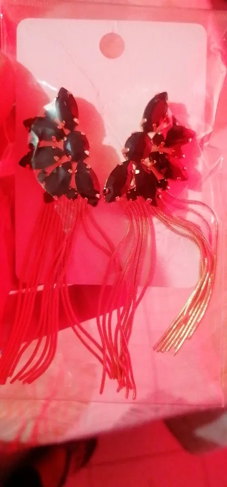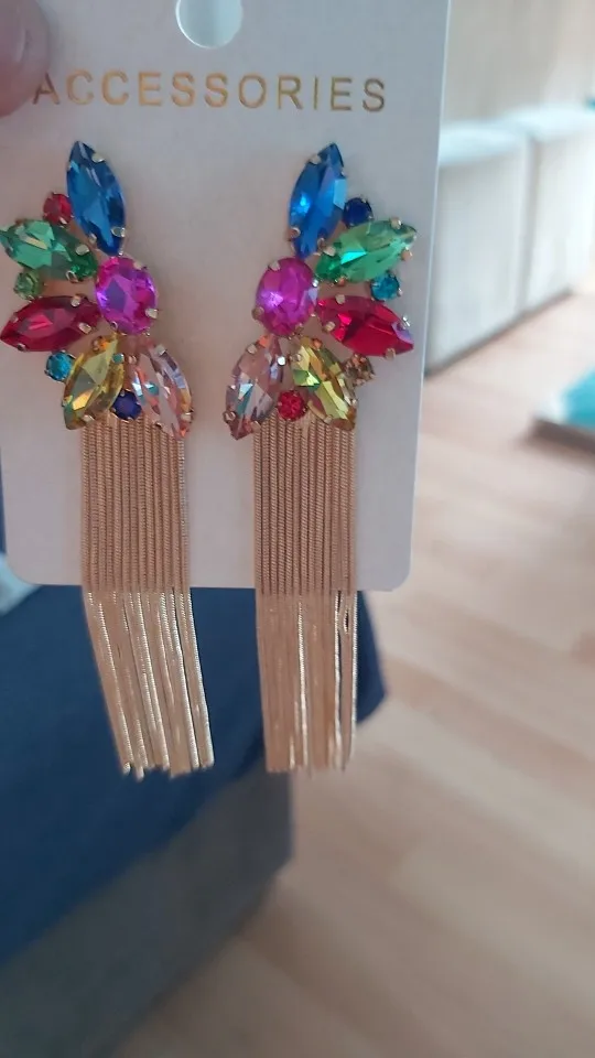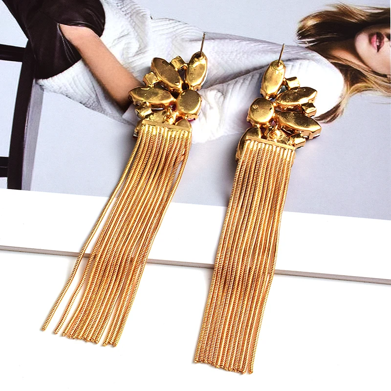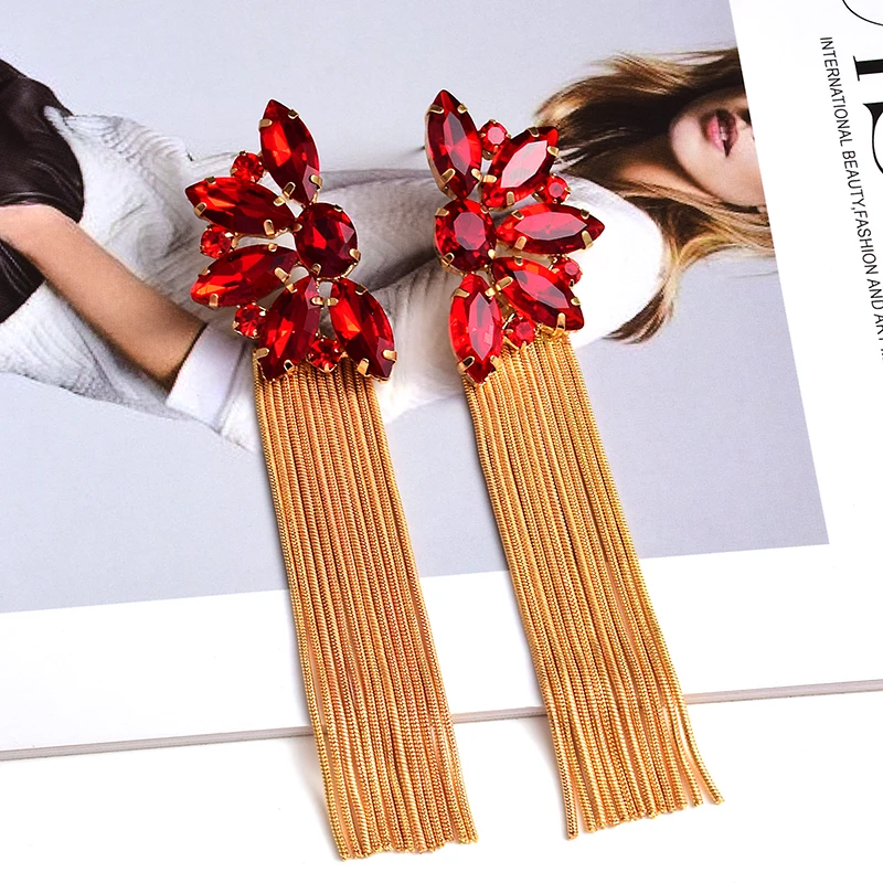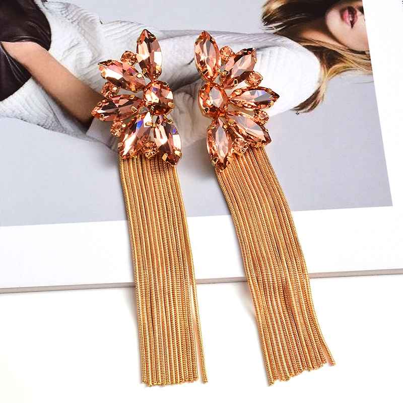 Luxury Colorful Crystal Long Metal Chain Earrings