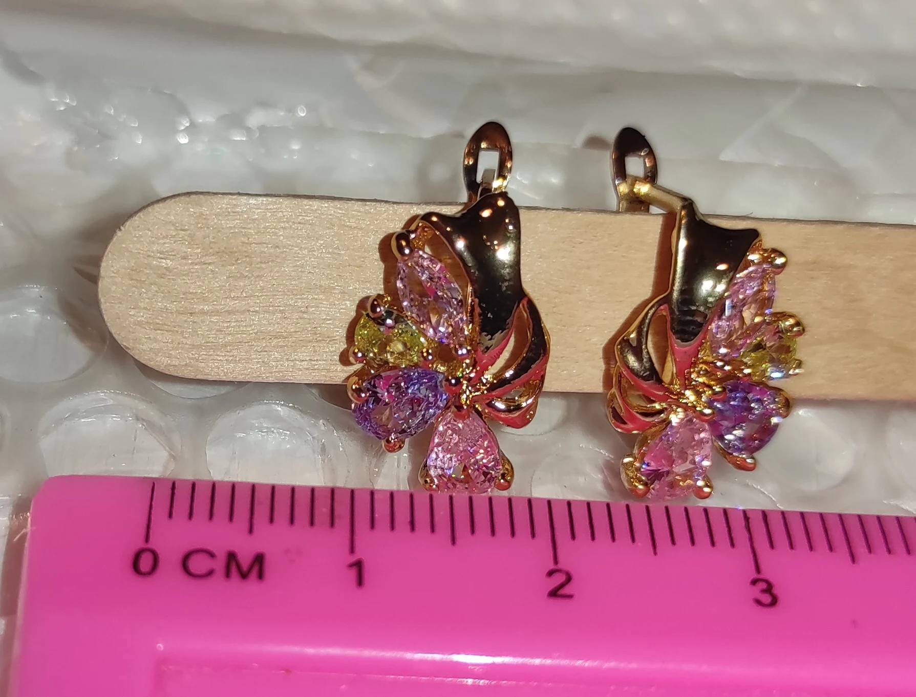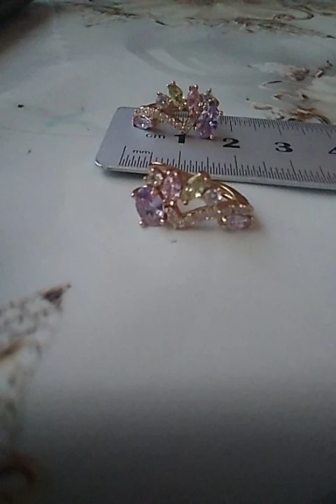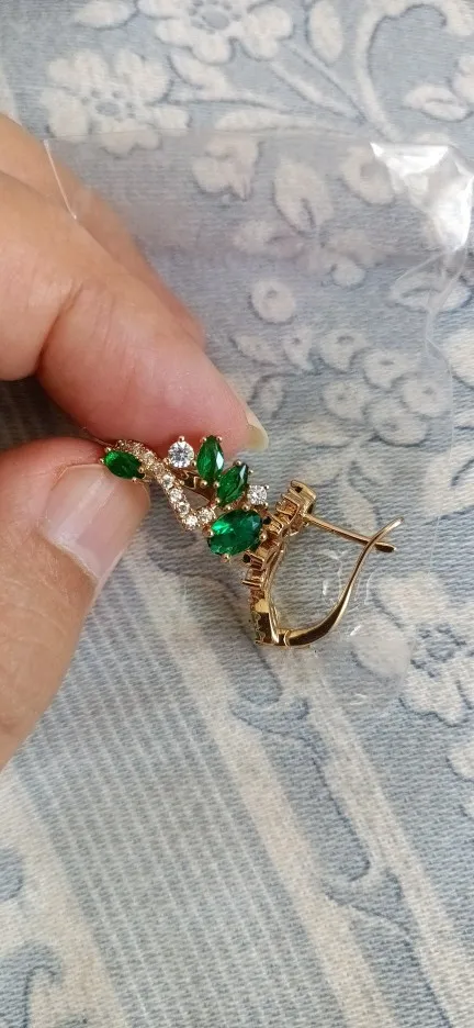 Earrings are small, but very beautiful. Not to distinguish from gold. The stones are sparkling. Delivery is very fast. Ordered 13.10 came 25.10.