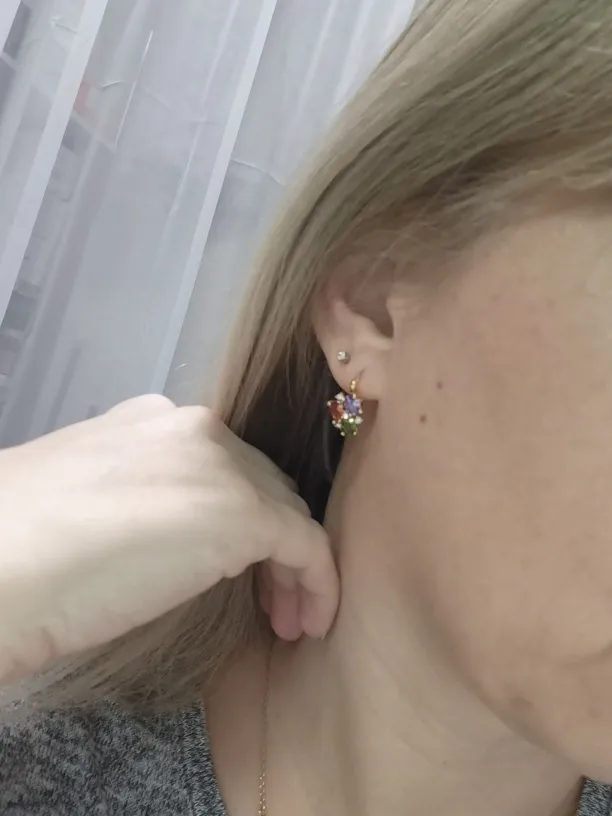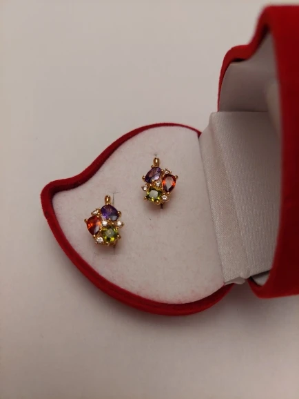 I received the parcel, I liked the earrings very much! No marriage, the pebbles are all in place. Shiny awesome! True, the color of the coating is different from gold, but I will still wear it with pleasure! Thank you!!!