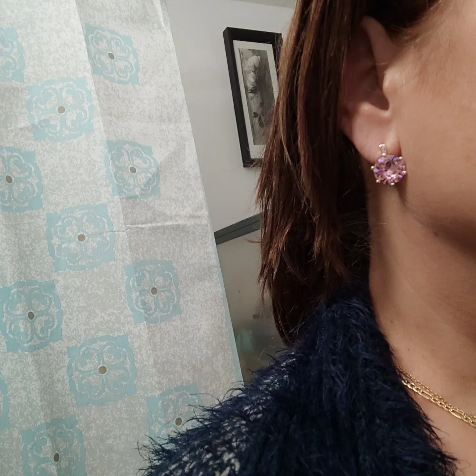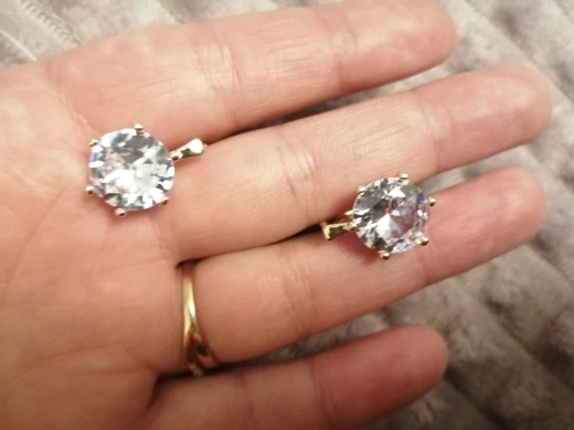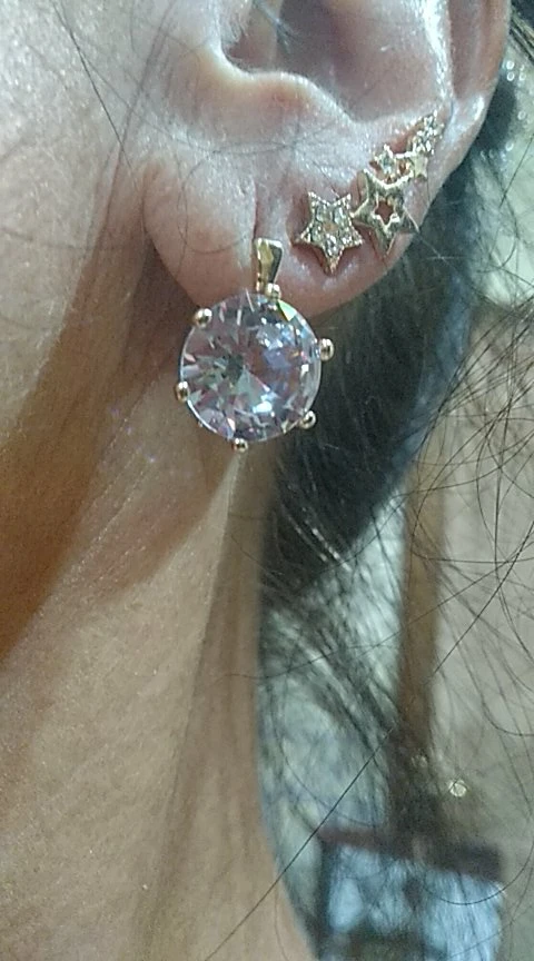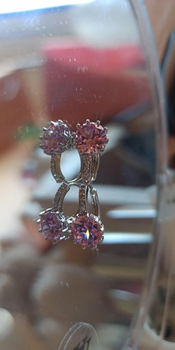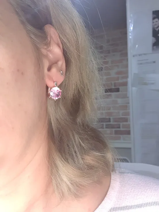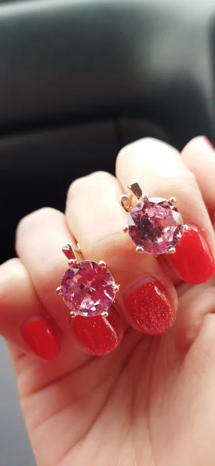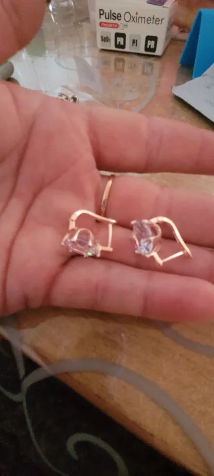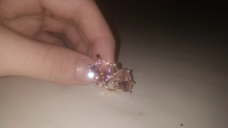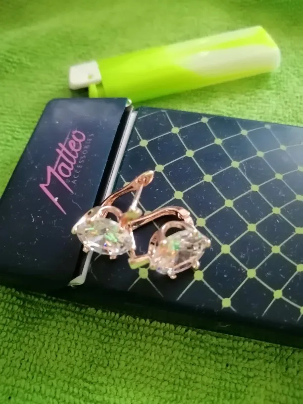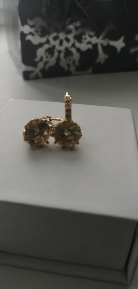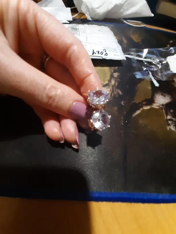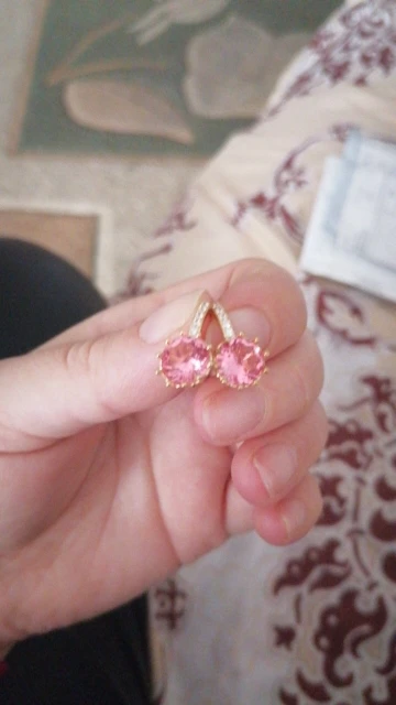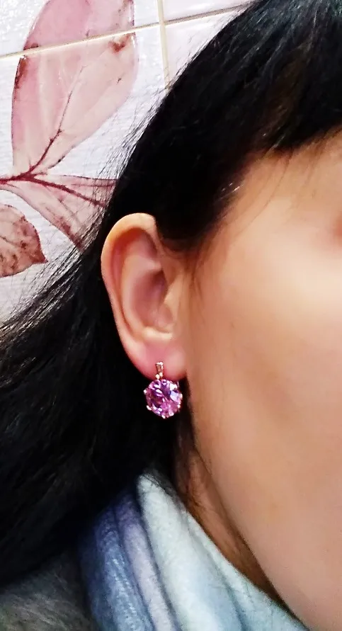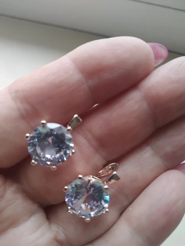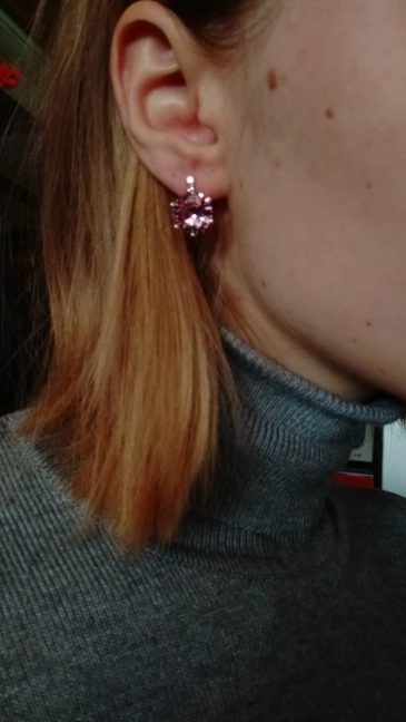 Cute earrings, but much more than they seemed in the photo, very shiny bright crystals, quality glass, not acrylic, but the store sent pink instead of purple, and they are very good. who has a fat pee. In short, for its price, the earrings are excellent, but they do not suit me, I'll give someone. Delivery is fast, with the seller did not communicate.