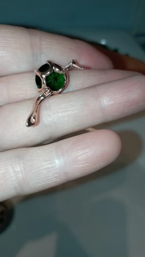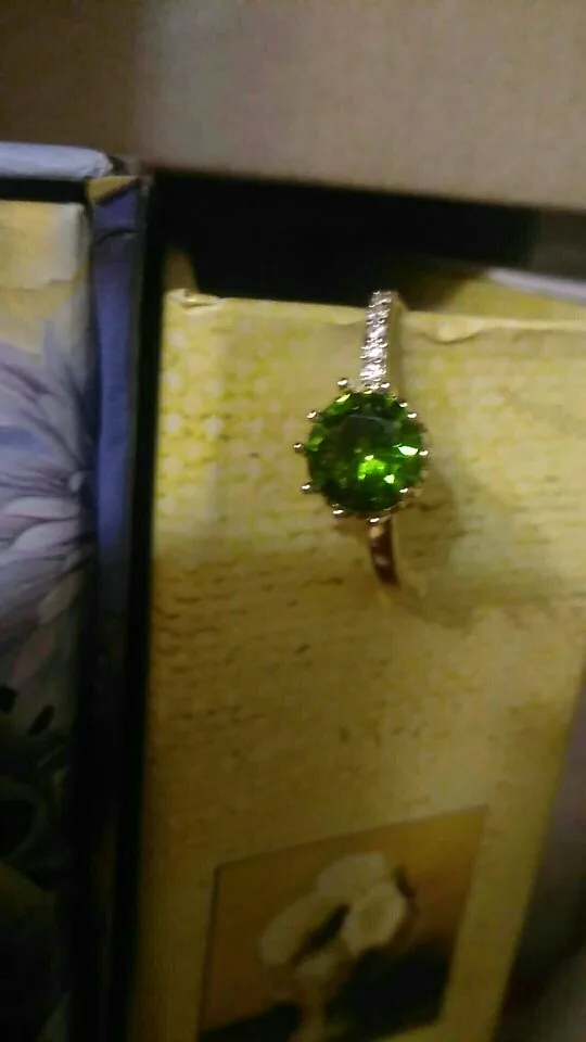 Beautiful!!! The color of the stone in reality is more saturated green and the cut is different, the stone looks more flat. I waited almost three months for the parcel. Ordered on July 23, received in a box on October 20