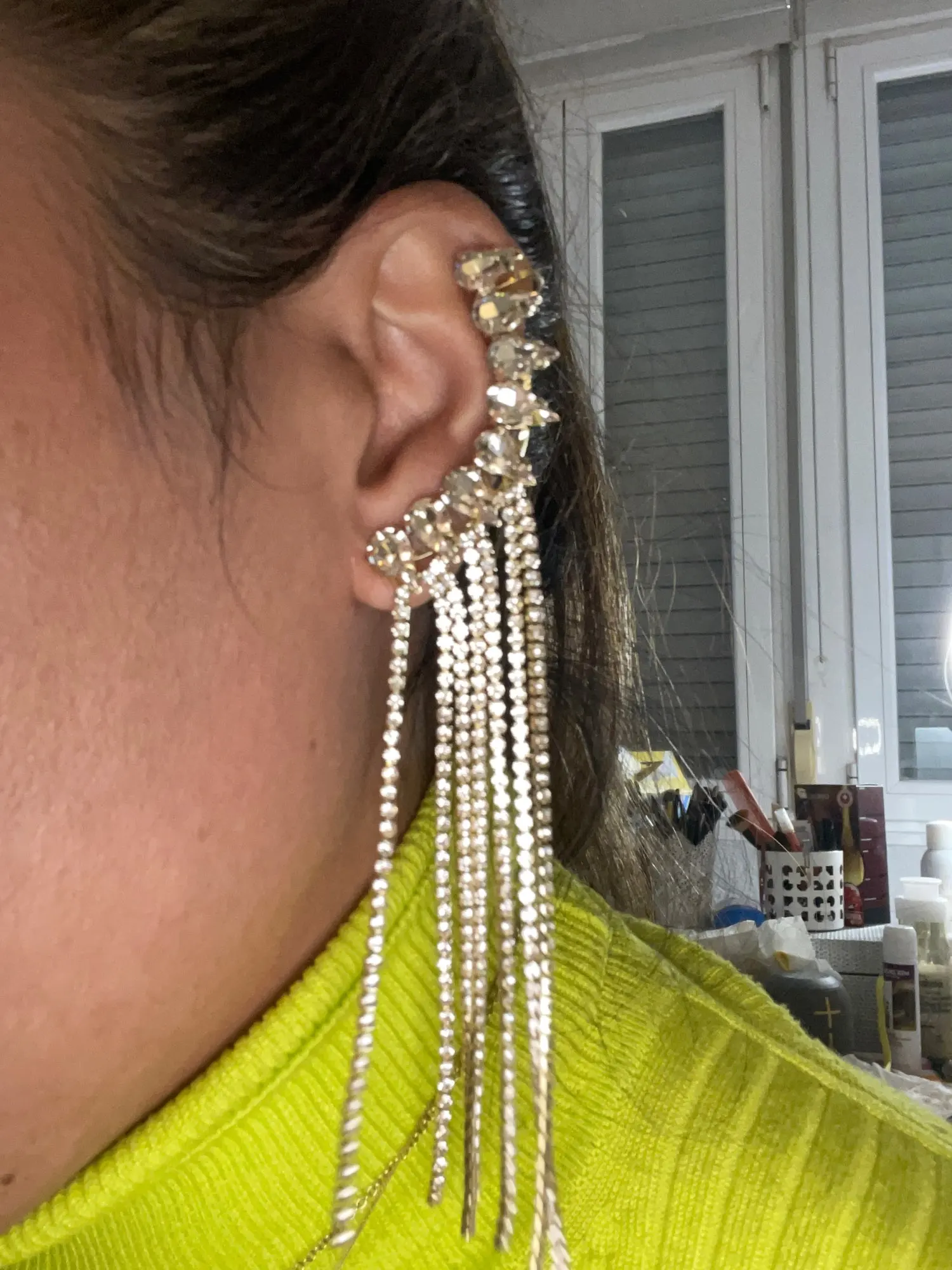 The like please! Perfect, not heavy, super delicate and elegant, not defective, arrived on time, press a little on but is bearable (was a little red region) has a protection earring to not hurt, loved loved❤❤❤10/10, well packed.