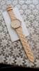 I got my watch. They look good, especially for such a price. Strap made of synthetic leather, beige. Metal on the watch is yellow (gold), and on the bracelet is white... Expensive do not look). Sent at once. It came to Ukraine in 21 days. Did not communicate with the store, there was no need.