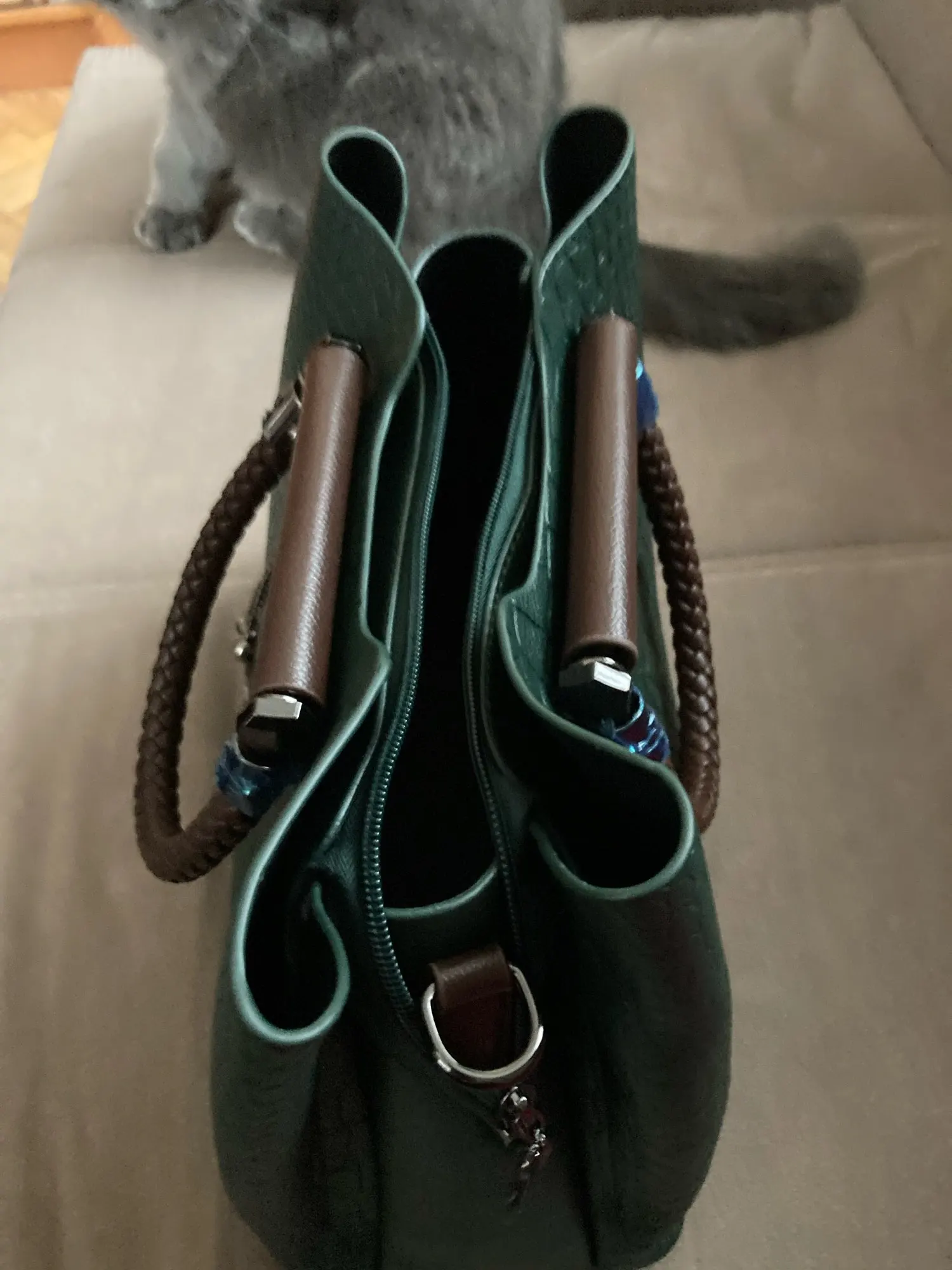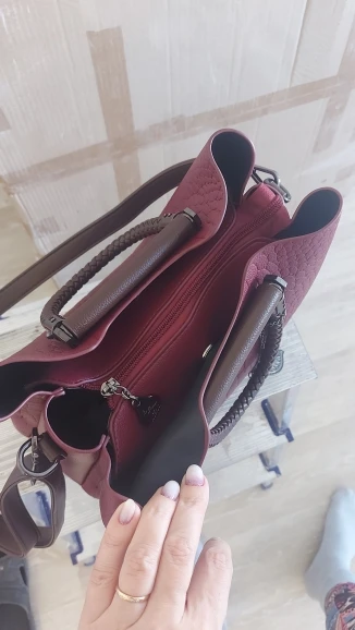 I liked the handbag, the quality is good in appearance, the smell of the skin when unpacking. The edges are sewed, so I can not accurately determine whether the skin is real. Quite roomy, although it looks compact. quietly entered the diary of the A5. as a gift an elastic band for hair. packed perfectly, it came quickly days in 10-12.