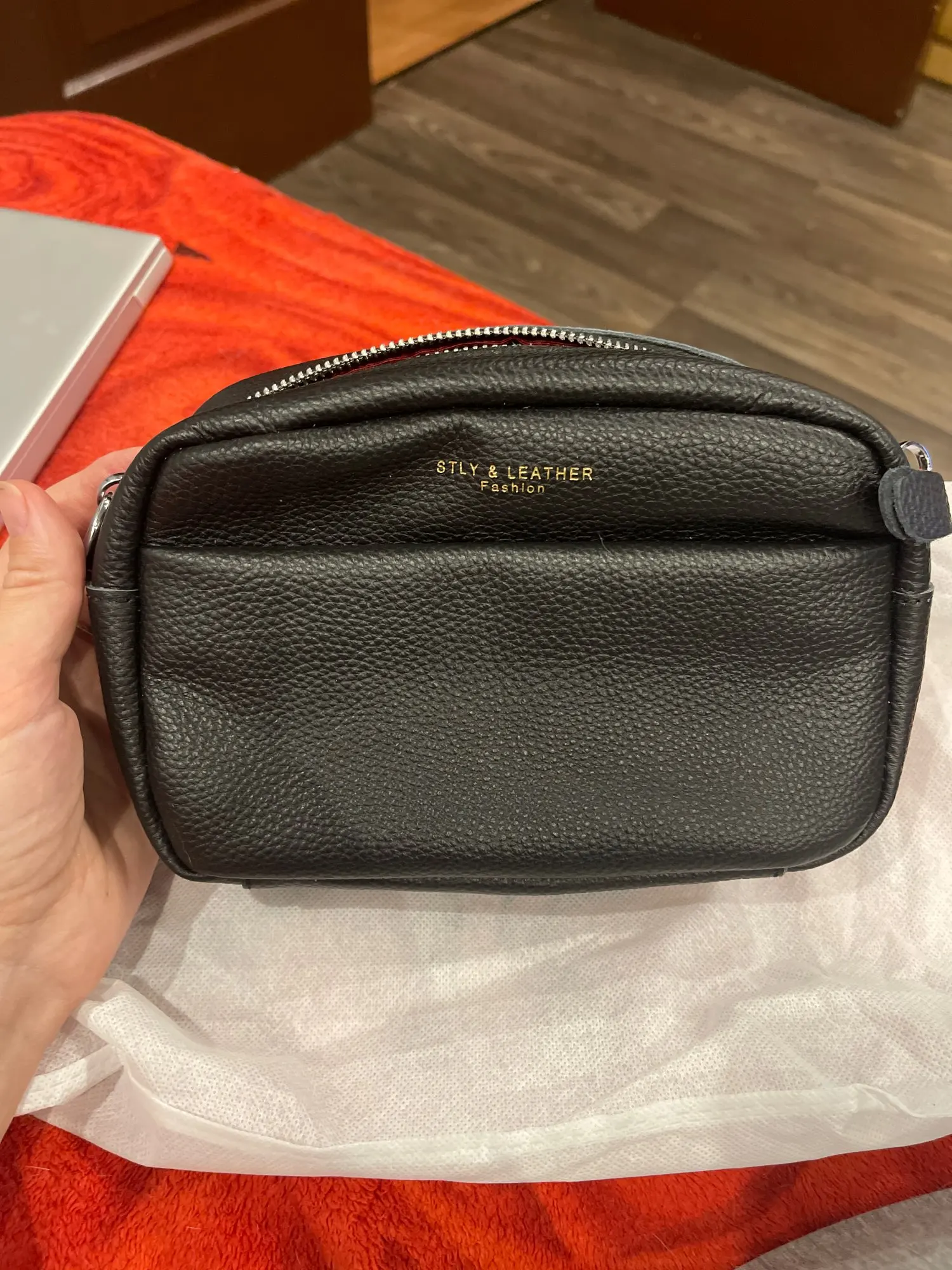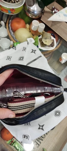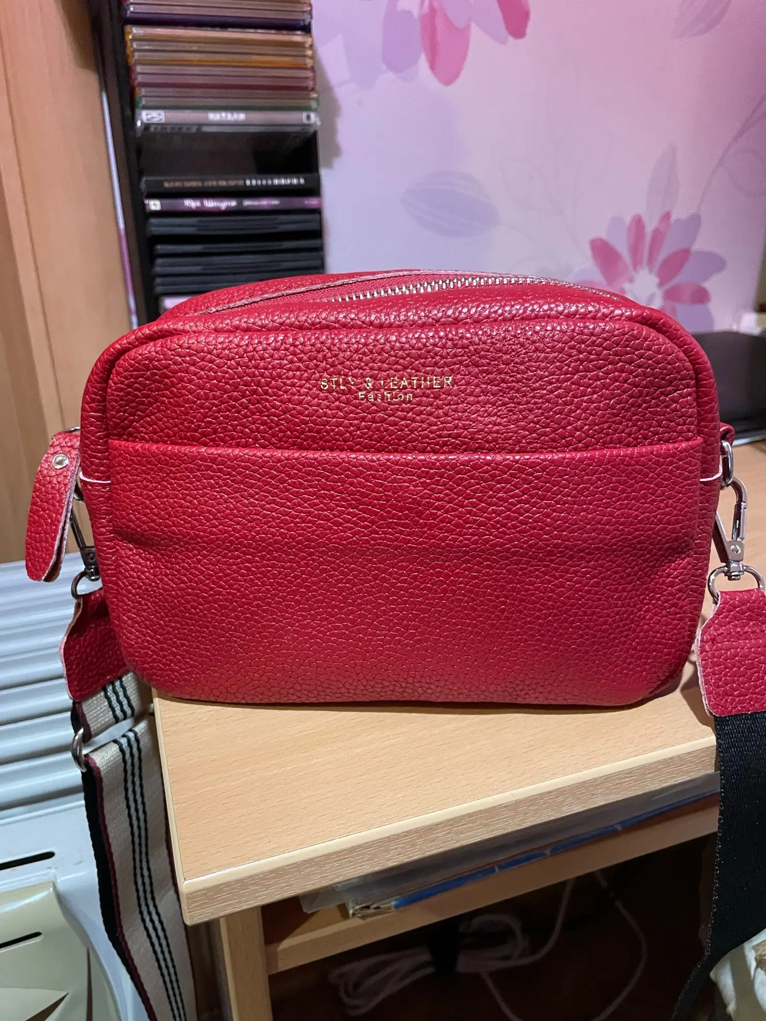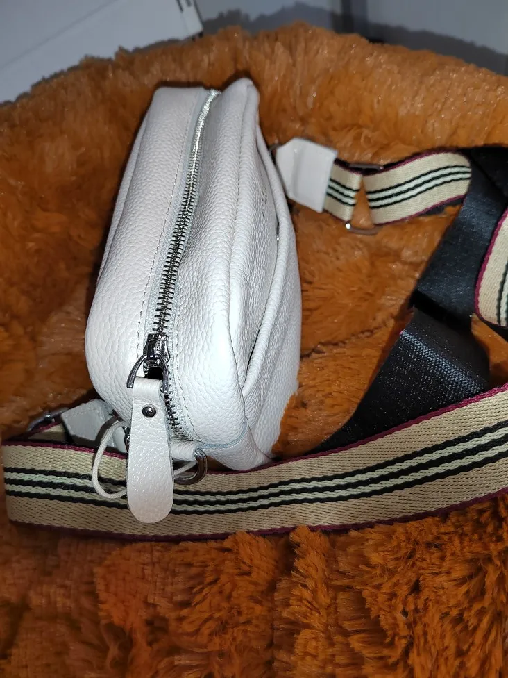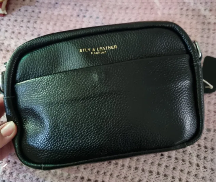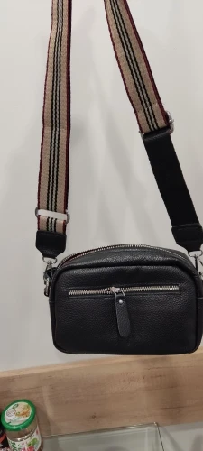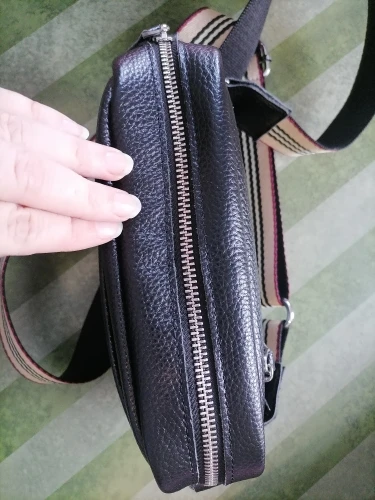 Very cool bag, genuine leather, pig like. Soft, in the frost in-20 does not crack, does not become oak. Inside there are 2 pockets, one of them with a lock. On the outside is also 2. one on the magnet, I put a mask there, the second on the lock, for keys is convenient. The lock is iron, the belt is two-sided. A cool bag, with a promotional code came out 1022 R. Sent within 5 days (was the new year). Recommend