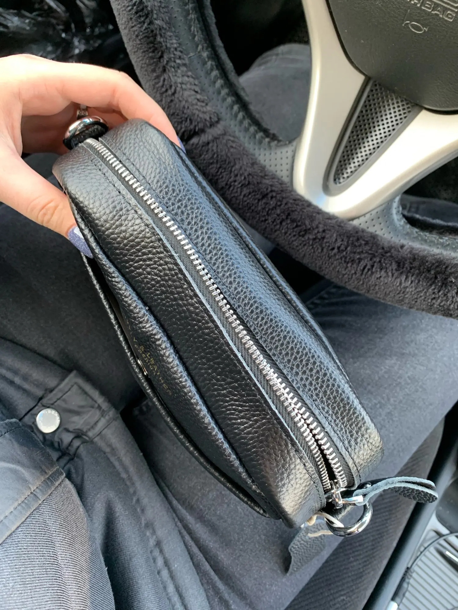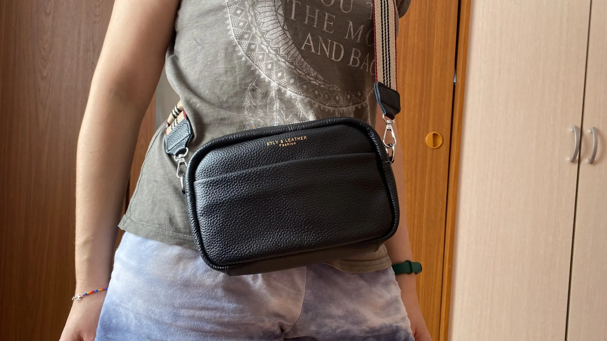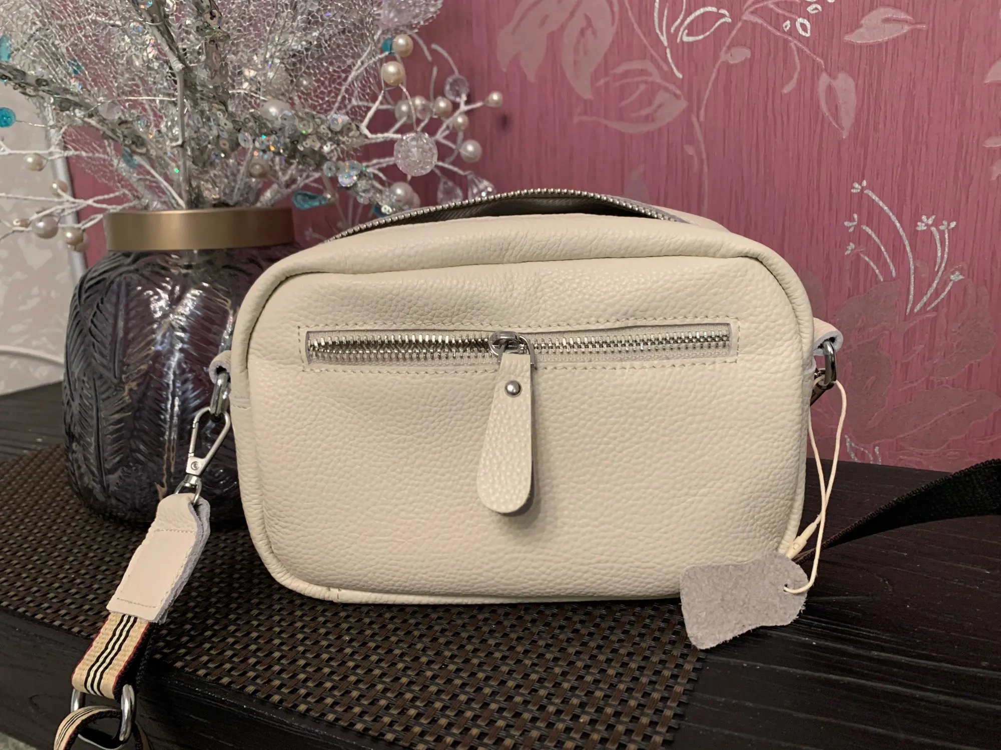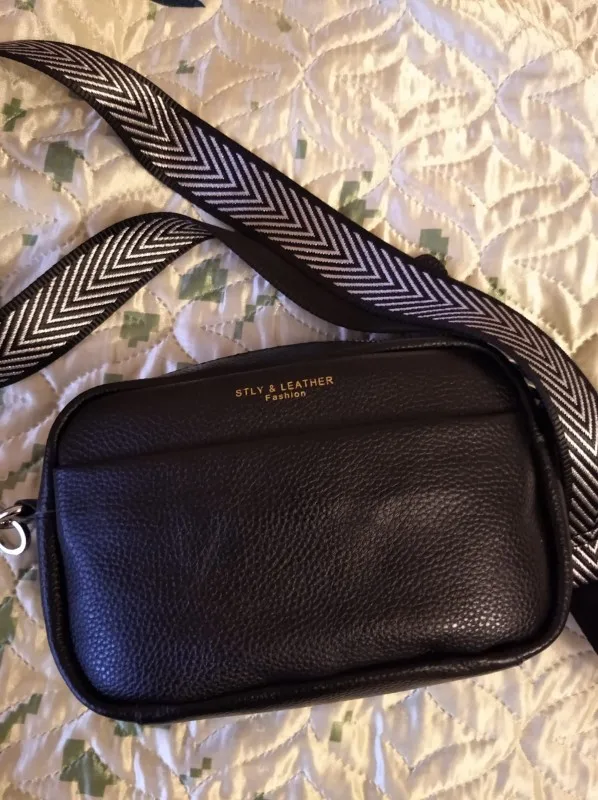 Very cool bag, genuine leather, pig like. Soft, in the frost in-20 does not crack, does not become oak. Inside there are 2 pockets, one of them with a lock. On the outside is also 2. one on the magnet, I put a mask there, the second on the lock, for keys is convenient. The lock is iron, the belt is two-sided. A cool bag, with a promotional code came out 1022 R. Sent within 5 days (was the new year). Recommend