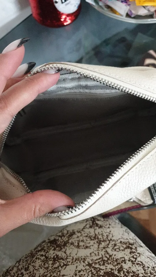 The bag came quickly, the smell is smelly, the usual bag smells like in stores. Lining is true beige-gray, and not as in the photo Red, for me probably even plus. Belt one. The quality of the bag lead on 4 +, confuses only the inscription of gold color fashion, and the zipper is silver, embossed from The View. Photo attached