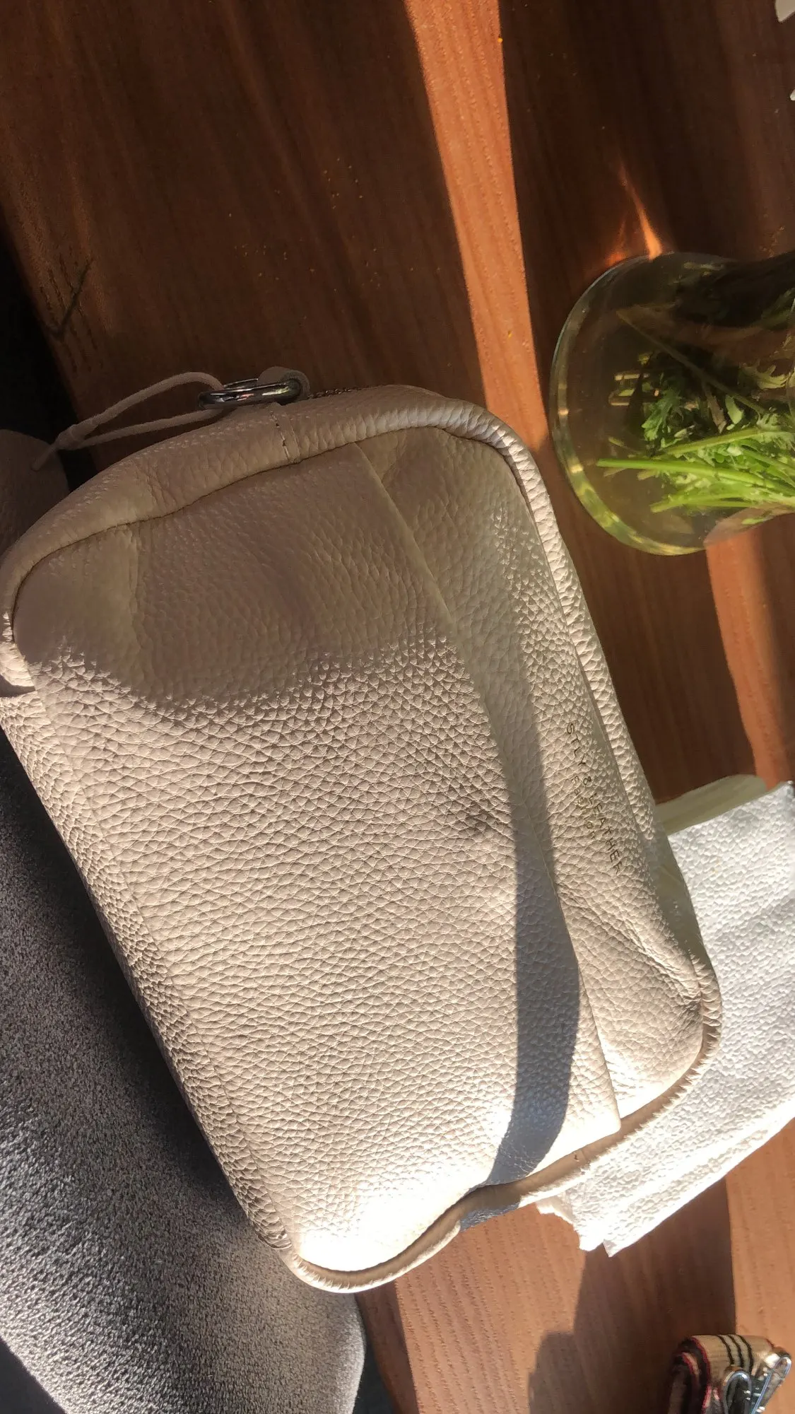 The bag color is beautiful, beige, as wanted, smells like leather, the quality is very good, the size is not small, for me just came very quickly