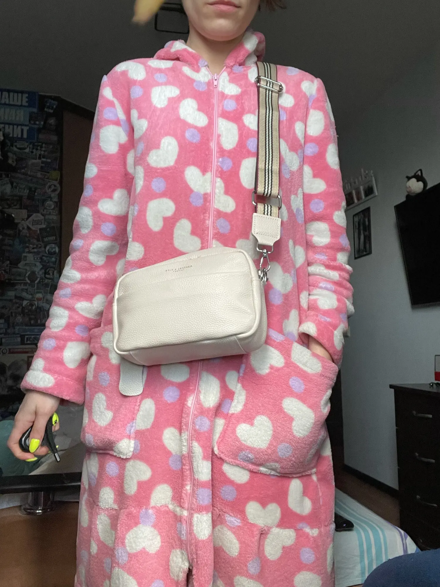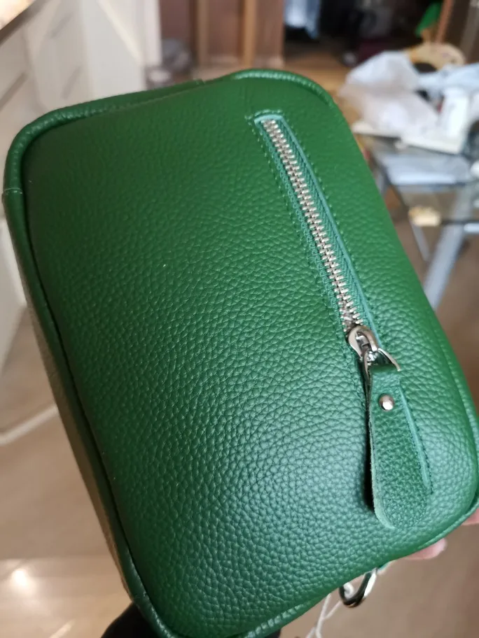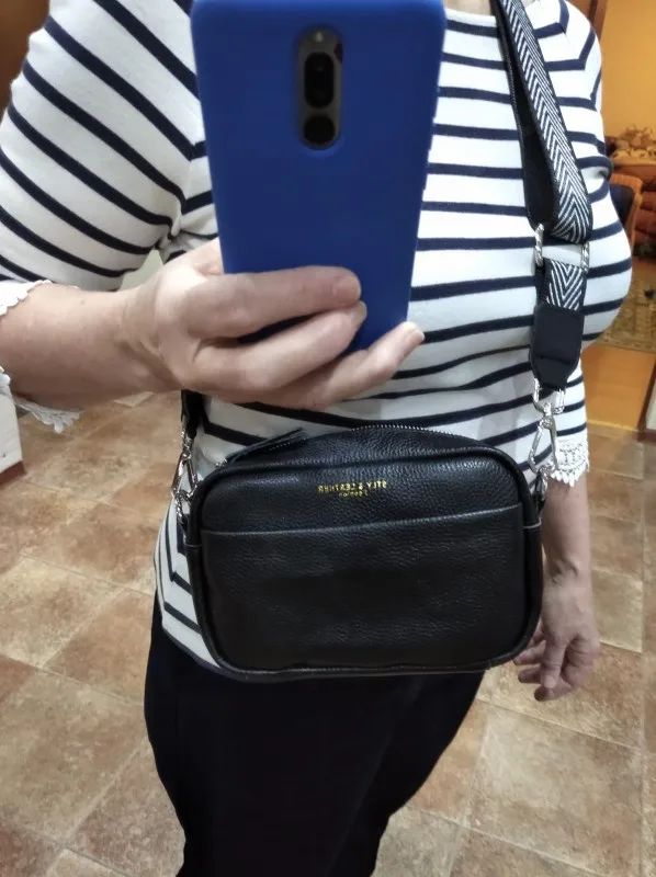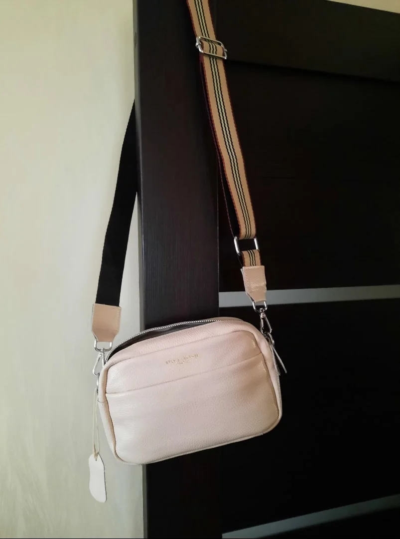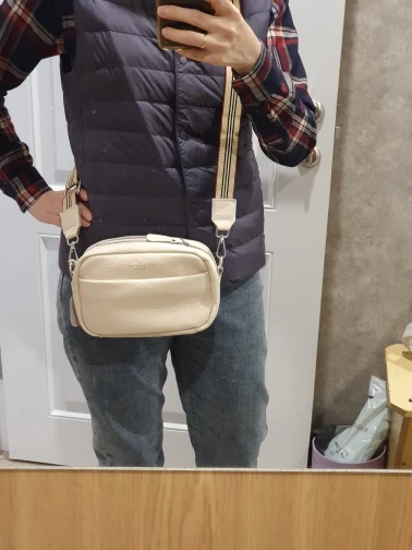 The bag is neat, it came in a pollen, the skin is soft, you can change the strap if desired. A little there was a smell, I think it will fade. I liked it very much.
