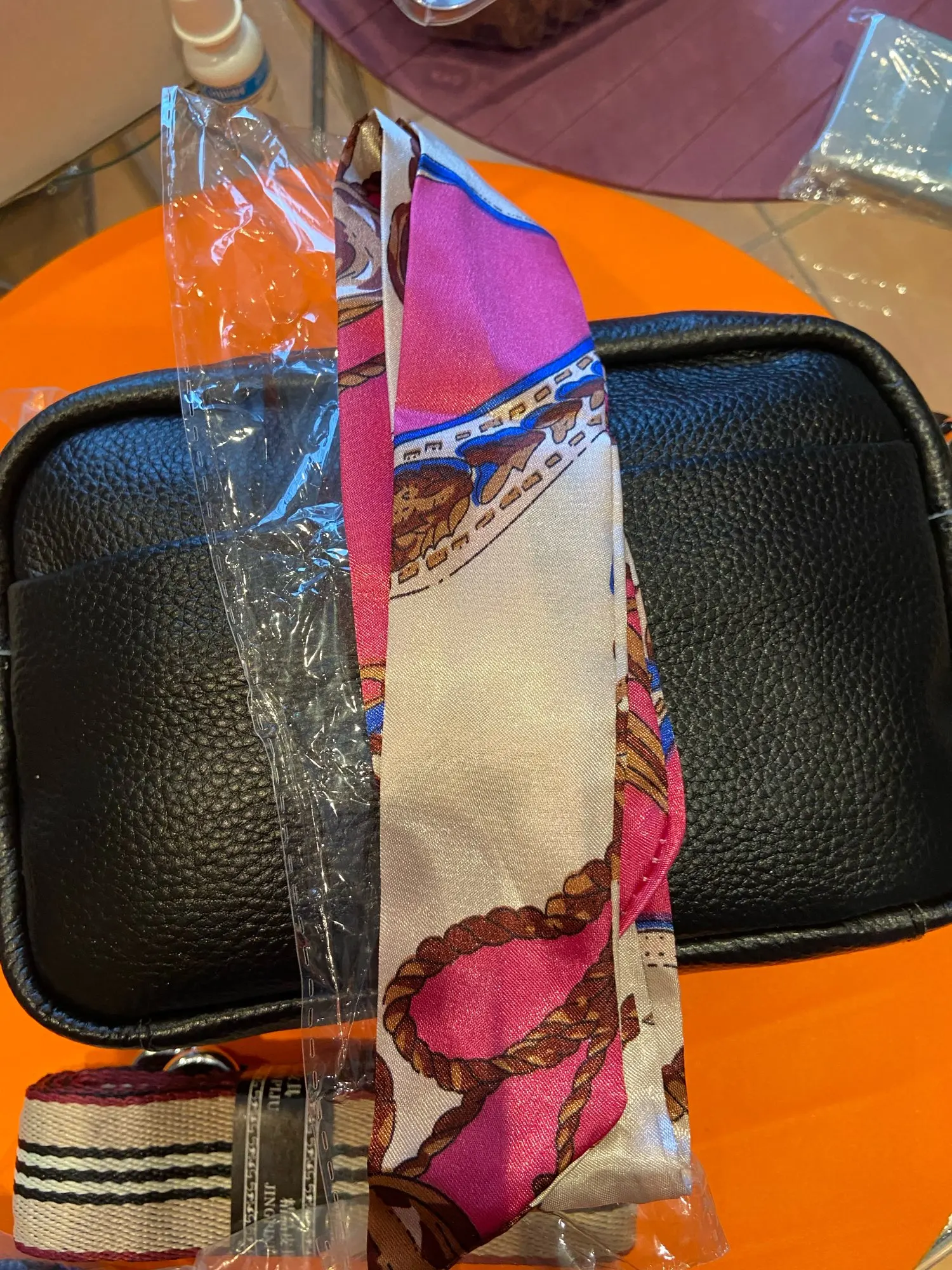 Really leather, small and comfortable, as a gift, the store put a silk handkerchief on the handbag.