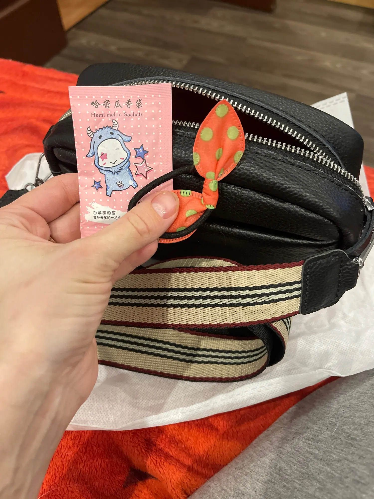 Nice handbag. Very roomy. There is a small smell, but I think it will fade. In the rest there are no complaints. Came in a branded bag plus a bonus of a cute keychain, a trifle but nice.