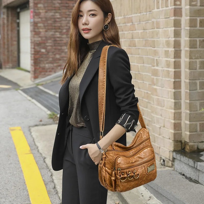 Love this purse! Soft to the touch and a lot can fit inside even it’s not a big purse. For me it’s the perfect size not to big and not to small. I like the worn look, makes it look even better. Shipping was fast and didn’t have any need to contact store. Also the seller put a small keychain as a gift, thank you. Definitely recommend.