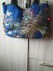 The bag is great. Fabric and blue mesh with embroidery. The bird golden glitters paillettes and a golden thread. Fabric belt. No smell. Very beautiful. In a gift put a pretty bracelet, very cool. I would even wear it, but when carried, the beads cracked and crumpled on my hand. Big request bracelet packing in paper, protective film. Very offensive.