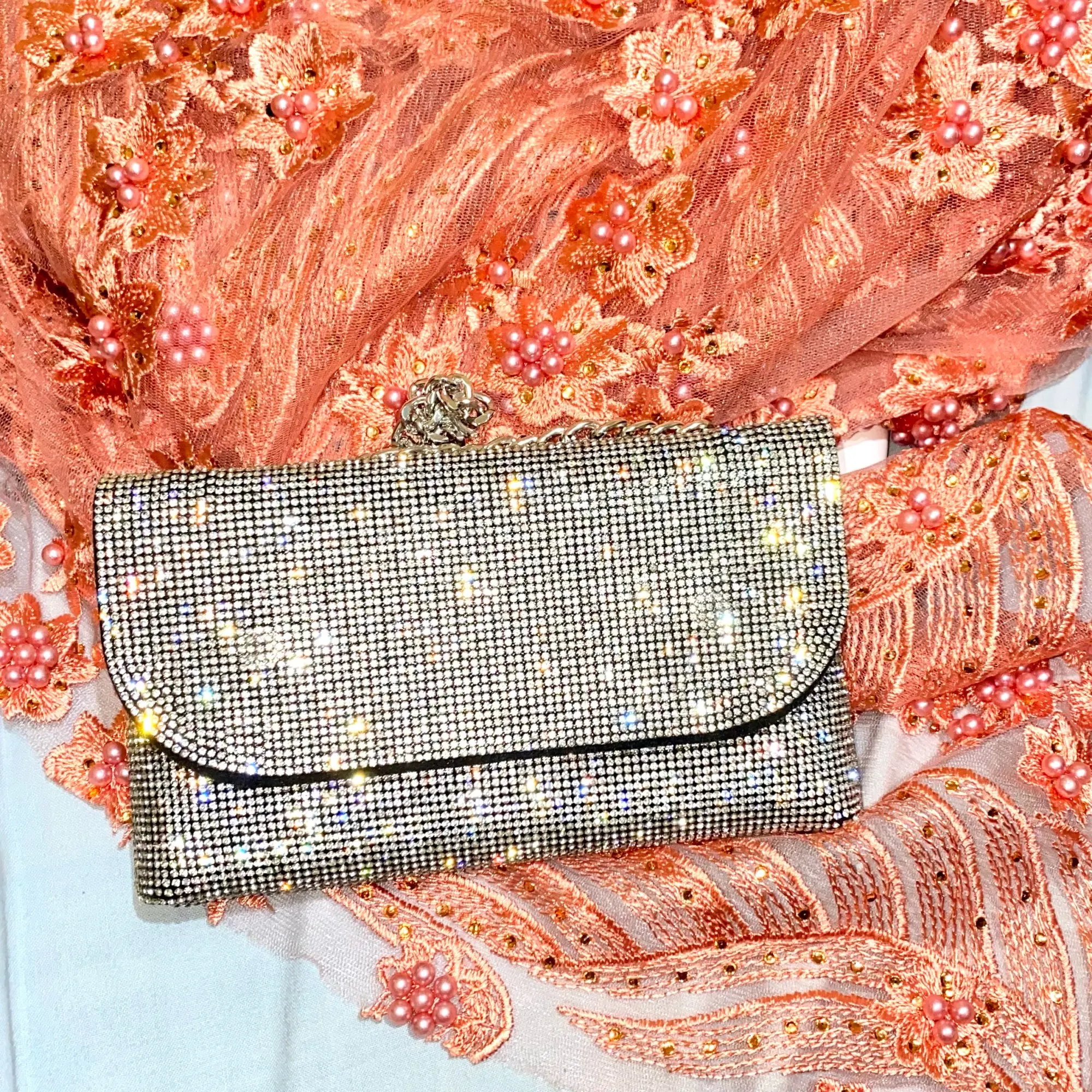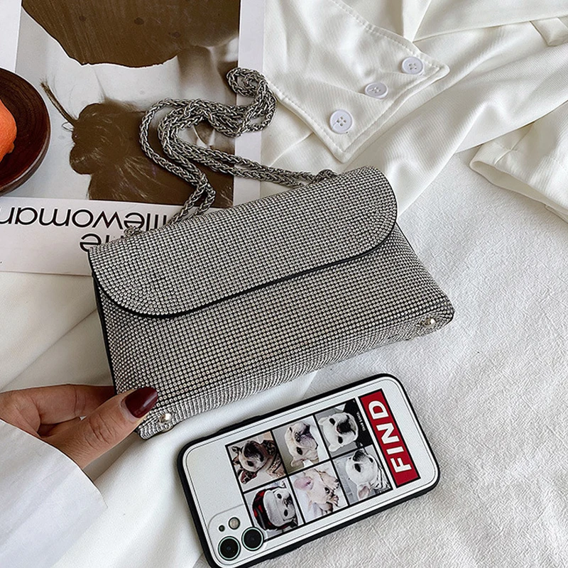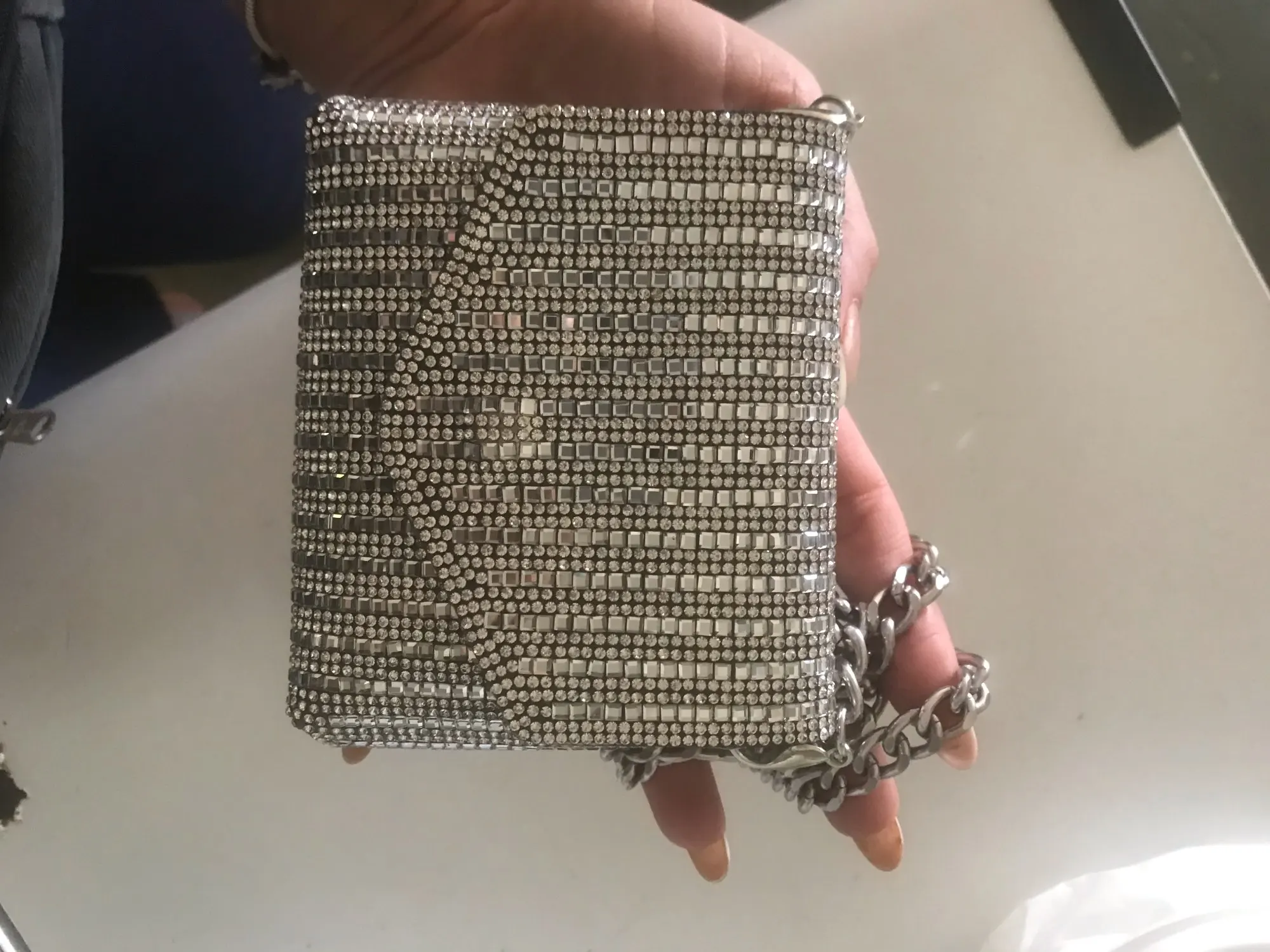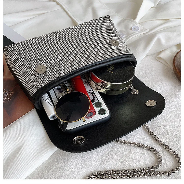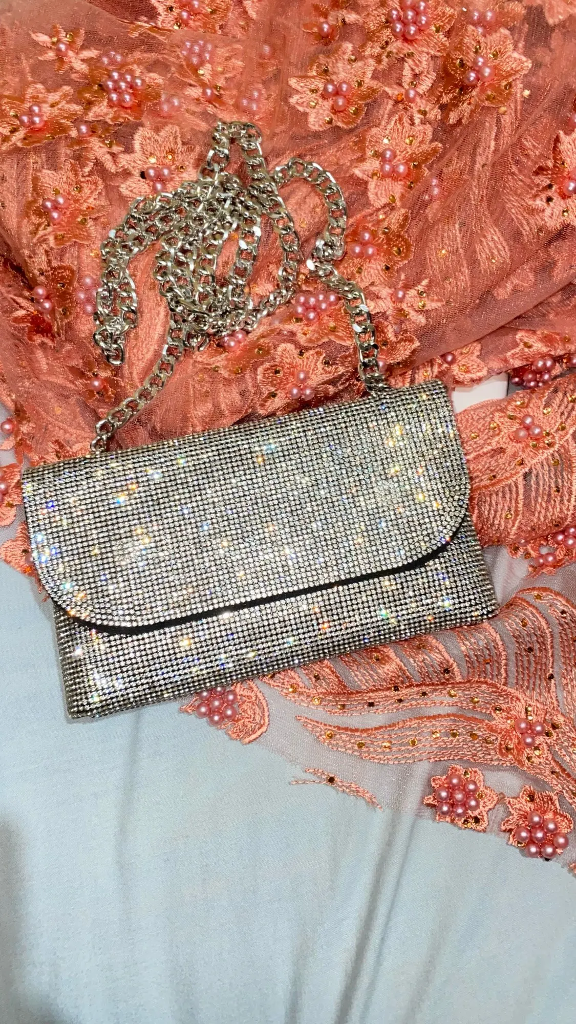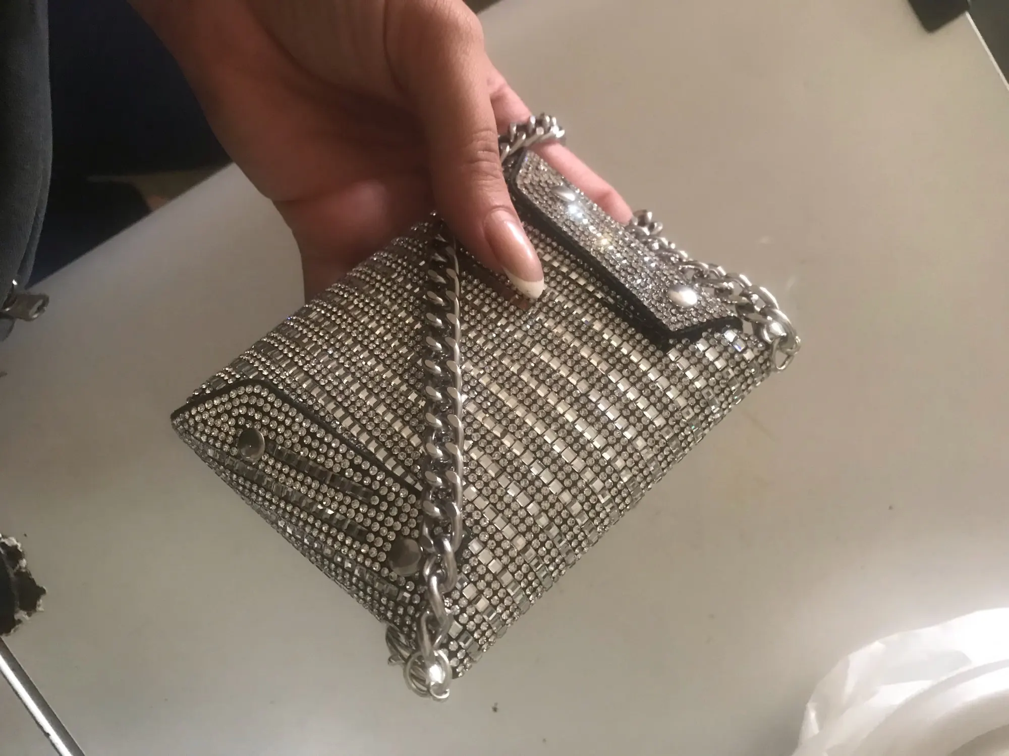 Blind glitter product, looks beautiful. IPhone 11 vlasite butt, in addition, you can put lipstick or keys. Very long shoulder chain. All the rhinestones are in place. The only thing that spoilt the impression is how the bag is made. The fabric is bent on the back side and fastened with rivets, while the black wrong side is visible (see. Photo). If you closely consider the bag, then it is visible its uncomplicated, and "sewing" gives away cheap. However, because of the blinding shine of the front side of the handbag, these shortcomings to the third party search will not be visible. As a gift, a hairband. Thank you