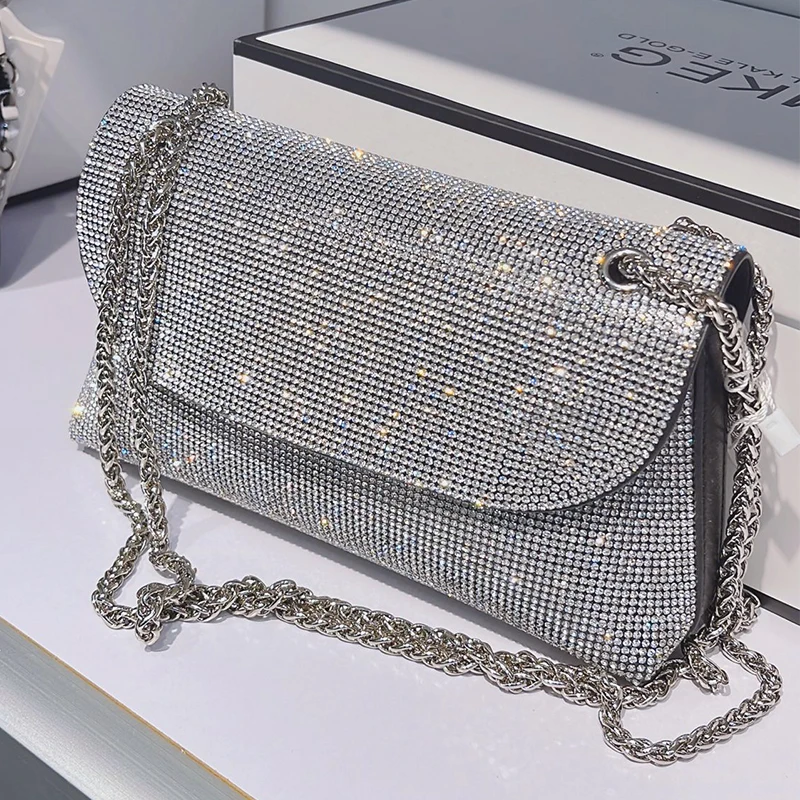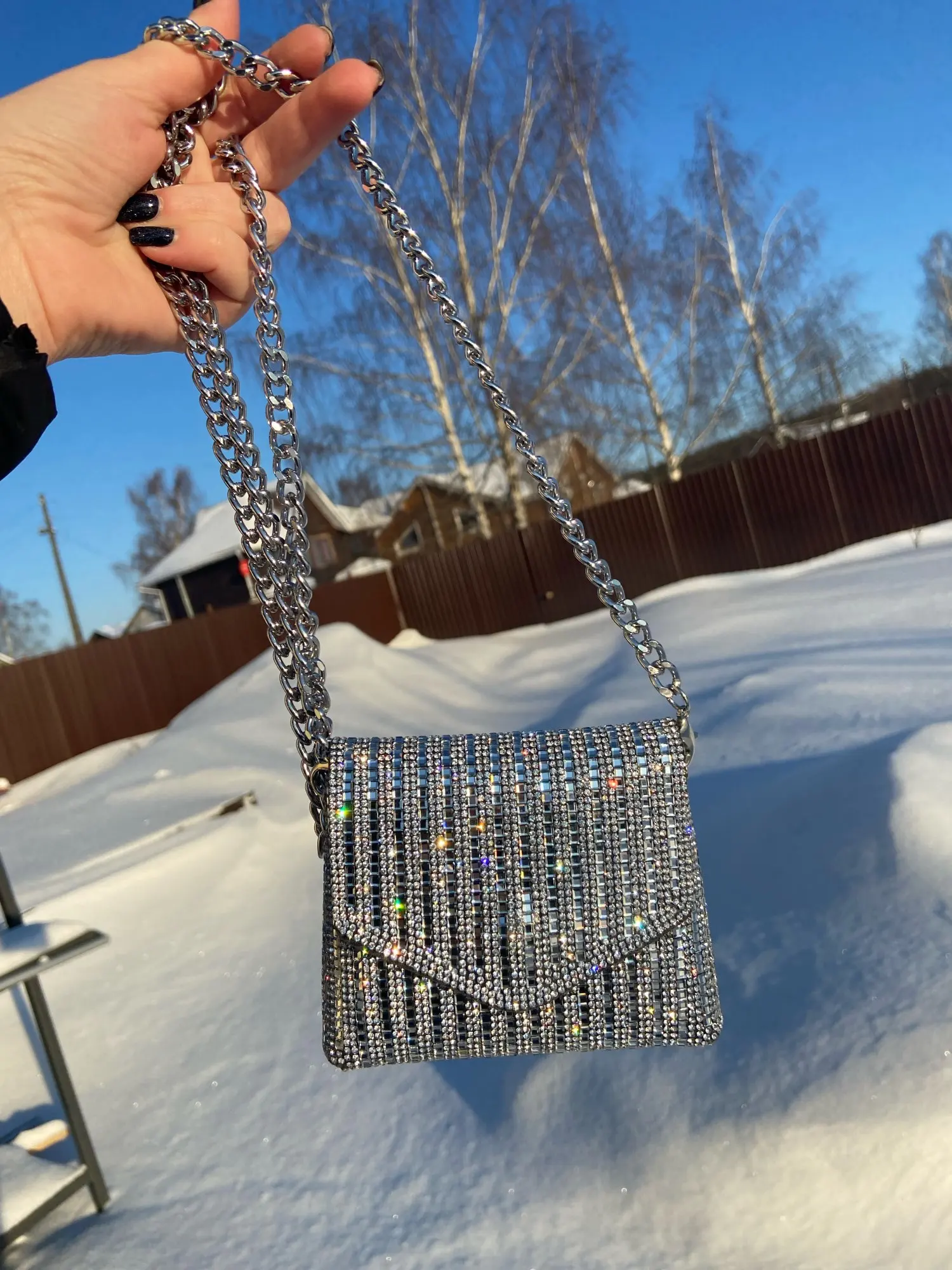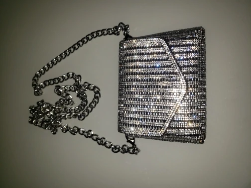 The handbag is very spectacular! Executed qualitatively. Rhinestones are all even, without jambs. The chain is light. The purchase is very satisfied. In Moscow came in a month. The store quickly sent the goods.