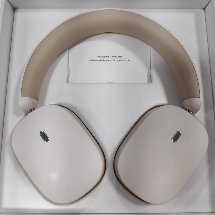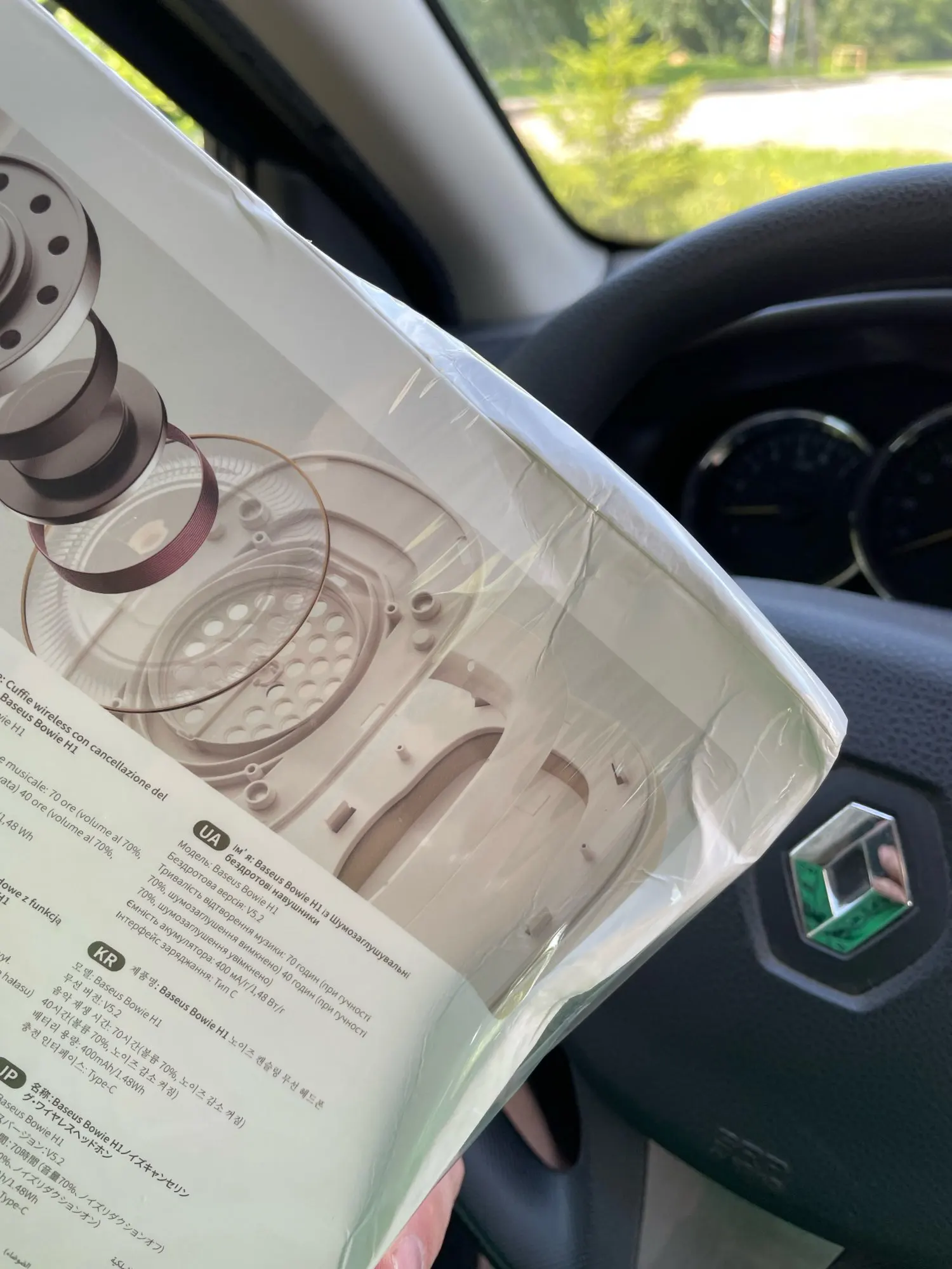 The order was delivered from 22.09 to 10.10. They packed only in a package with a pupyrka without a transport box, as a result, in the factory box the corners and dents are jammed, if you take a gift a gift Included in the kit are headphones and a cord for recharging Type-C. There is instruction in Russian language. With the box, the charge level was 100%. On the headphones there are several holes for the microphone for the work of the shumodawa. On the left button on the shumodawa, on the right-mechanical volume buttons (switching to the next/previous track), in the middle button play/pause/answer. On the connector for charging there is no plug. There is a baseus application to which you can connect the headphones and make settings in sound styles or choose settings yourself. The sound is clean and deep enough. On the shower there is an adjustment in length. Ambrushurs and perfume from the inside are soft. They look nice. Took For 2600 rubles.